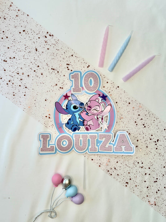 Stitch and Angel Cake Topper, Personalised with Name and Age