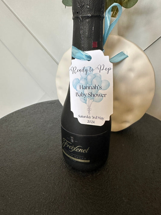 Blue Balloon 'Pop it When She Pops' Customisable Bottle & Gift Tags (x10)