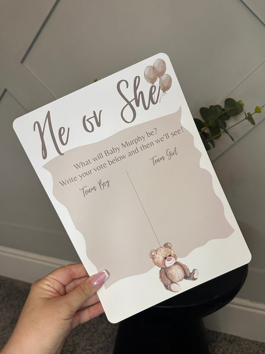 A4 Teddy Bear Gender Reveal Voting Sign
