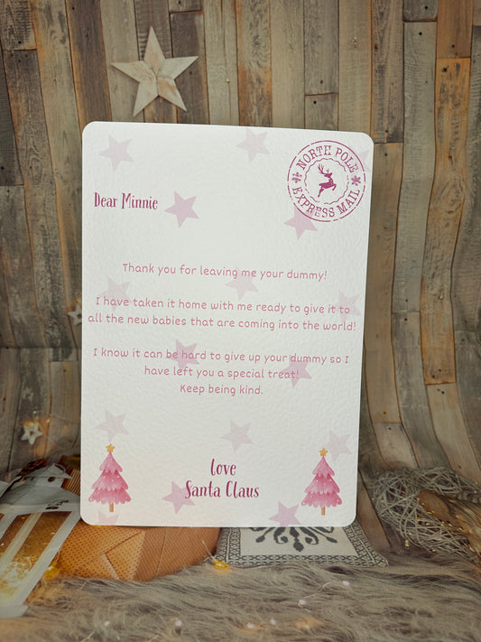 Pink Letter from Santa Thanking The Child For Their Dummy- 5x7, Personalised