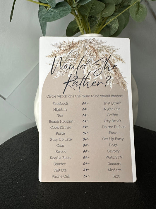 Would Mummy Rather Baby Shower Game- Pack of 10