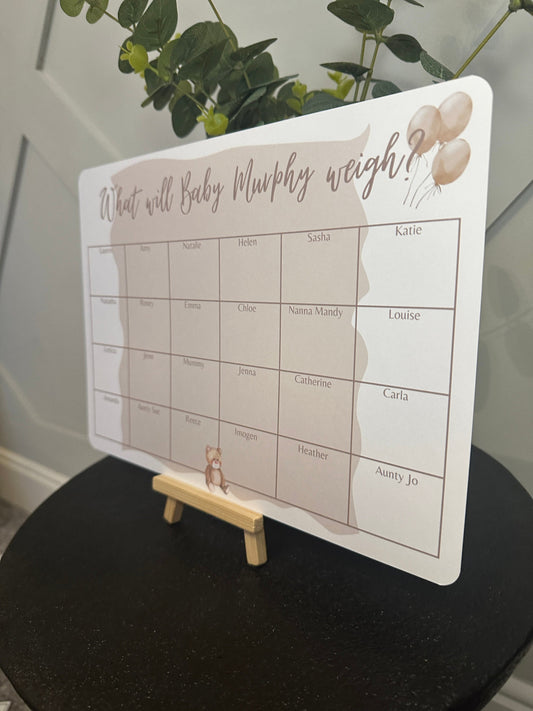 Teddy Bear Guess The Baby Weight Game, A4 Size