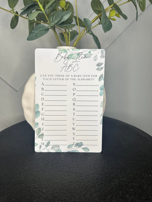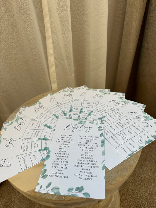 Green Eucalyptus Baby Bingo- 12 Varieties of Card and Call Sheet.