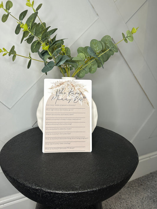Plan a baby shower that everyone will remember with McMullan Designs' delightful collection of personalised baby shower games! From hilarious nappy games and prediction cards to baby word scrambles and "Who Knows Mummy Best?", we offer a variety of games to keep your guests entertained and create lasting memories.