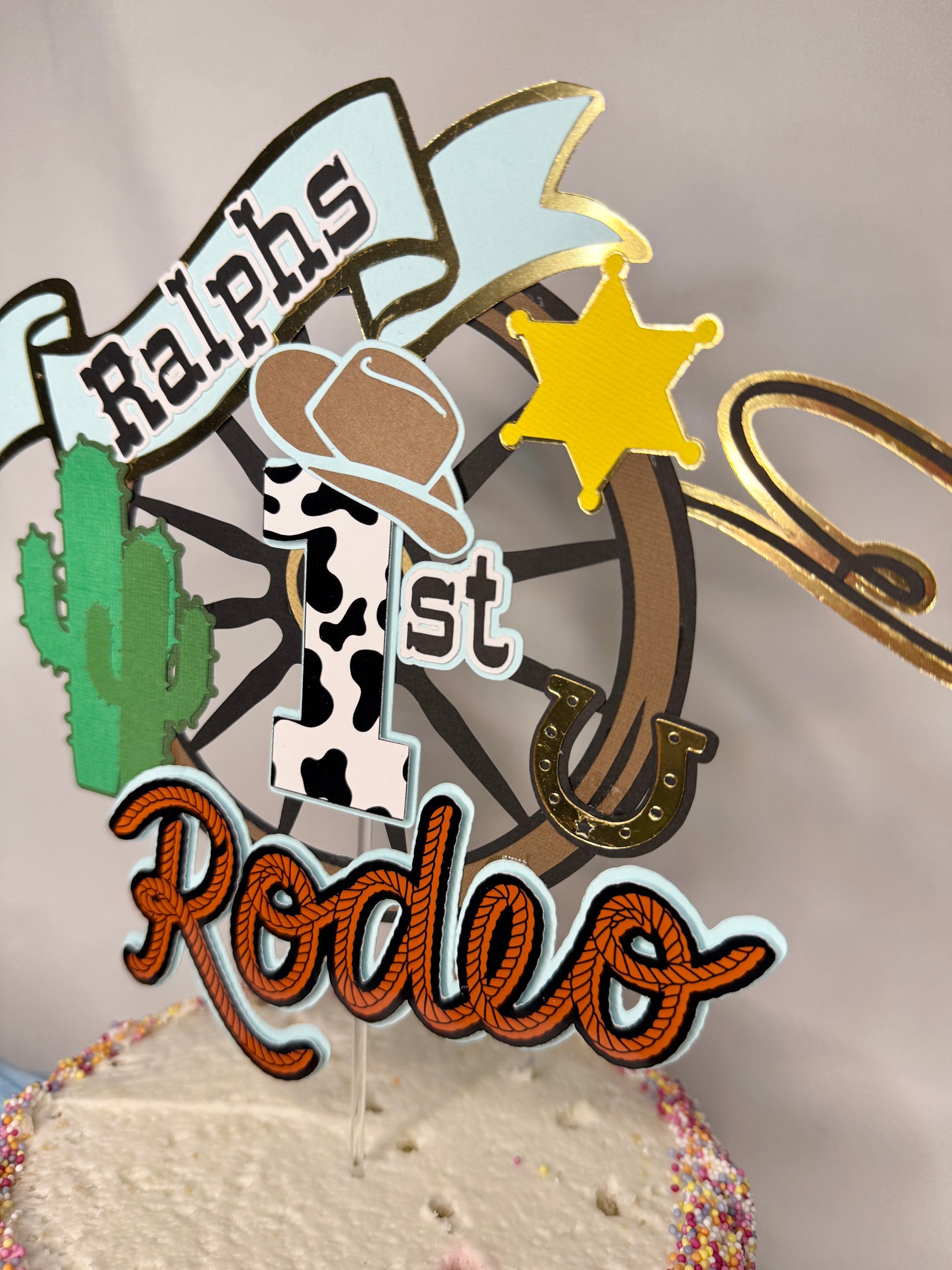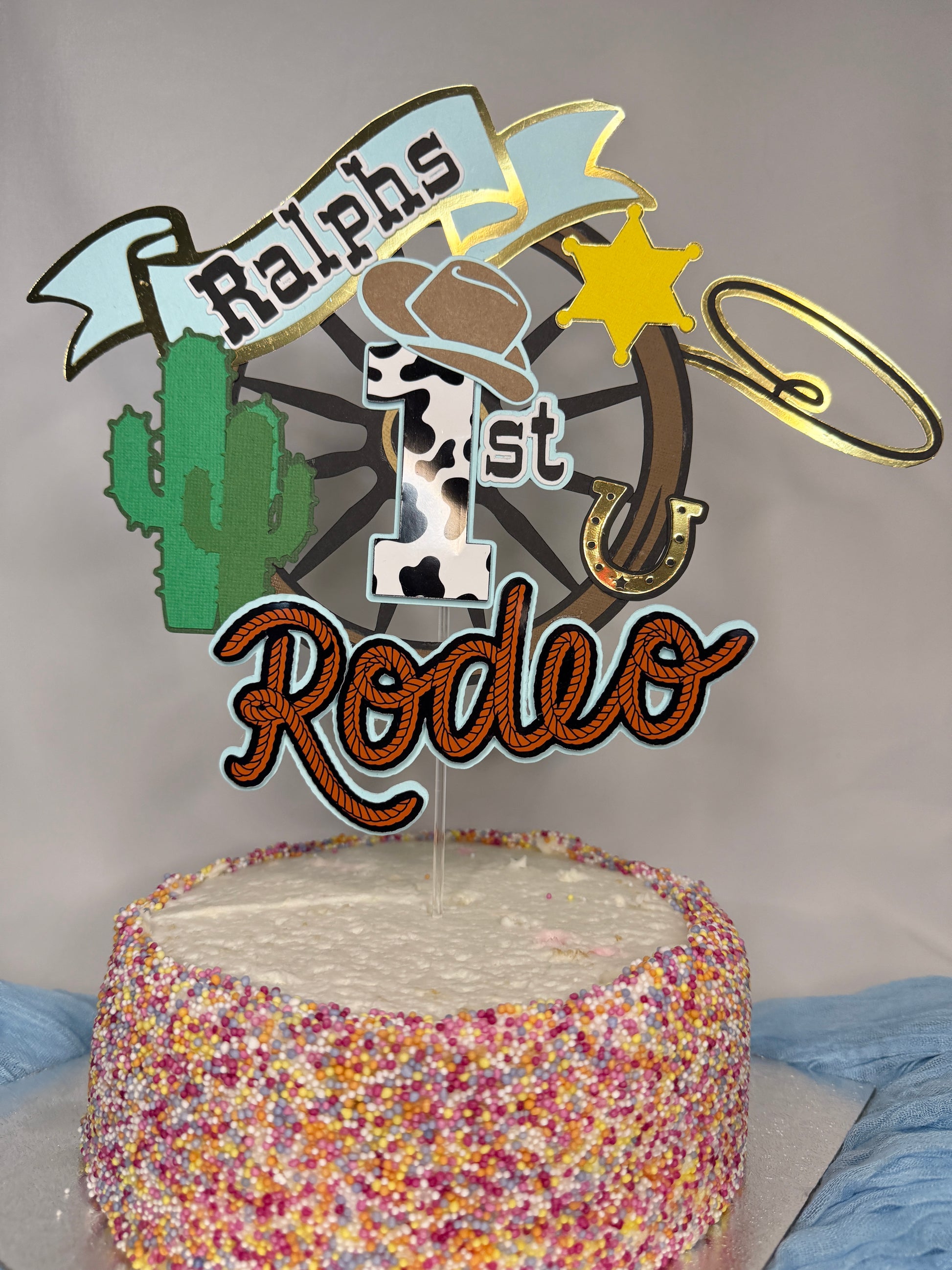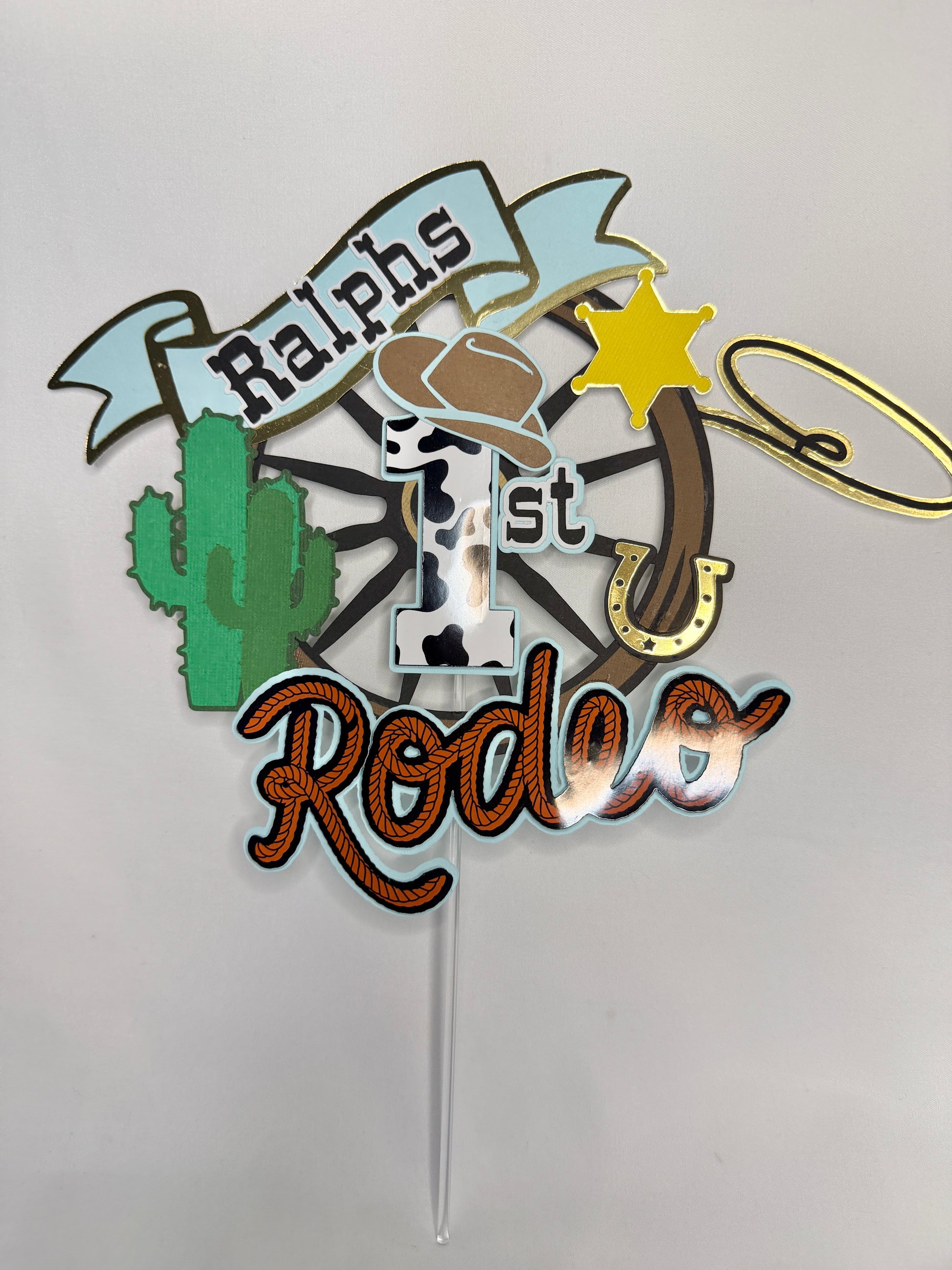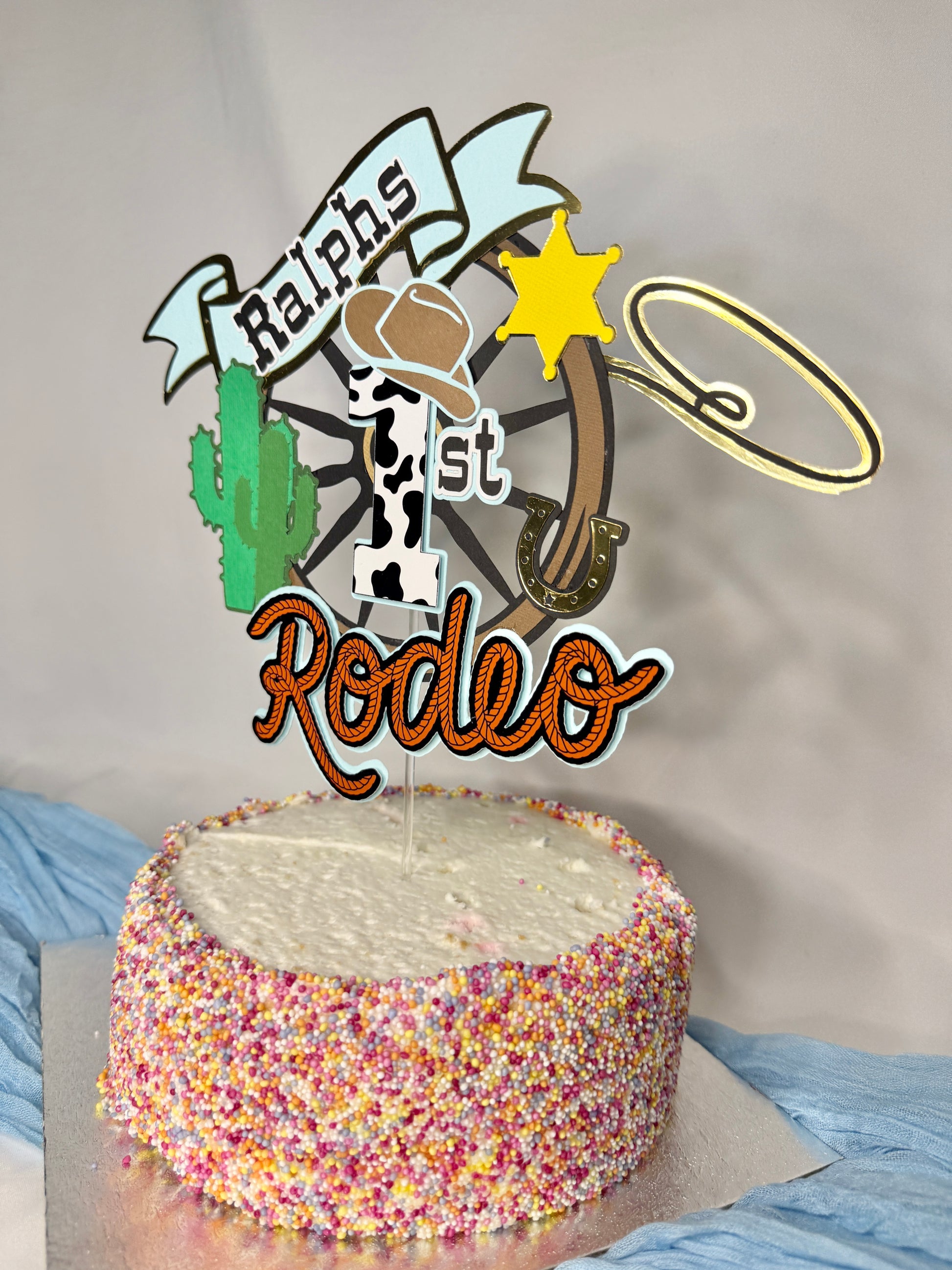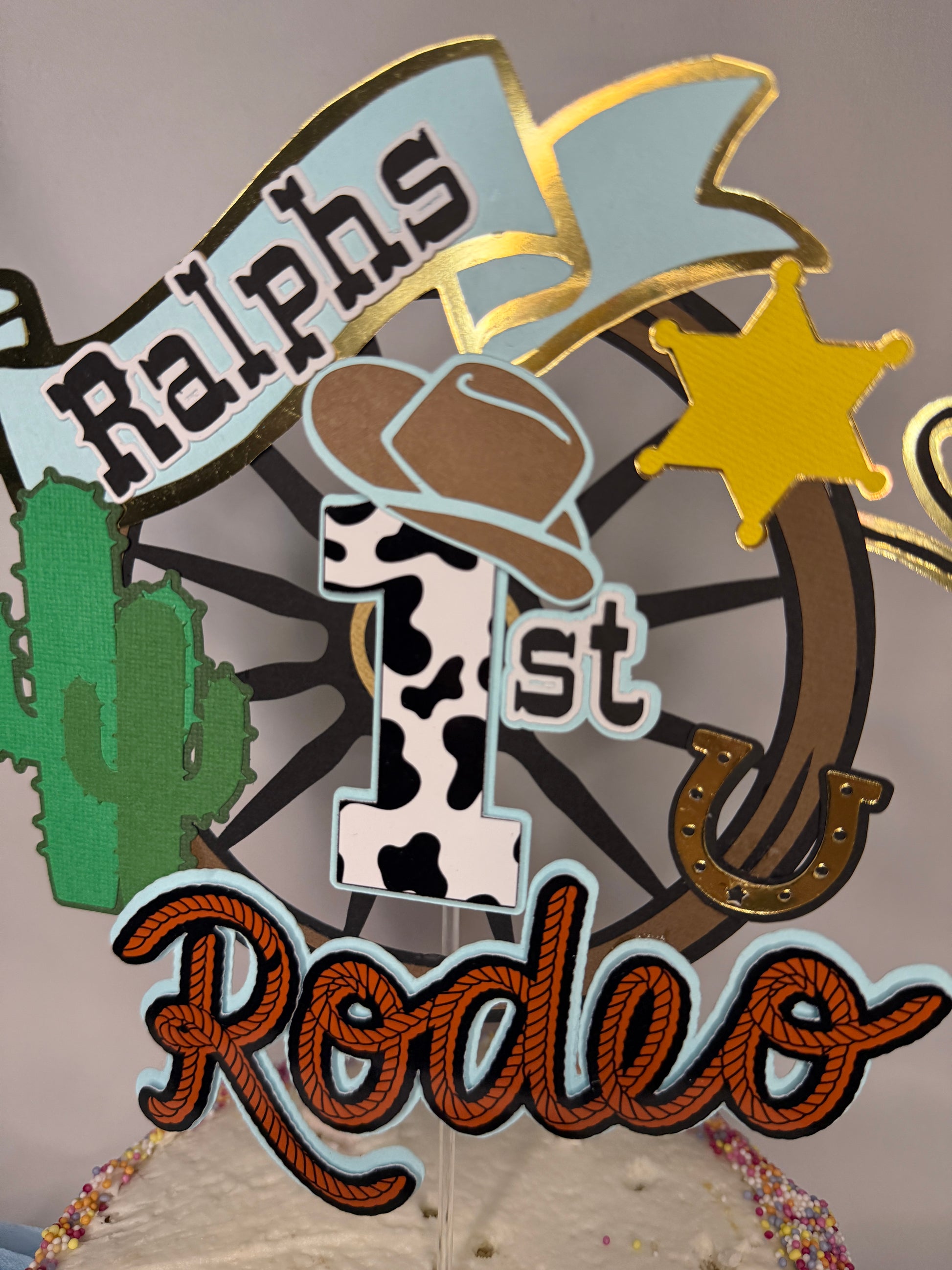 This personalised cake topper is made up of layered card to create this gorgeous wild west theme birthday cake topper.