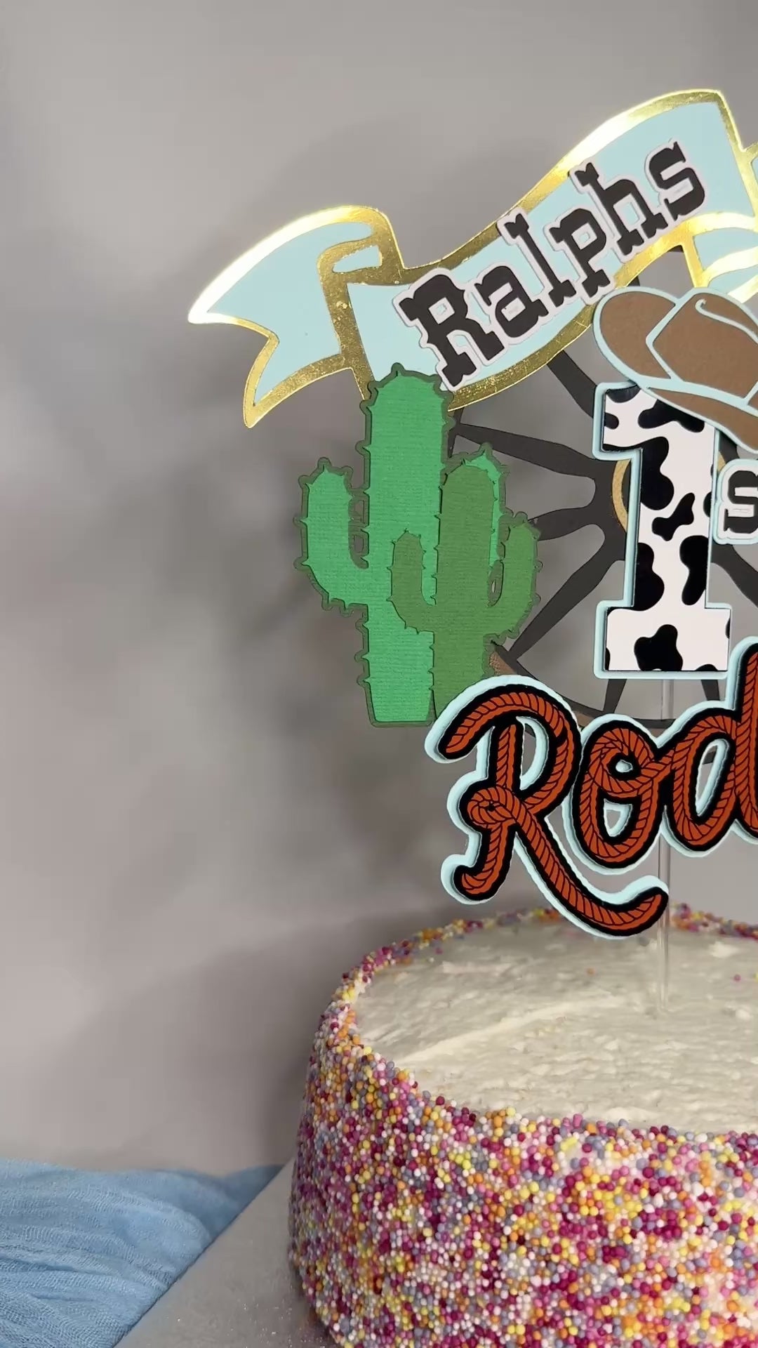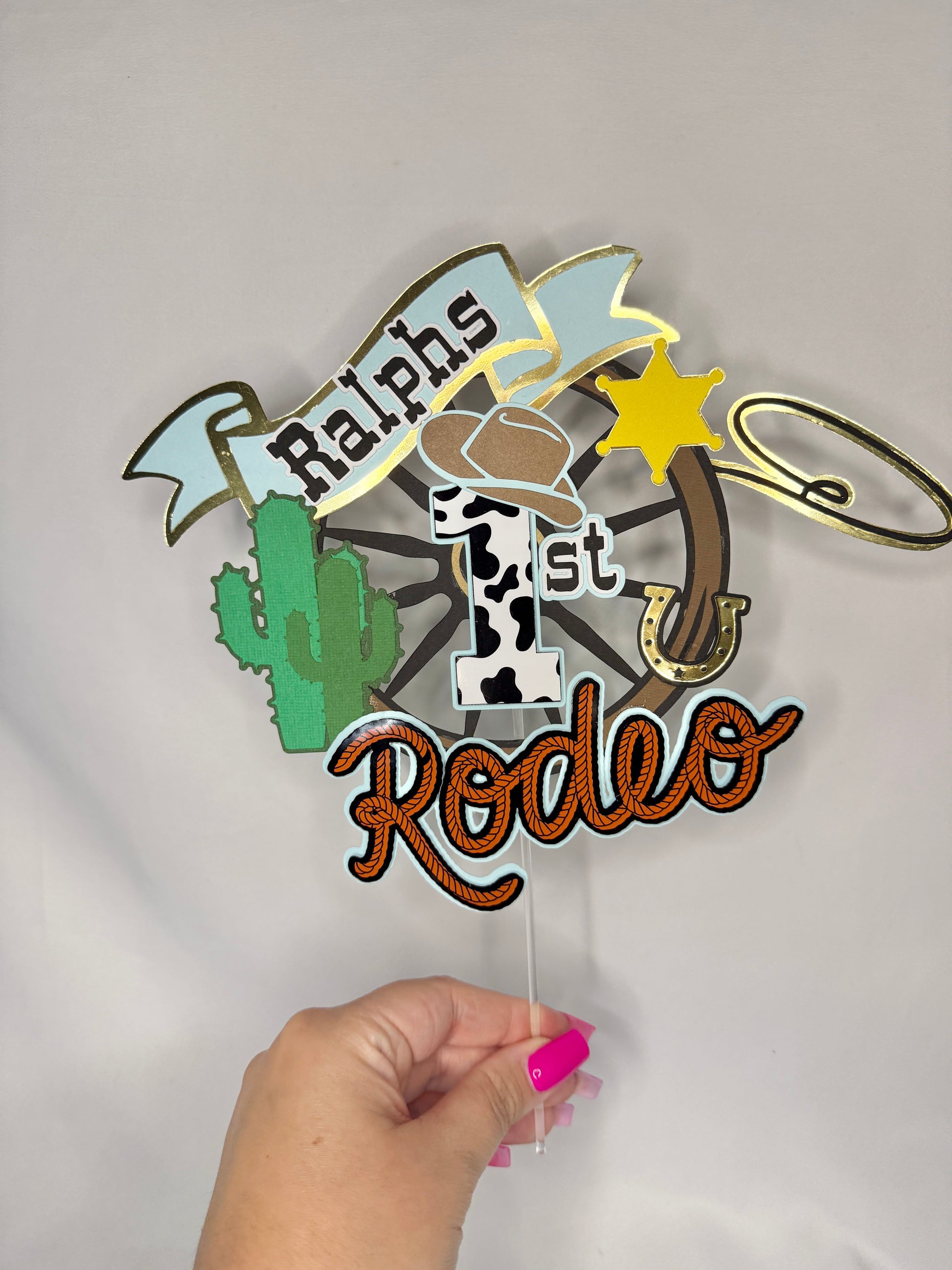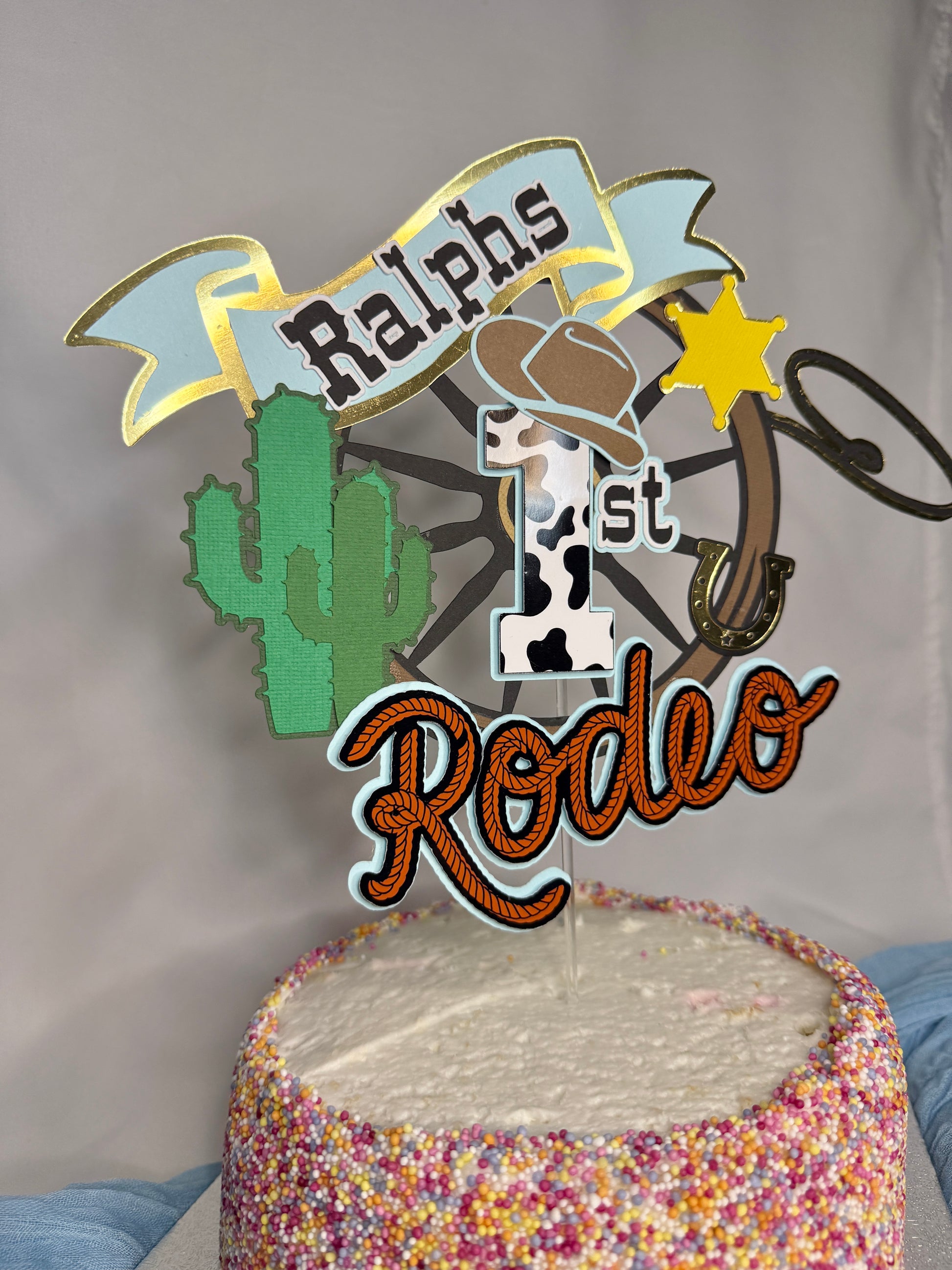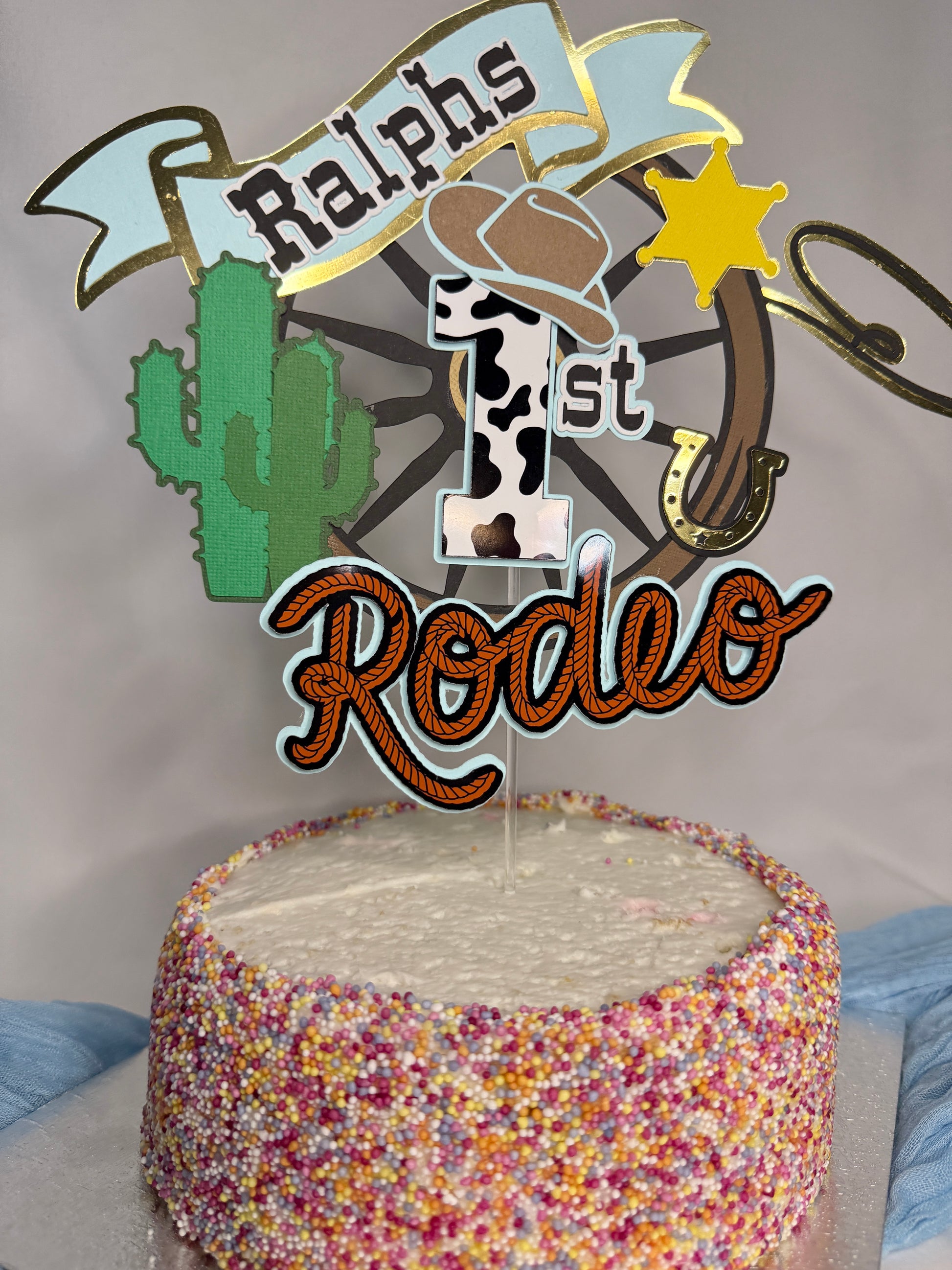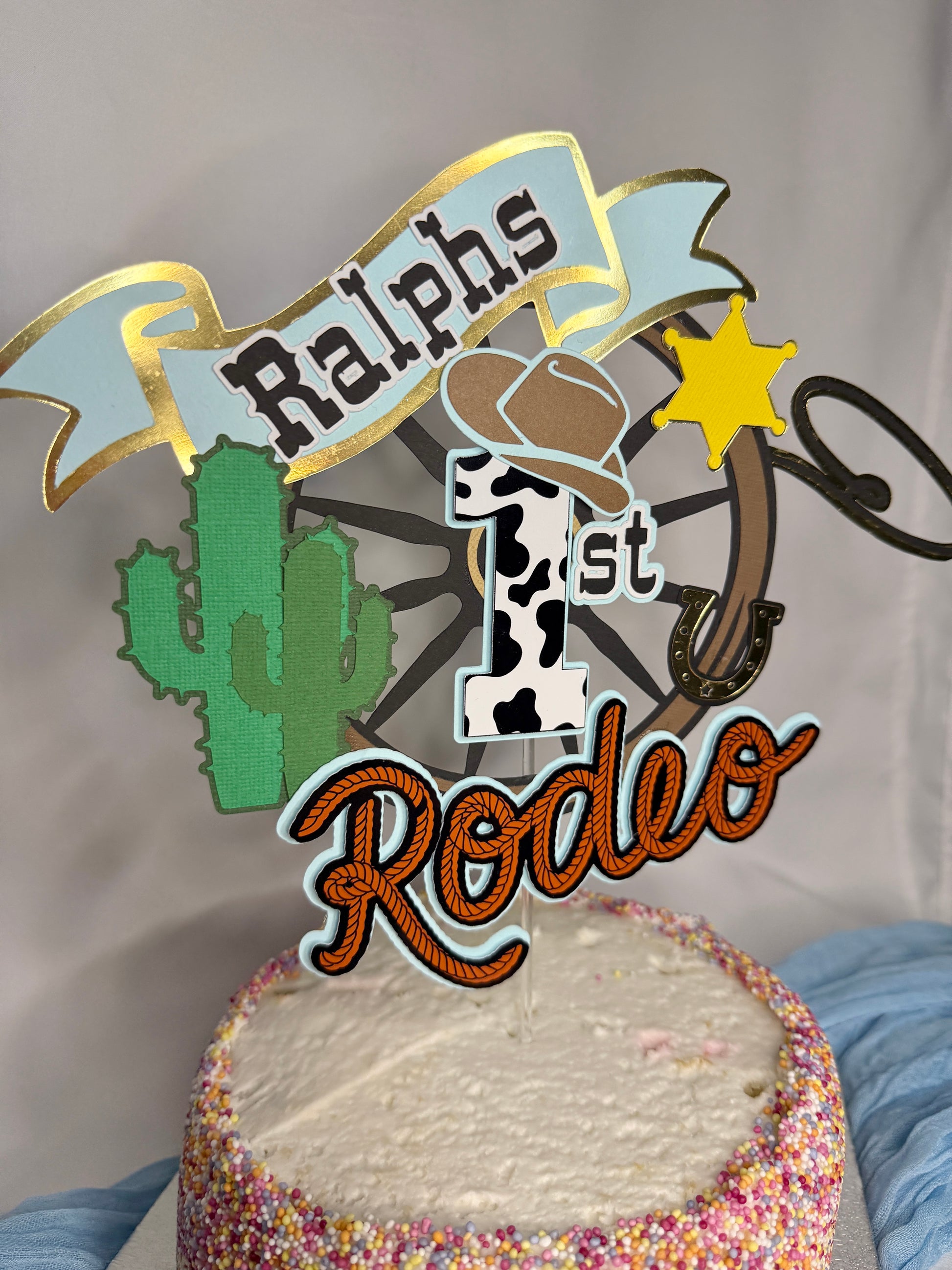 This personalised cake topper is made up of layered card to create this gorgeous wild west theme birthday cake topper.