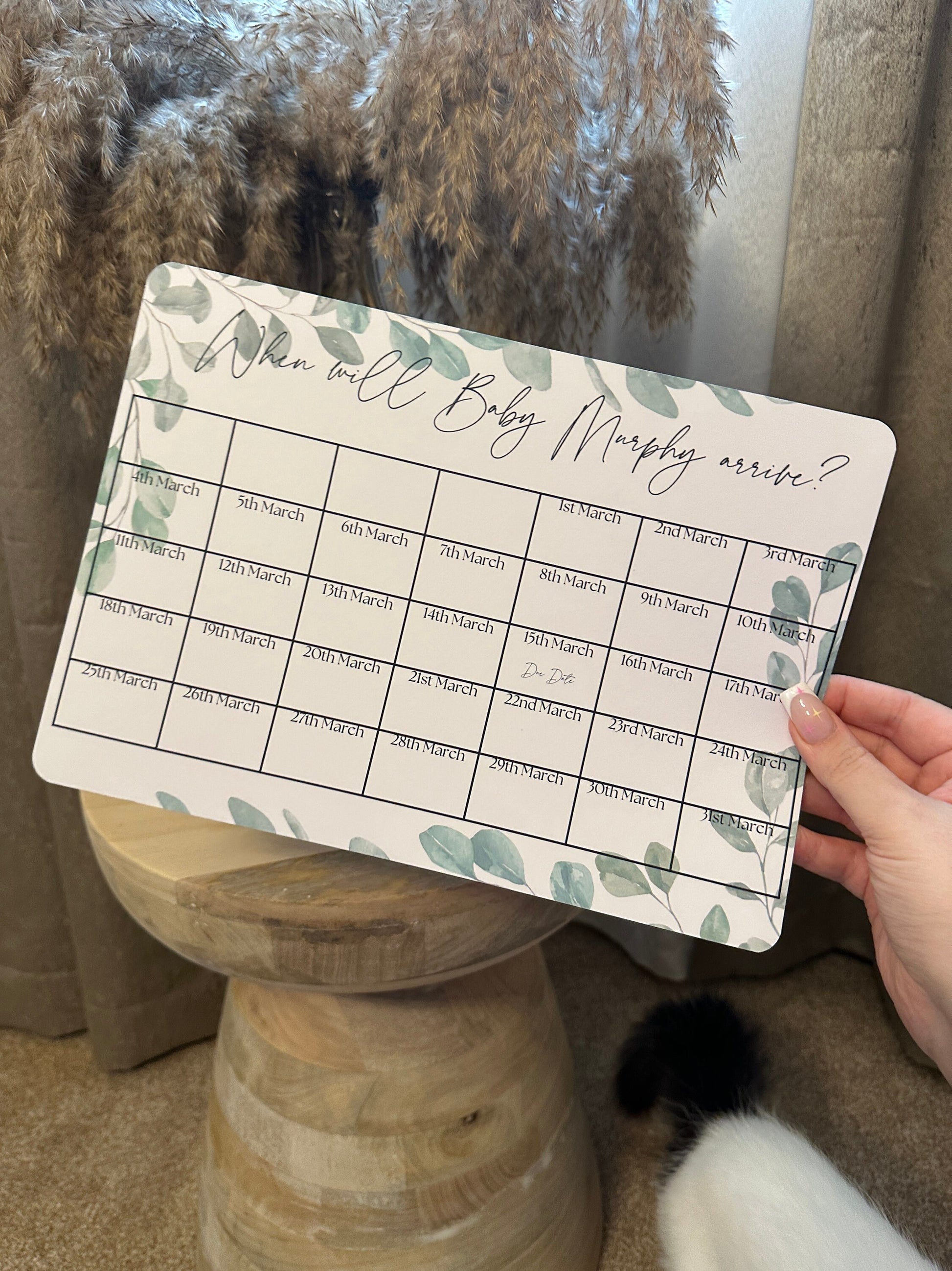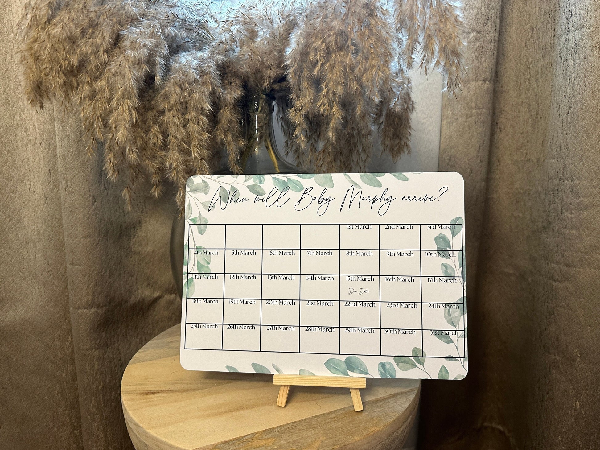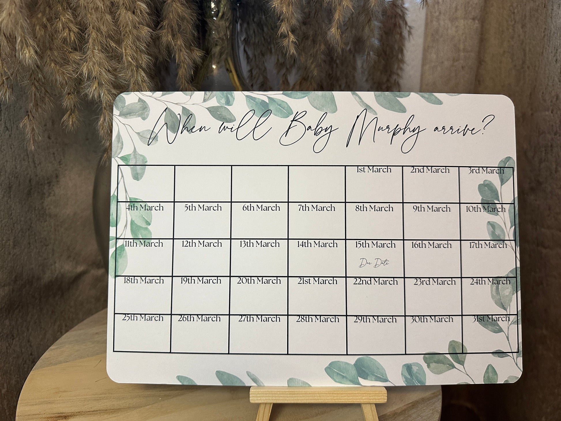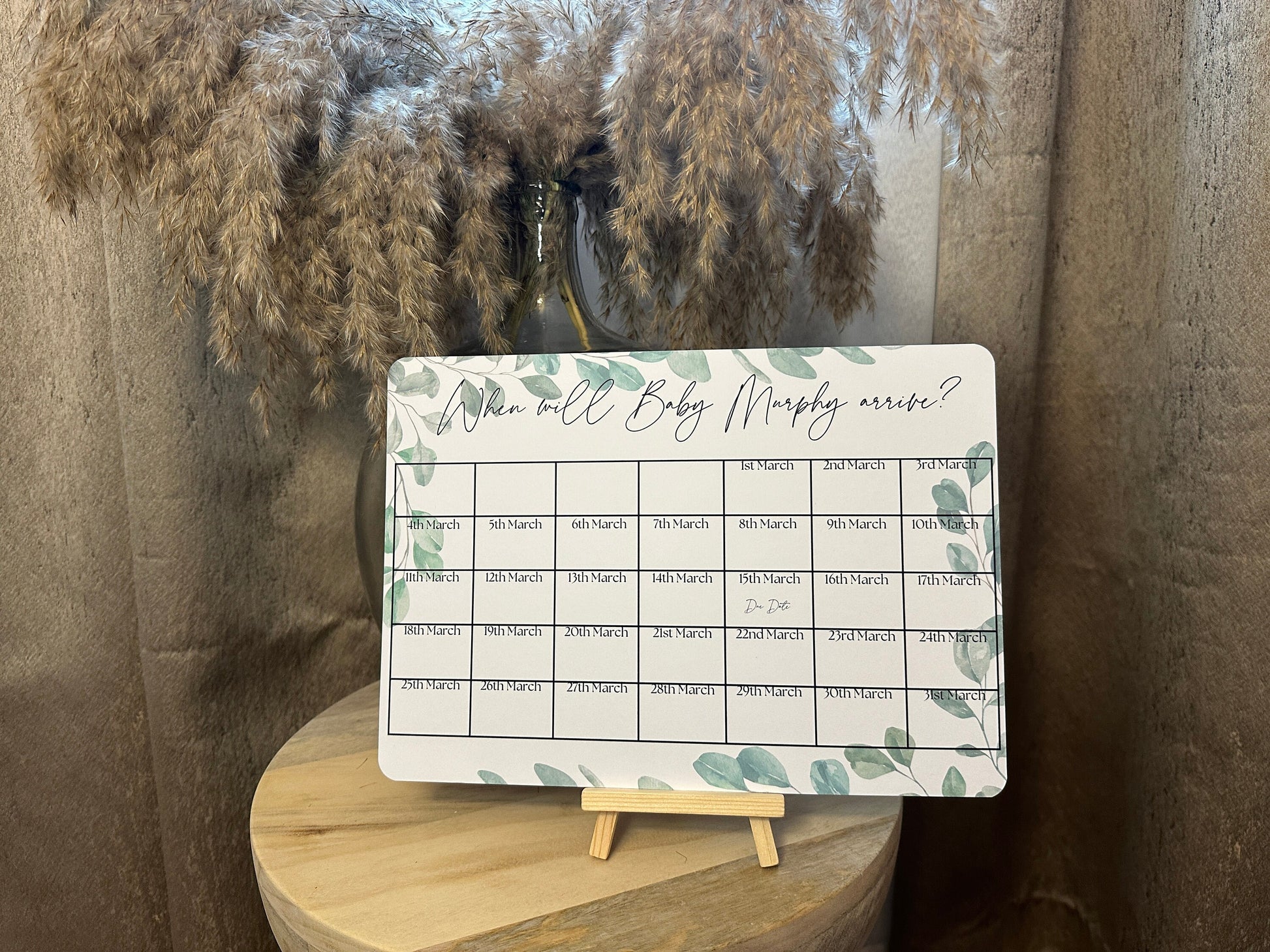 Baby Due Date Calendar Game, Baby Shower Game, Green Guess the Due Date, A4 Print, Baby Birth Prediction, Guess the Birth Date,Personalised