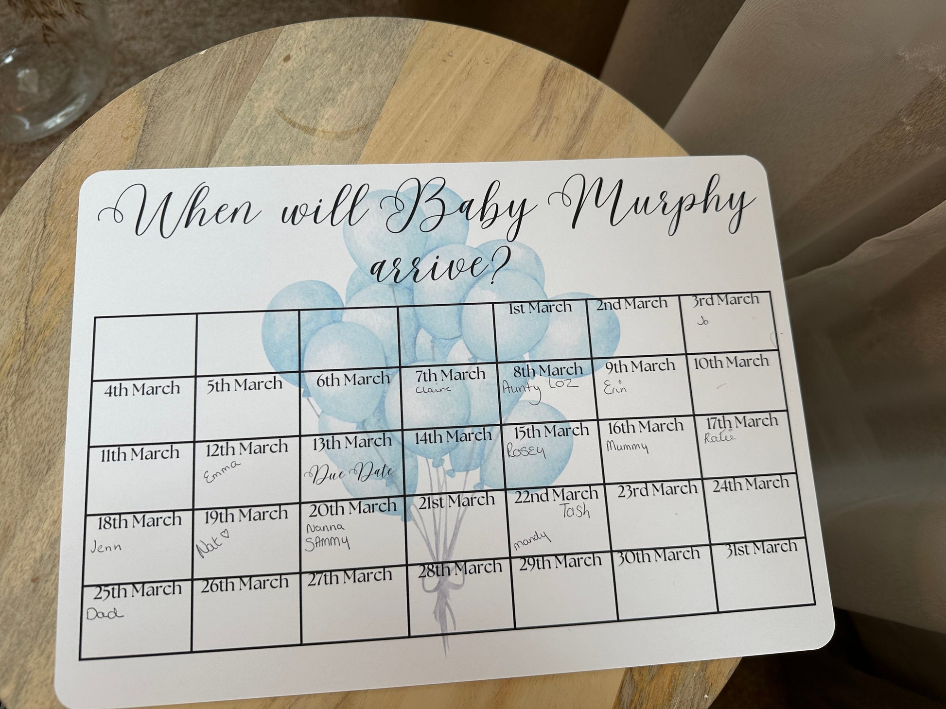 All they need to do is simply write their name in the box of the date they think the baby will arrive.