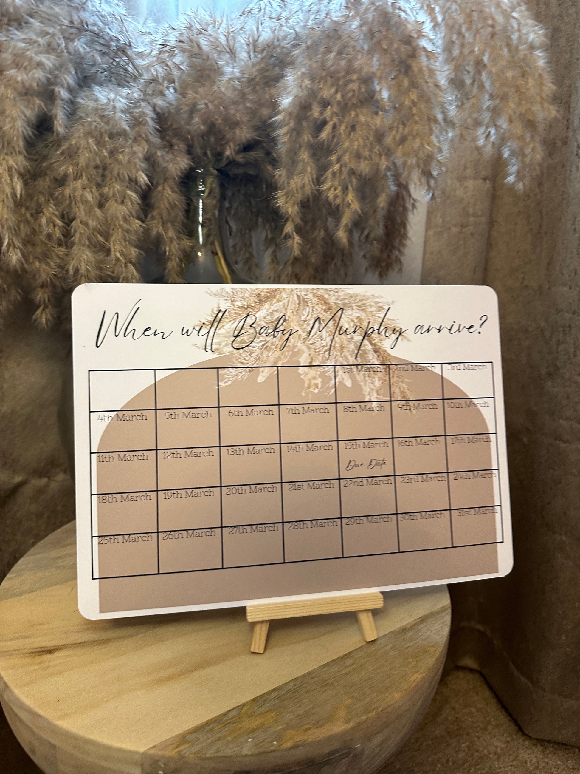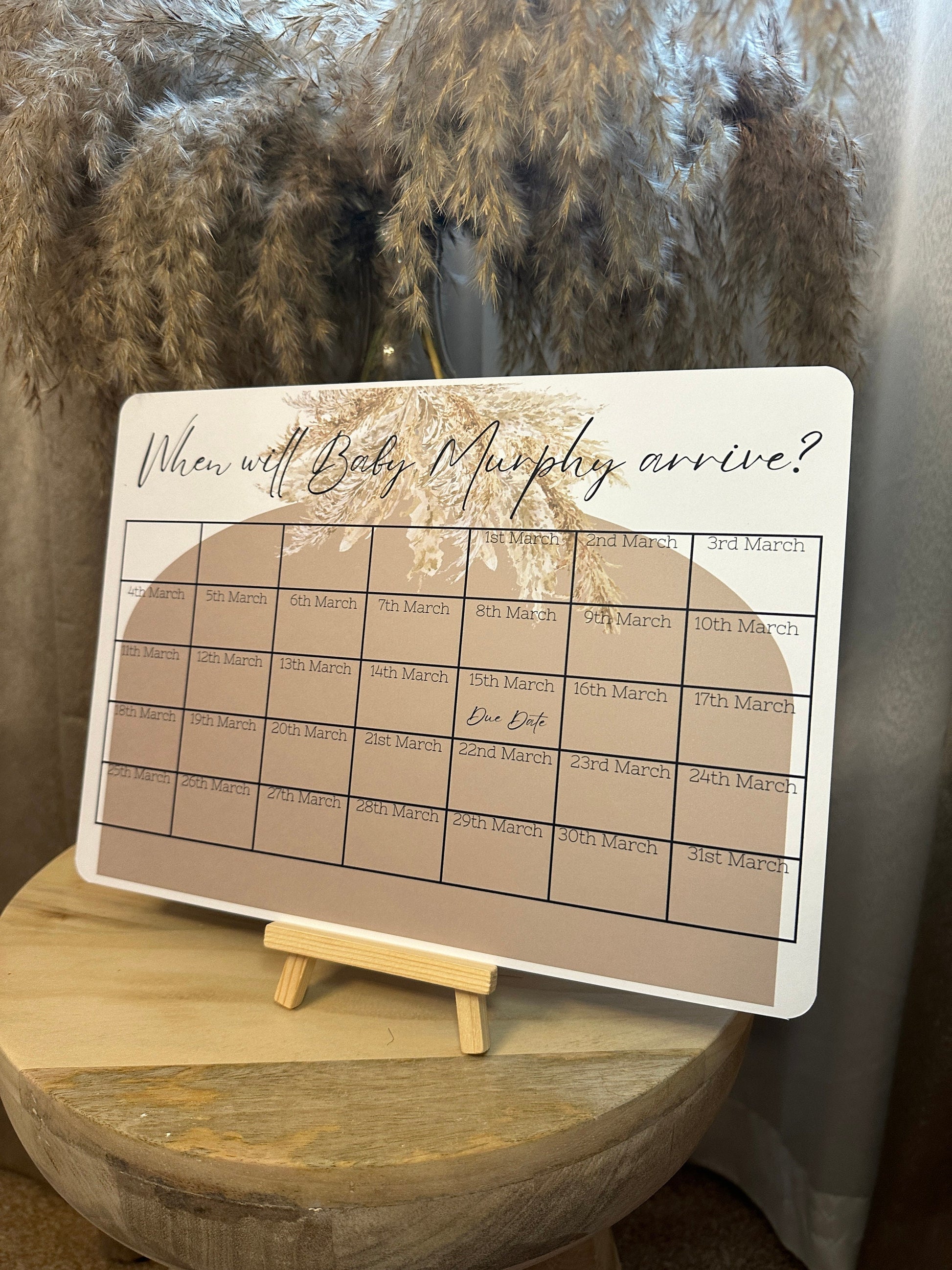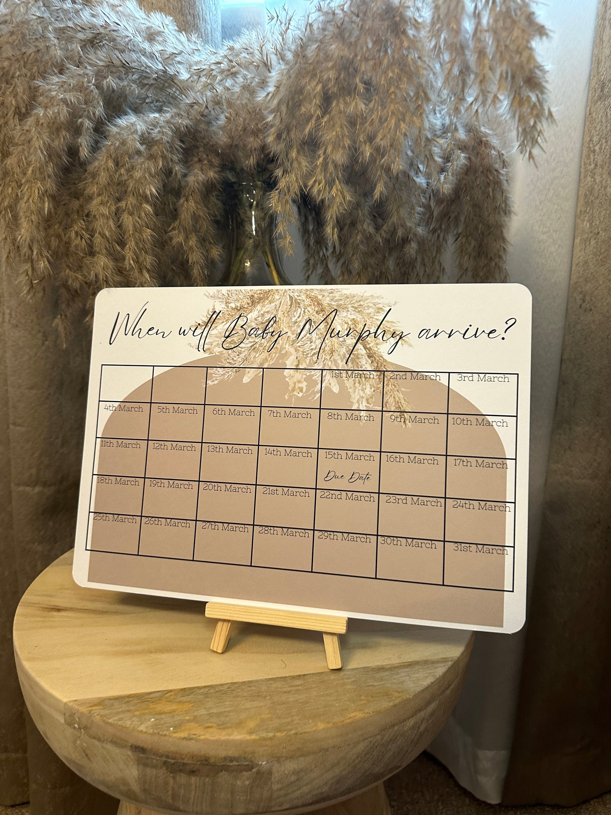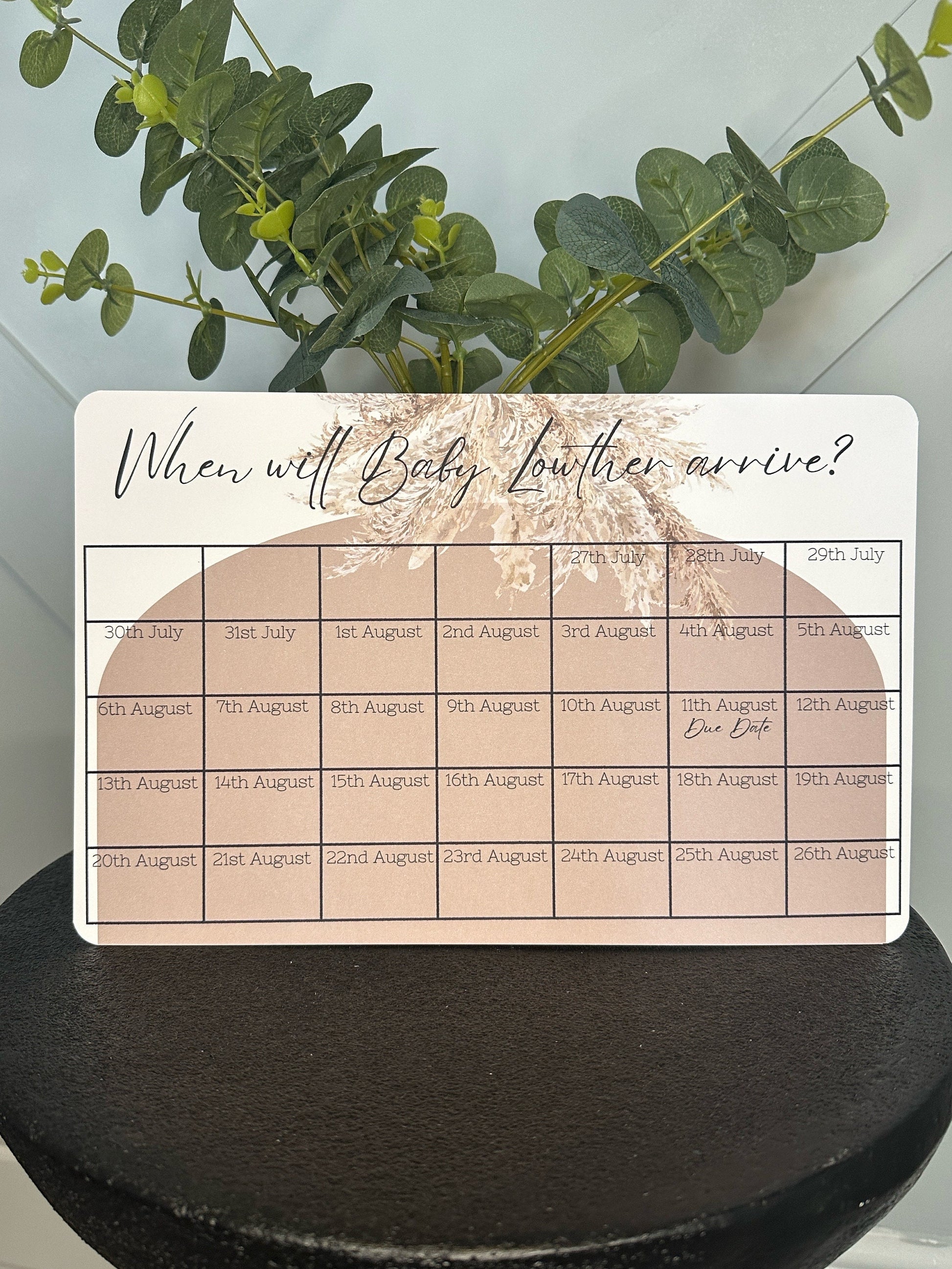Baby Due Date Calendar Game, Baby Shower Game, Pampas Guess the Due Date, A4 Print, Baby Birth Prediction, Guess the Birth Date,Personalised
