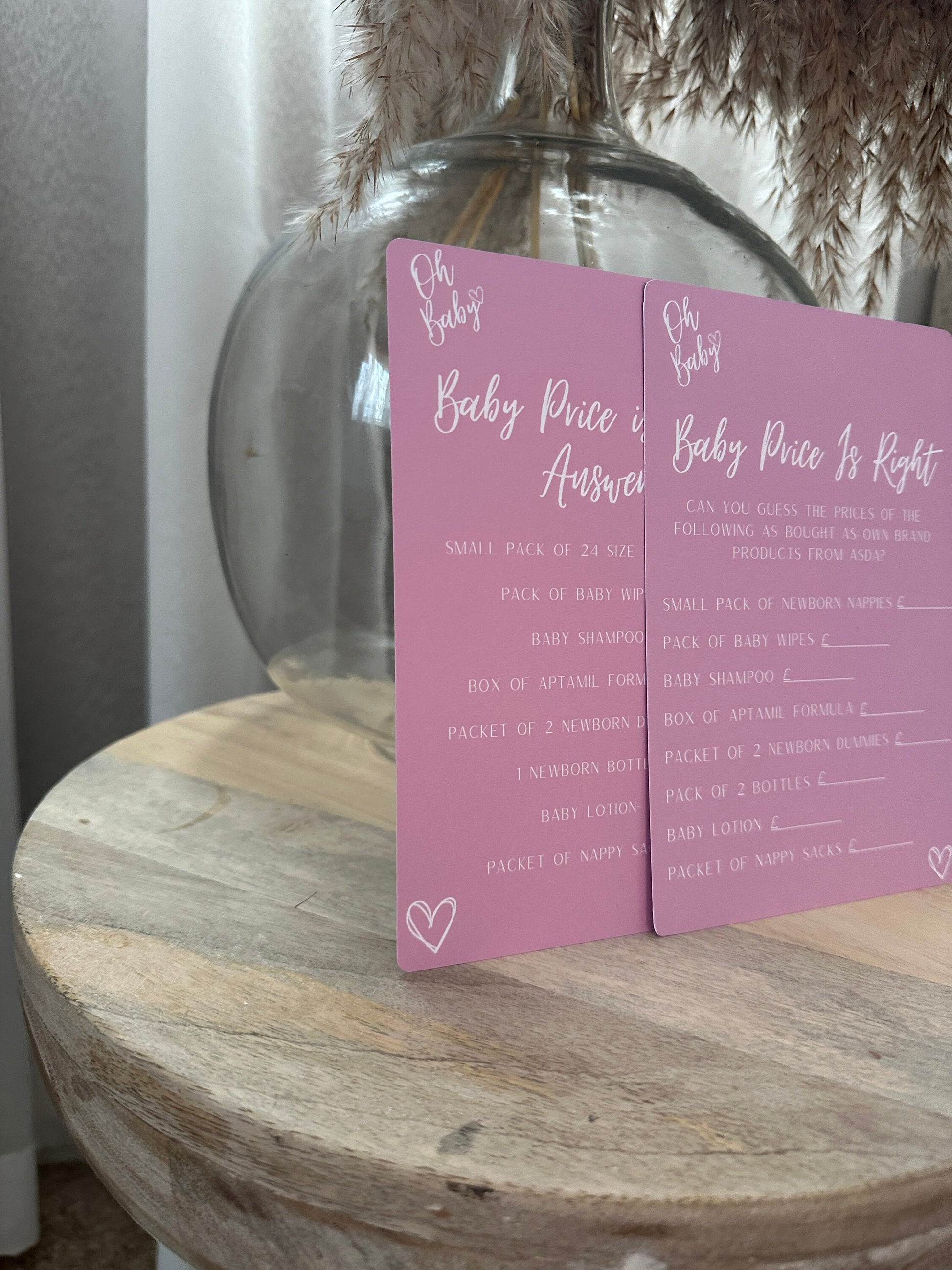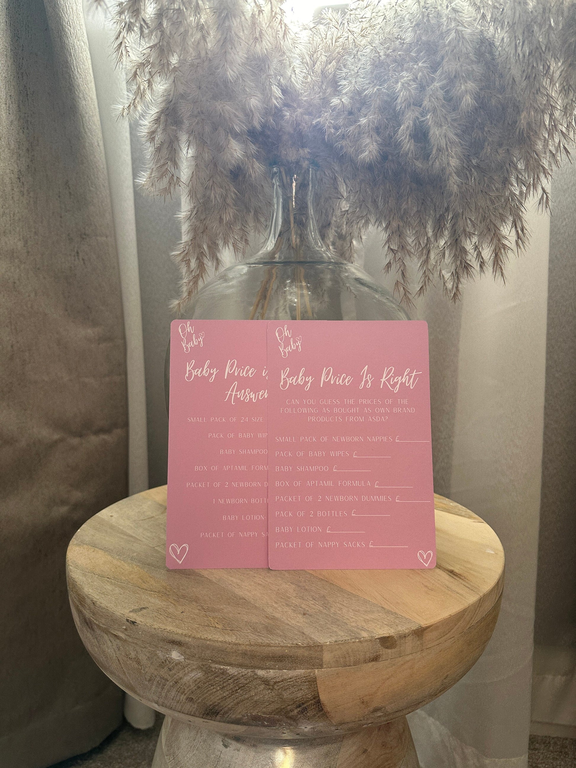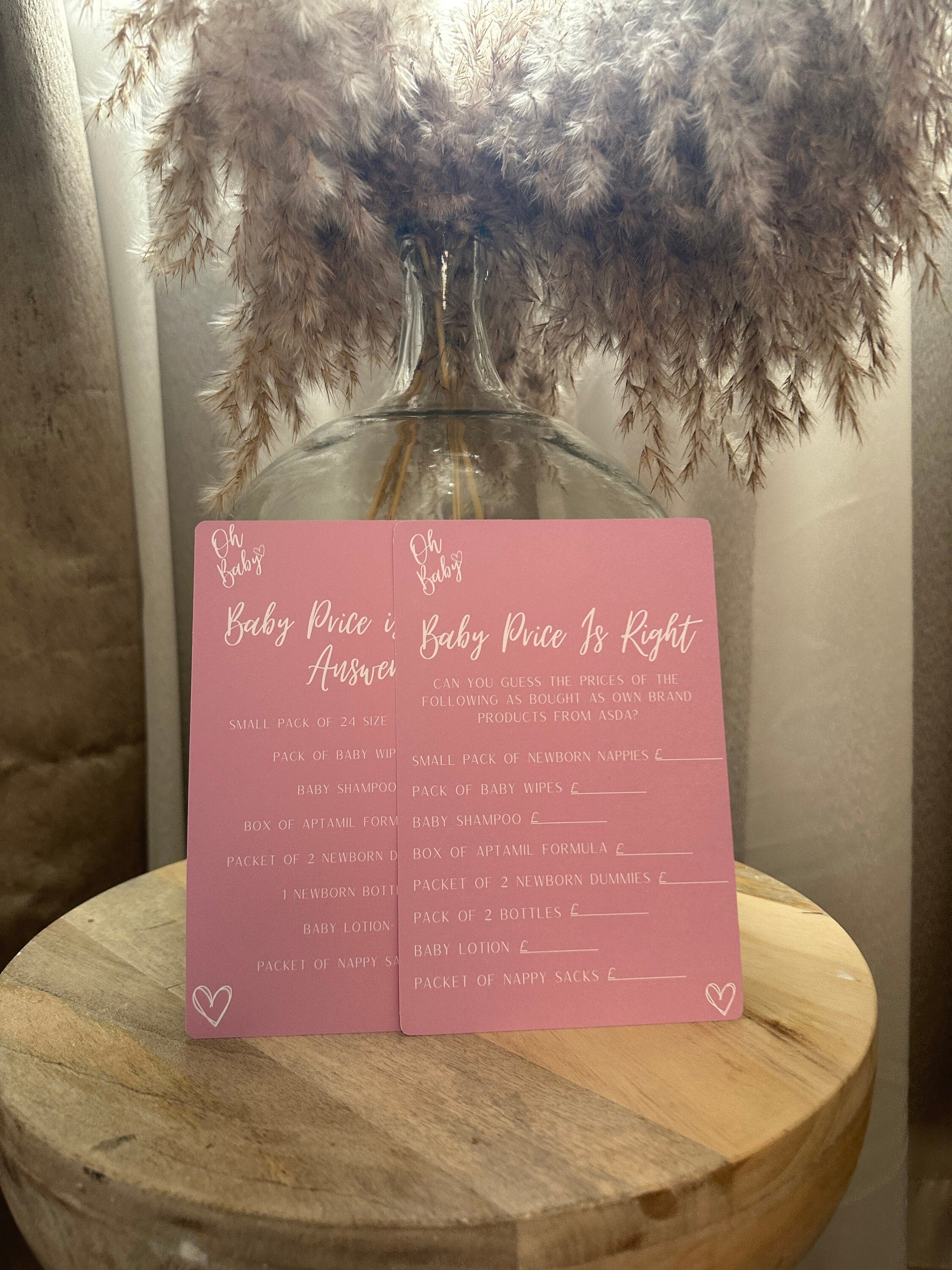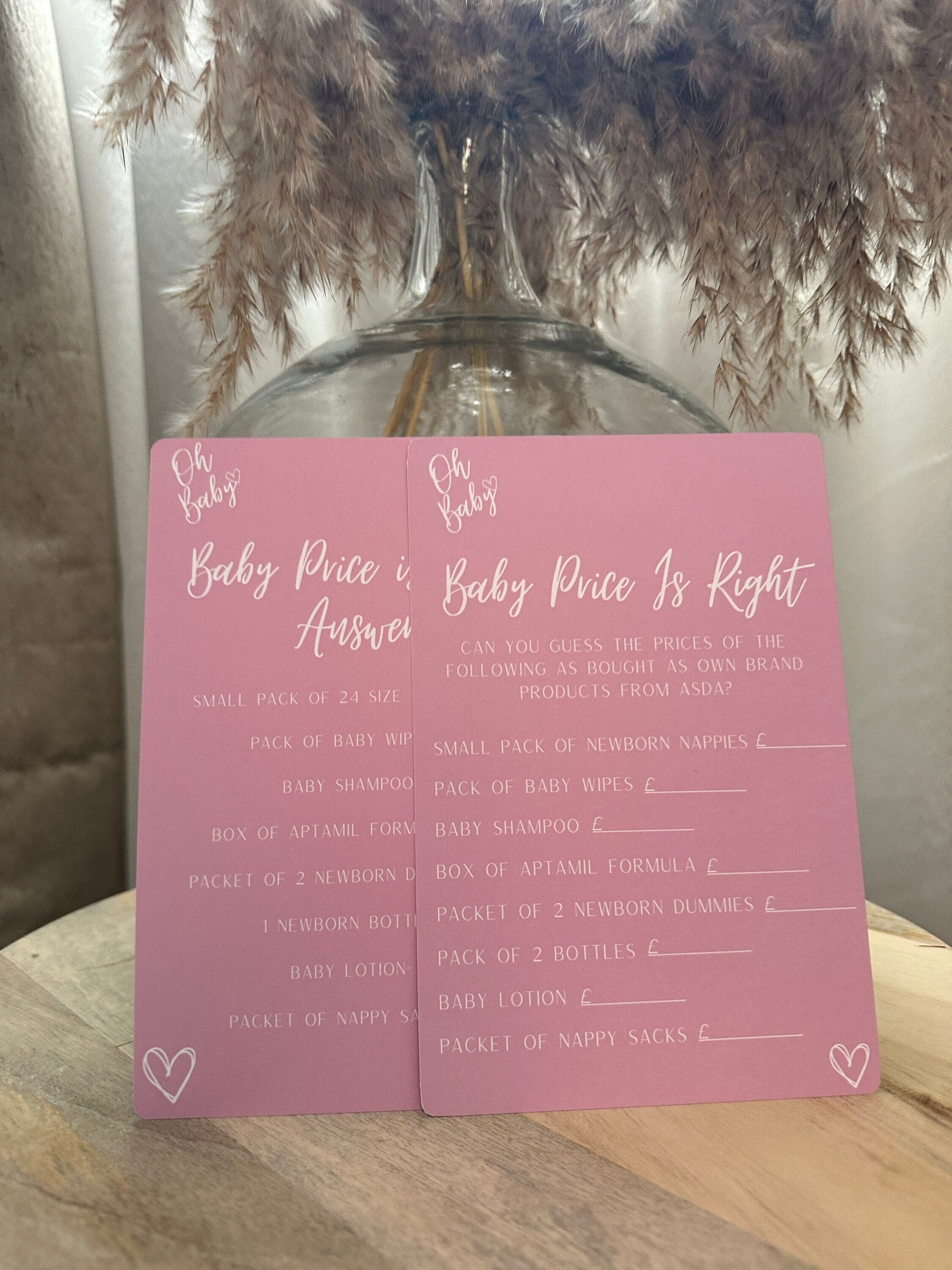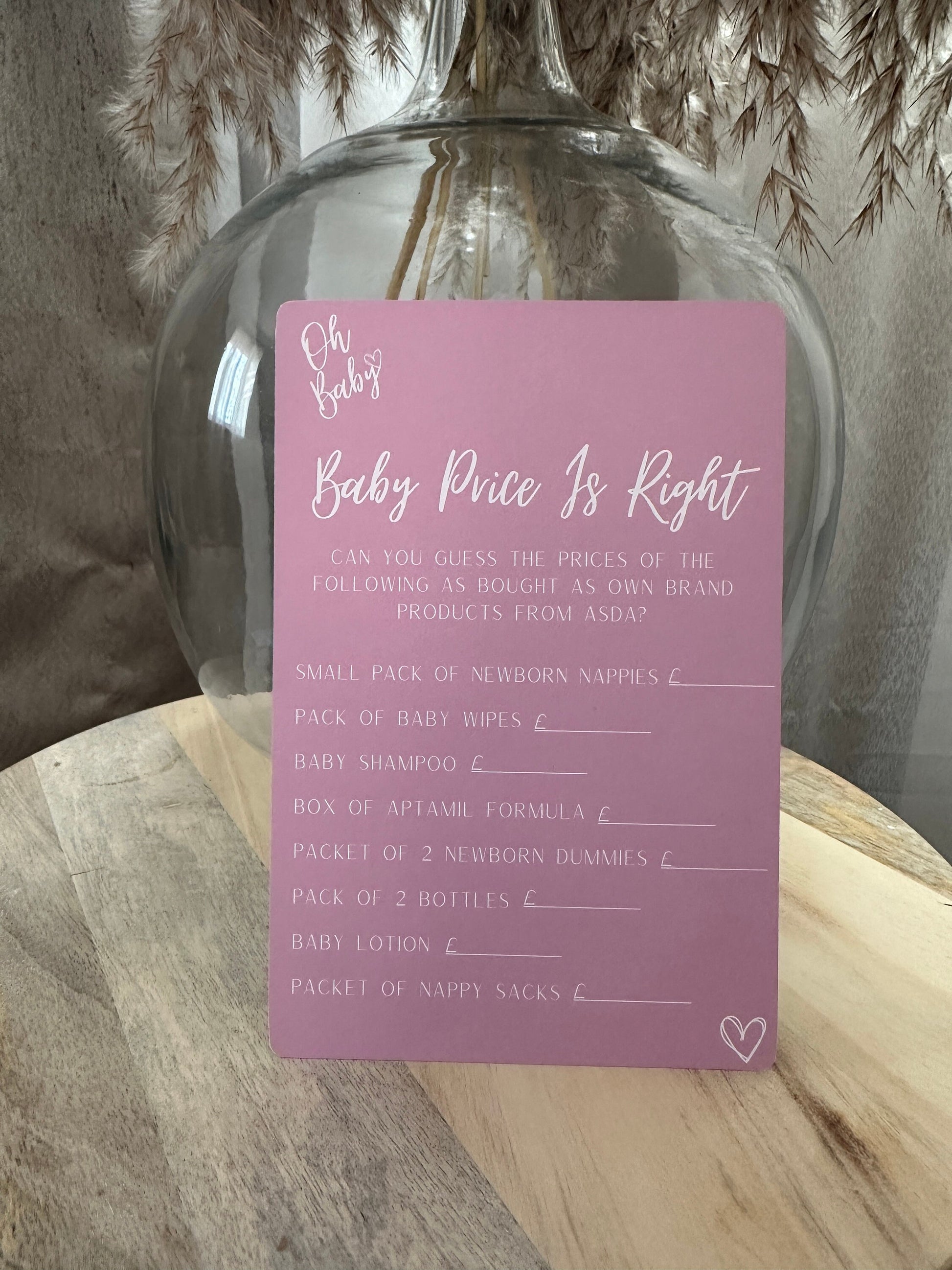 Each guest is given an answer sheet and asked to guess the price of common baby items from a supermarket.