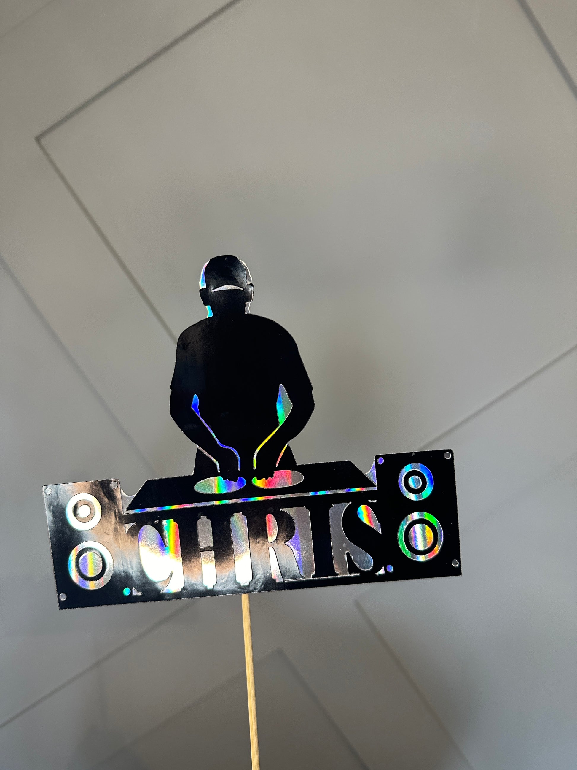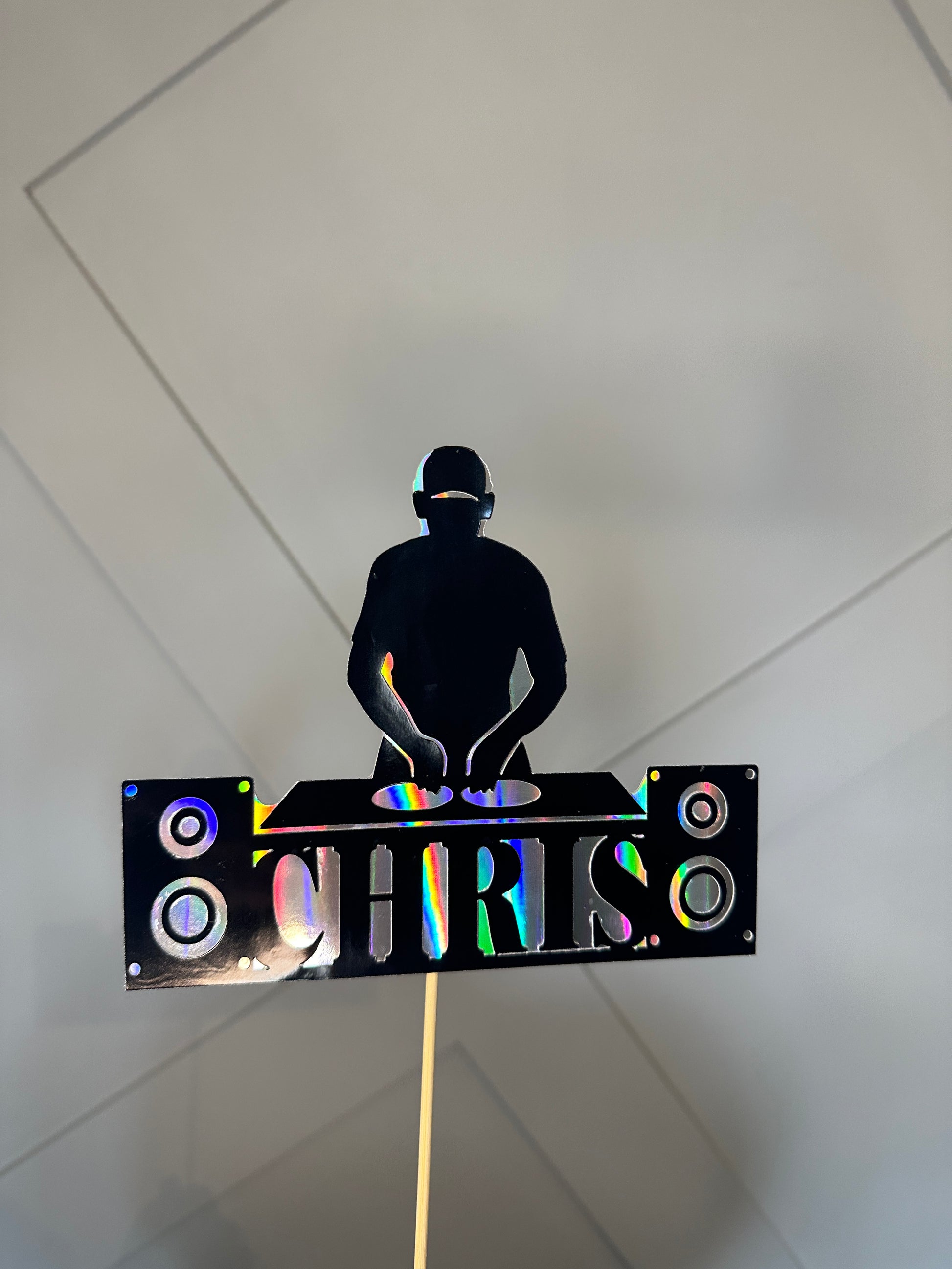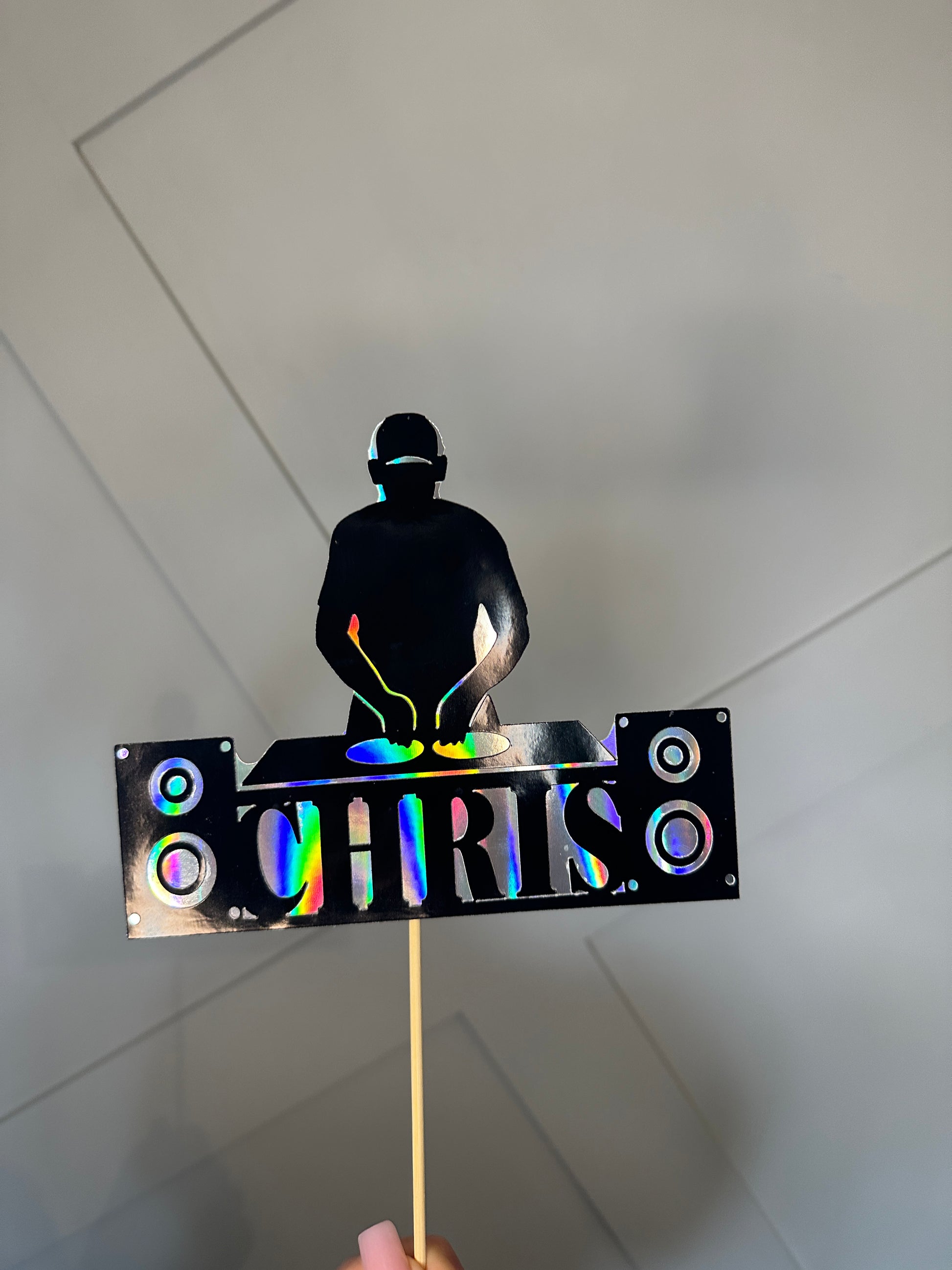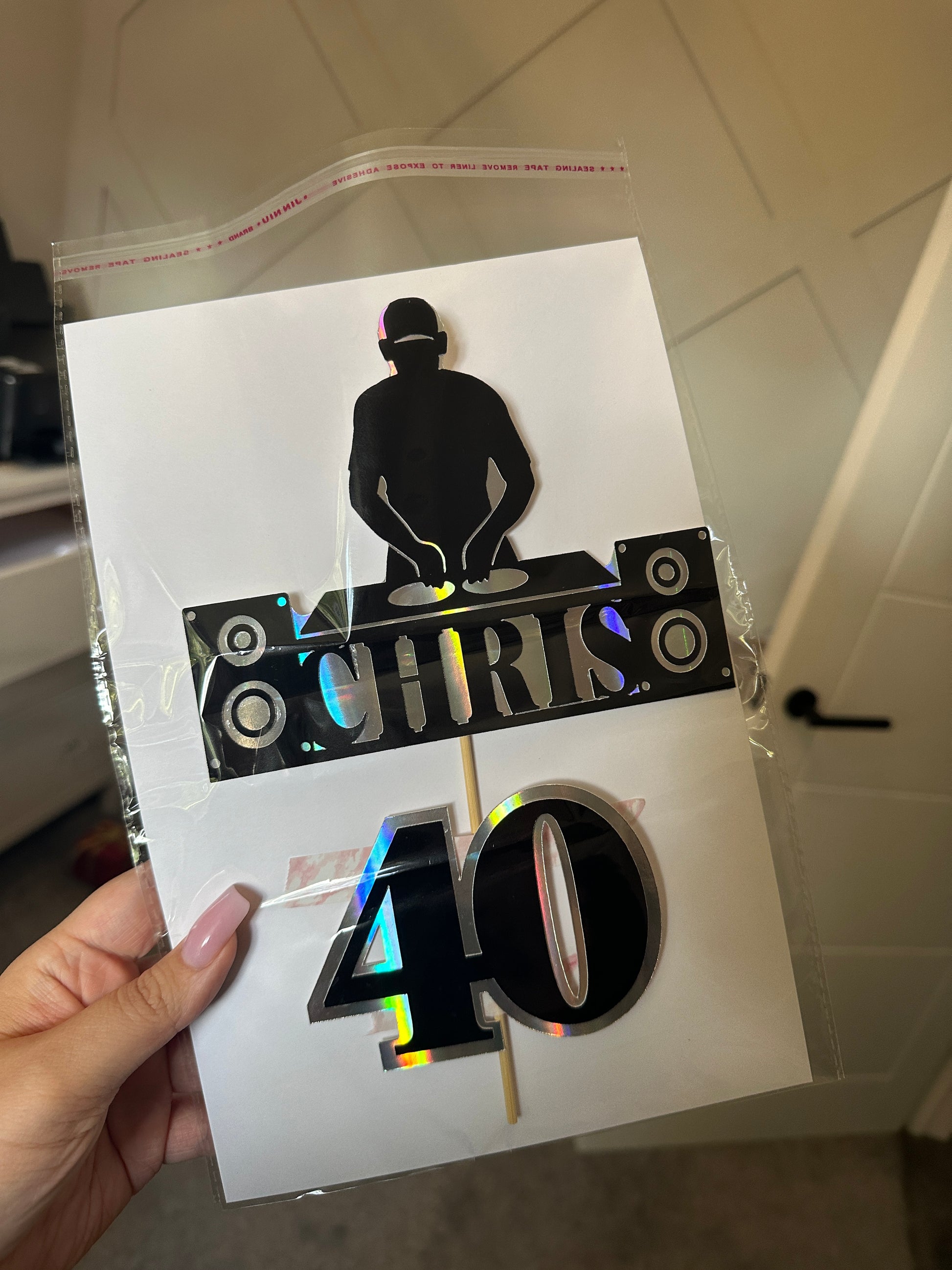 This cake topper is personalised with any name and also includes any freestanding number to be stuck onto the front of the card.