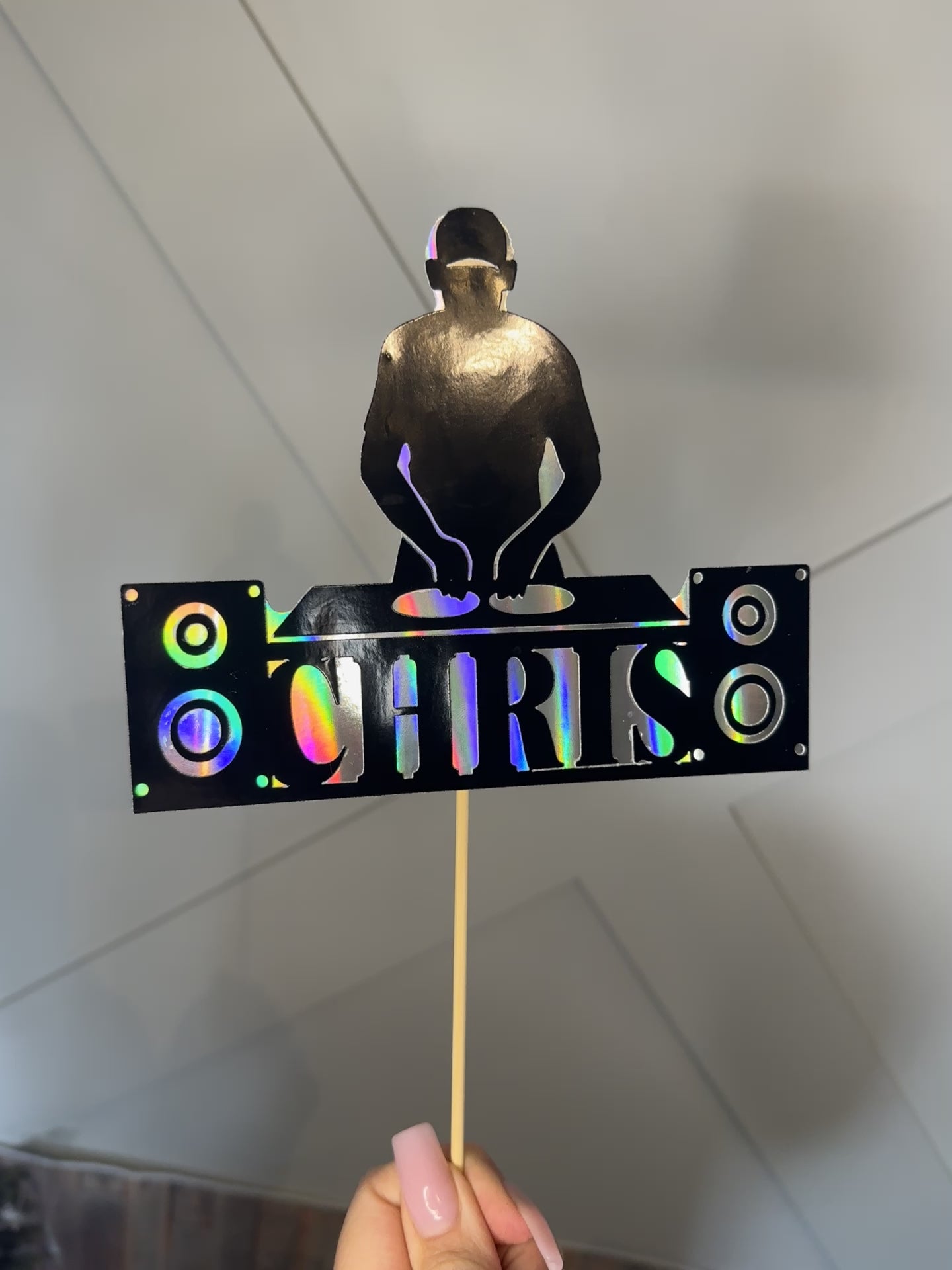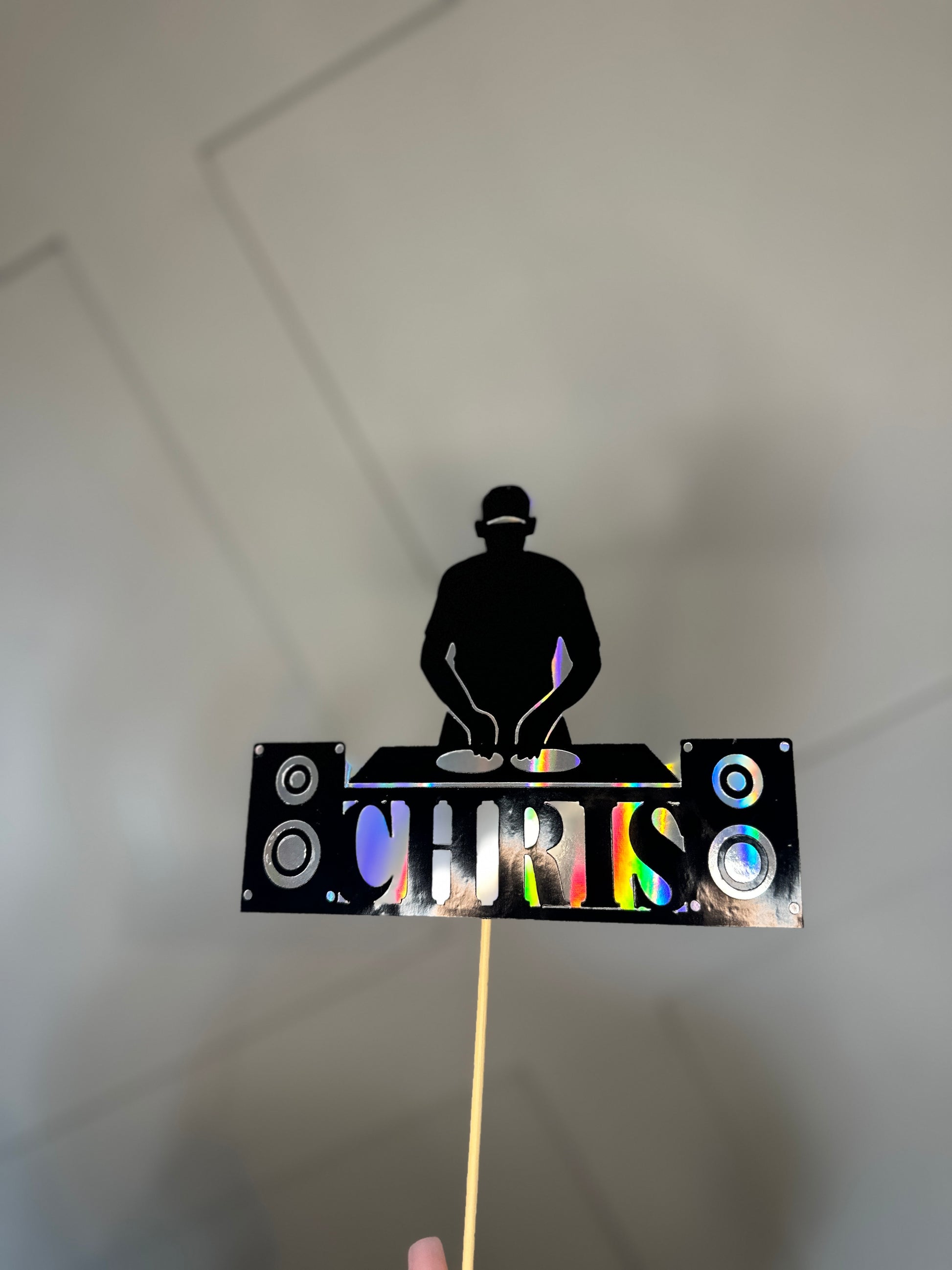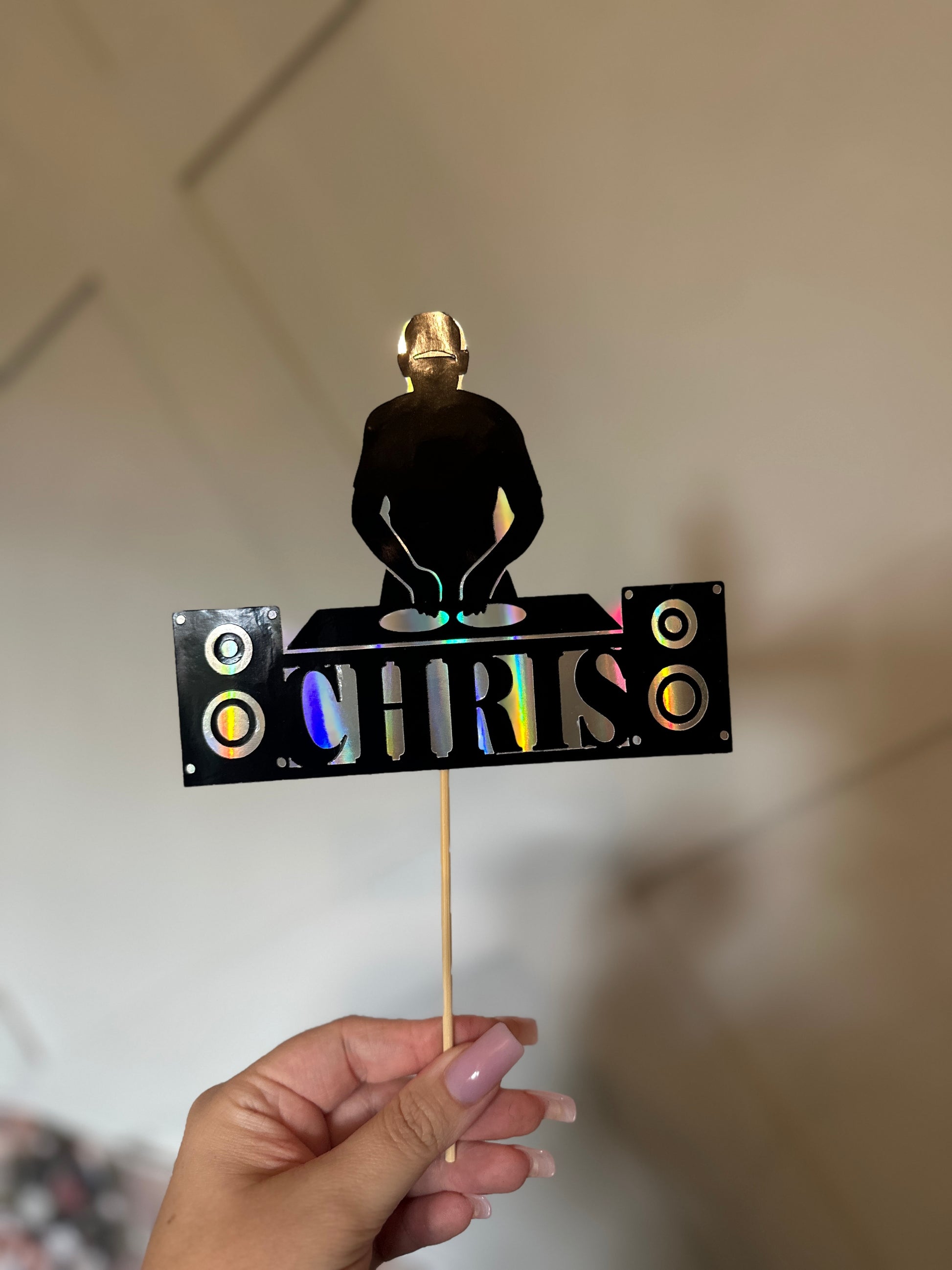 This cake topper is personalised with any name and also includes any freestanding number to be stuck onto the front of the card.