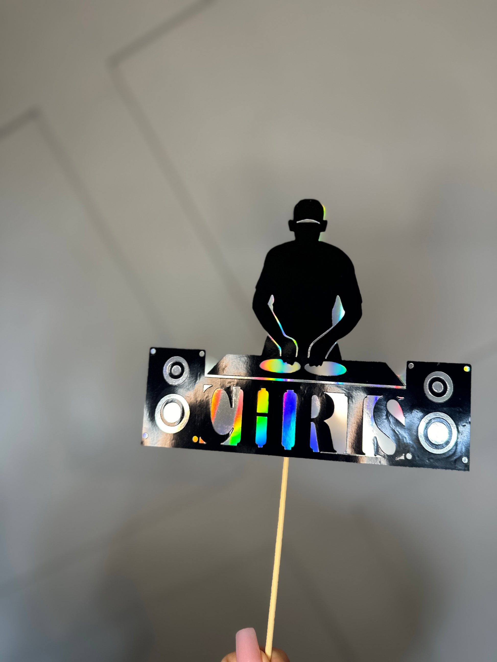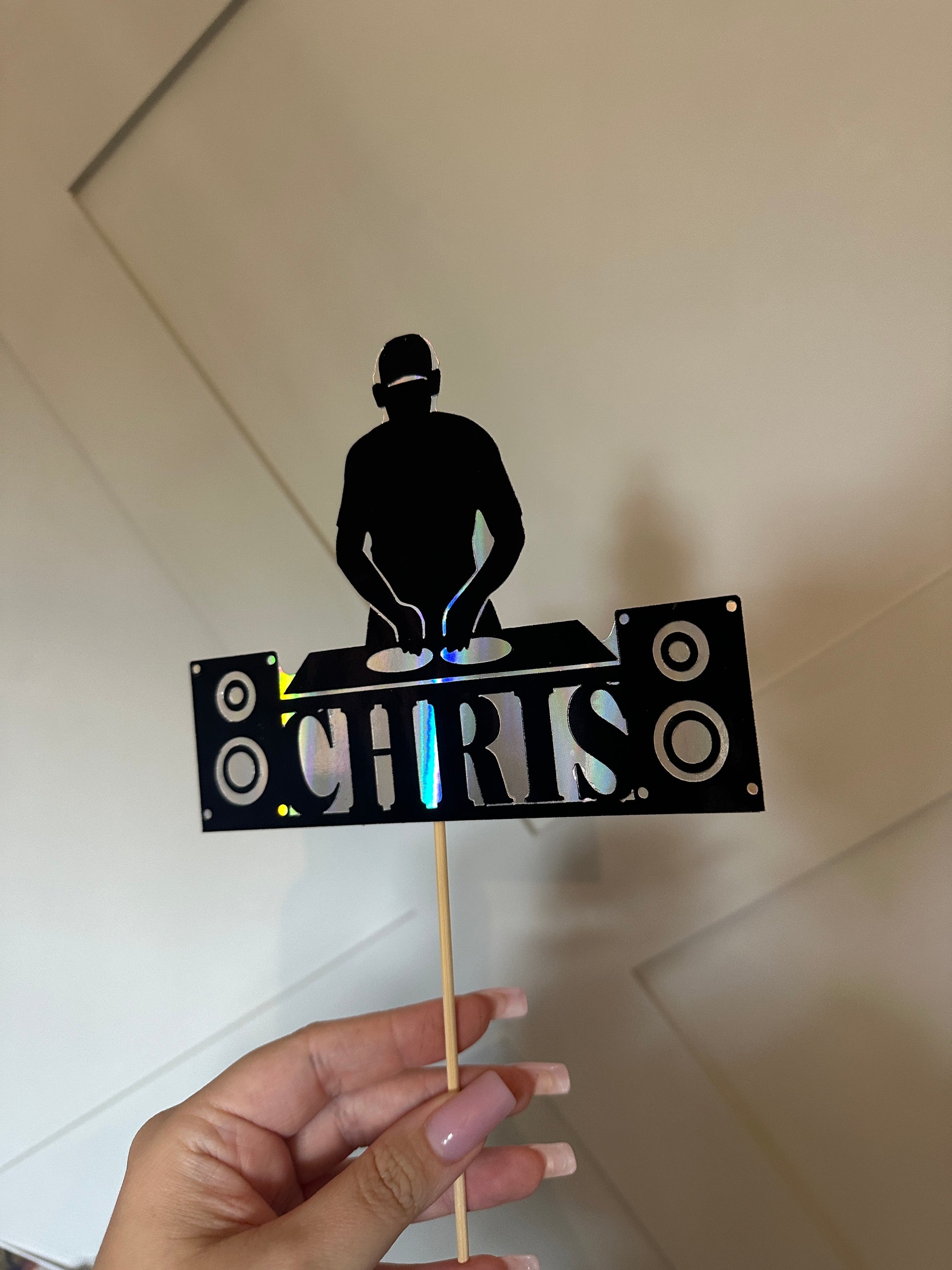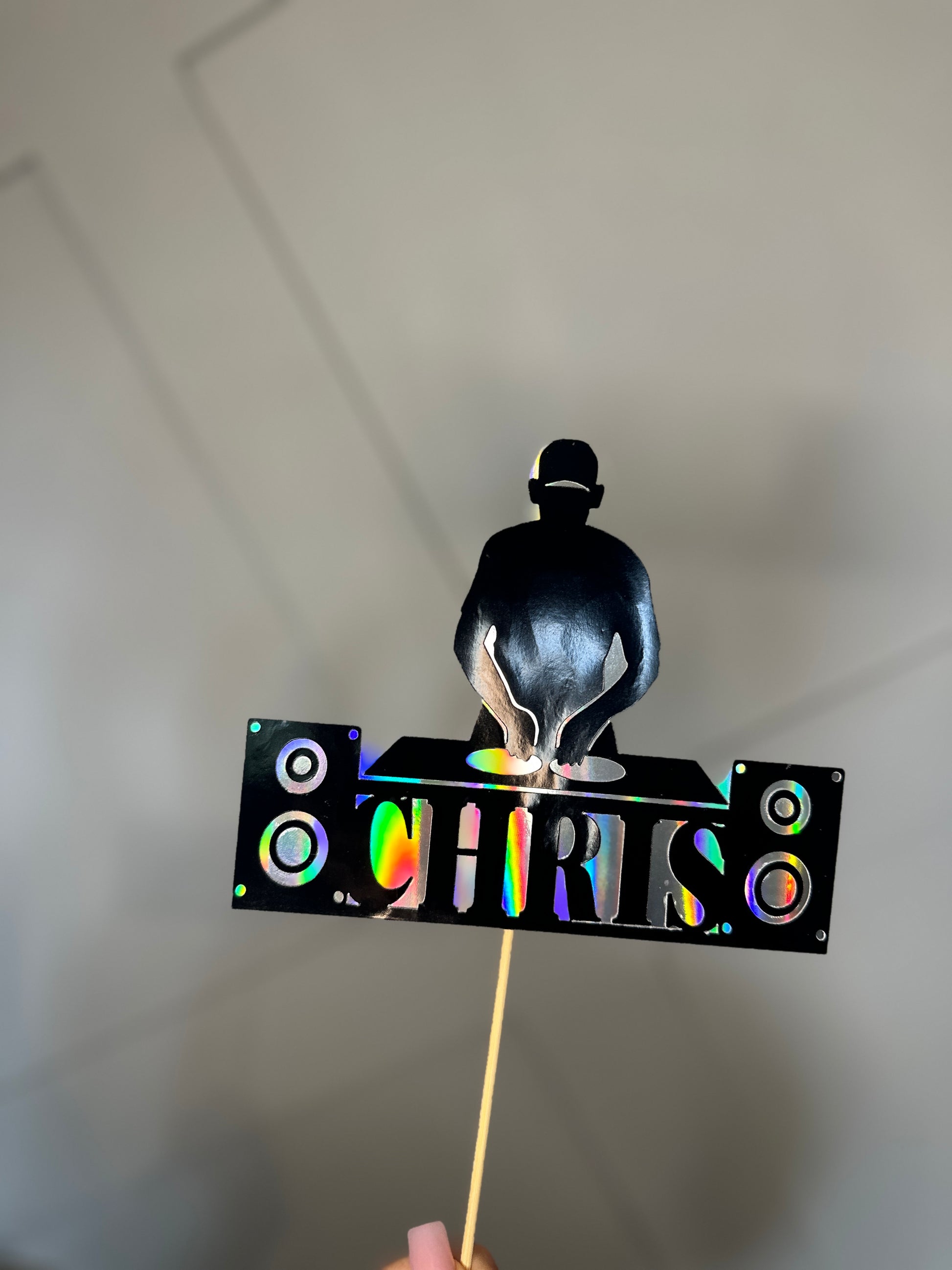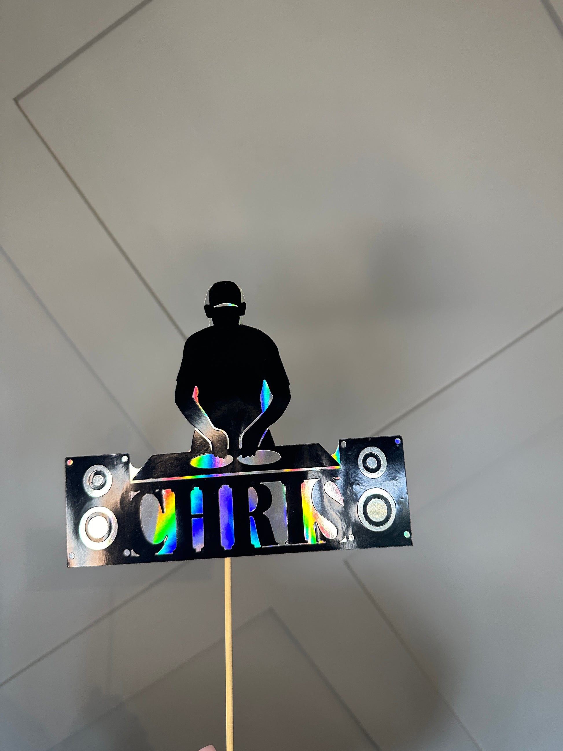 This cake topper is personalised with any name and also includes any freestanding number to be stuck onto the front of the card.