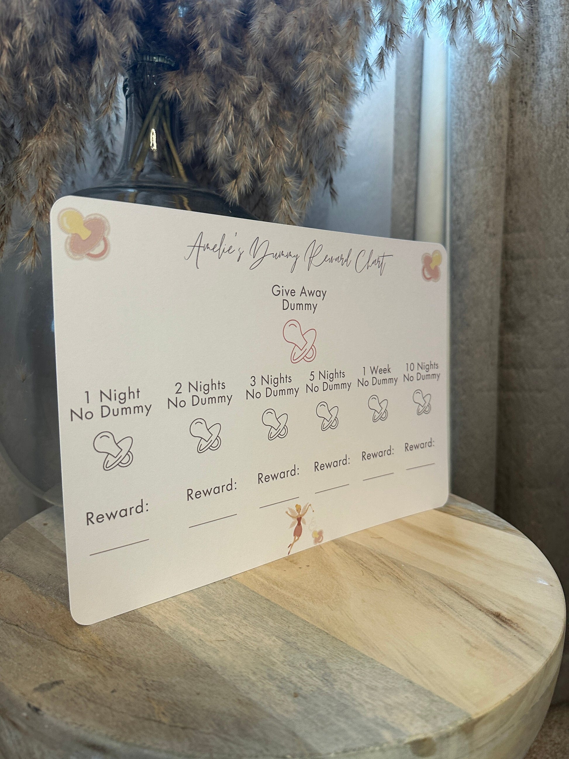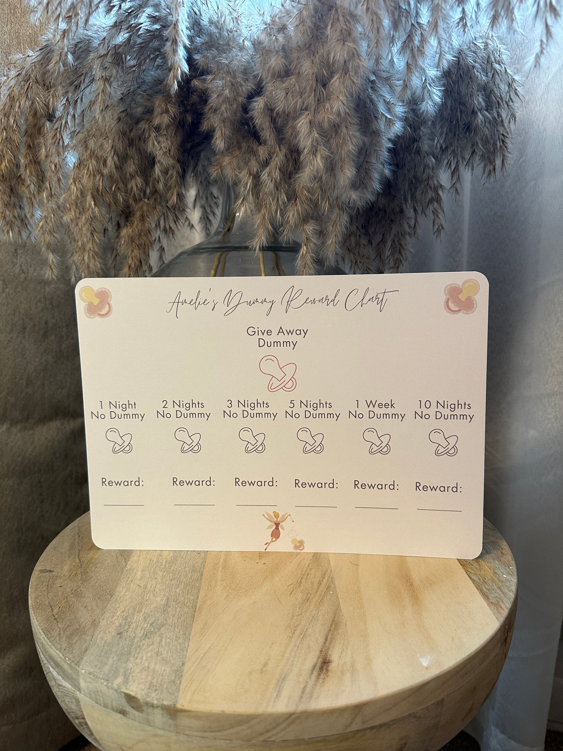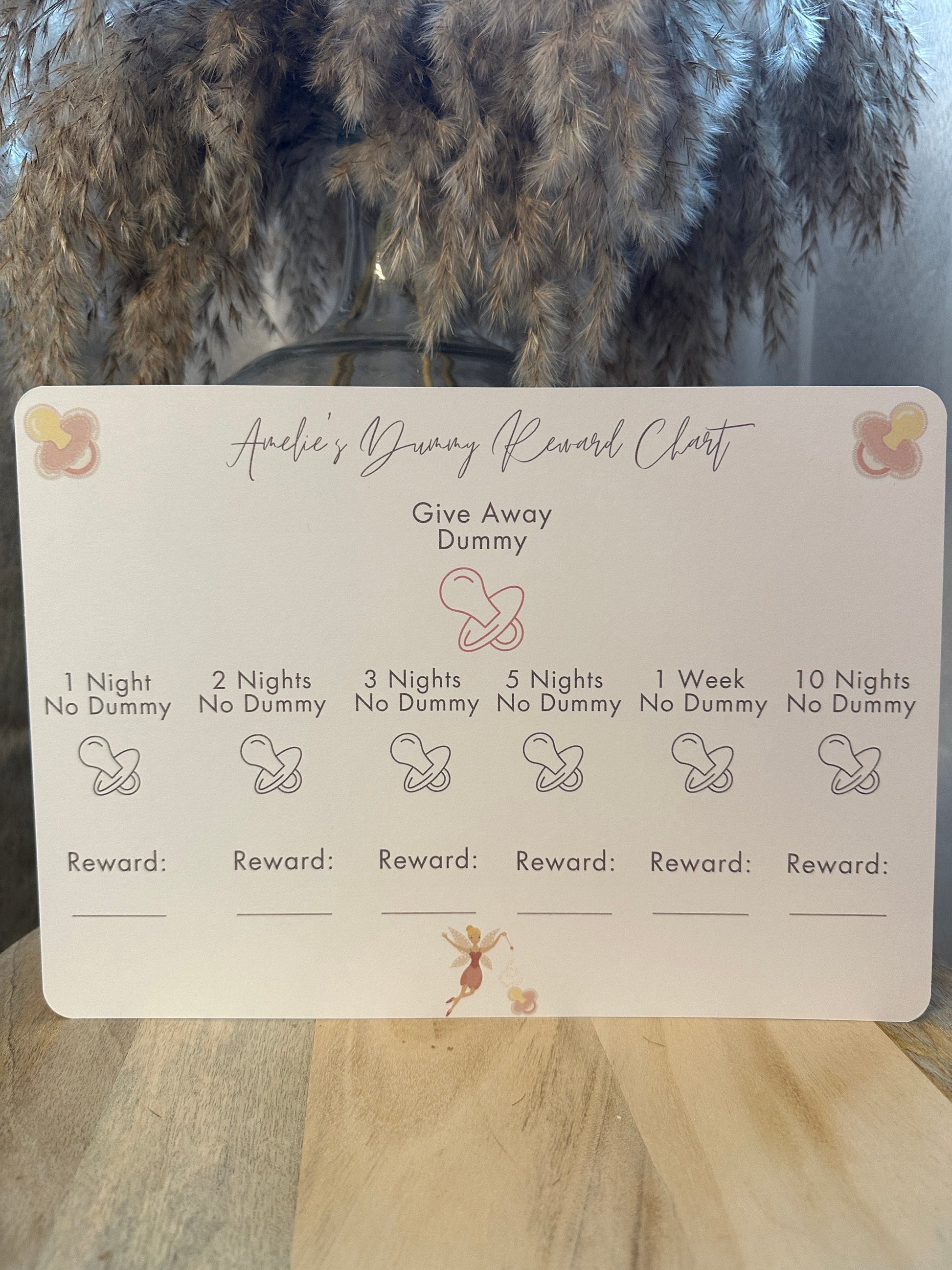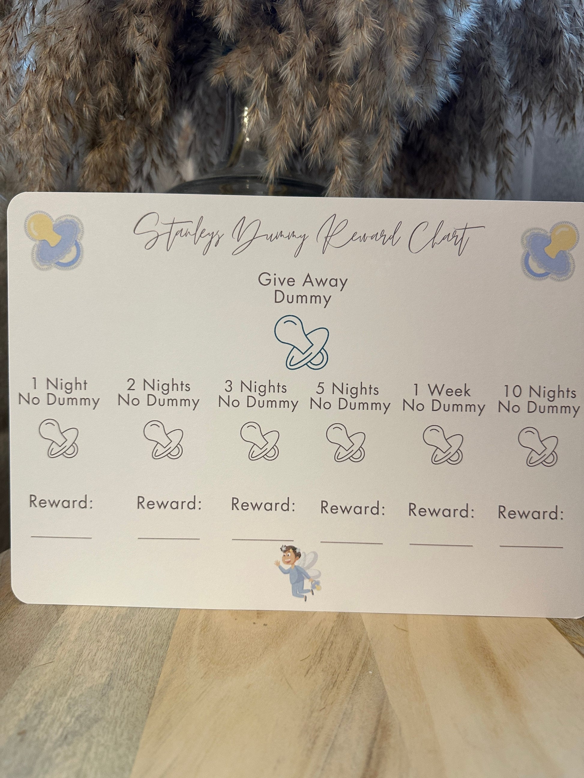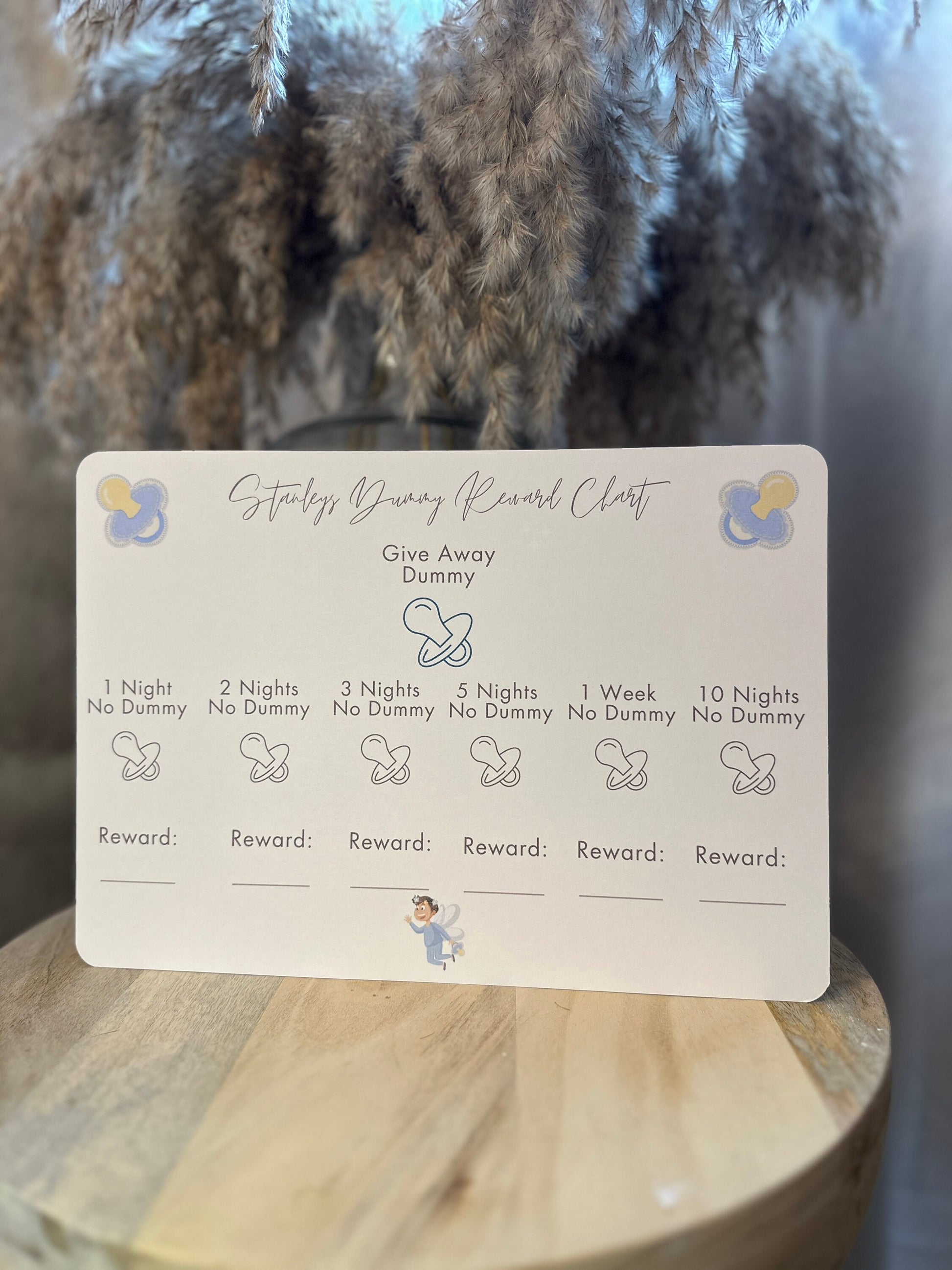 Dummy Reward Chart, Personalised Dummy Reward Chart, Giving Up Dummy Encouragement Dummy Weaning, A4 Size, Available in Green, Pink and Blue.