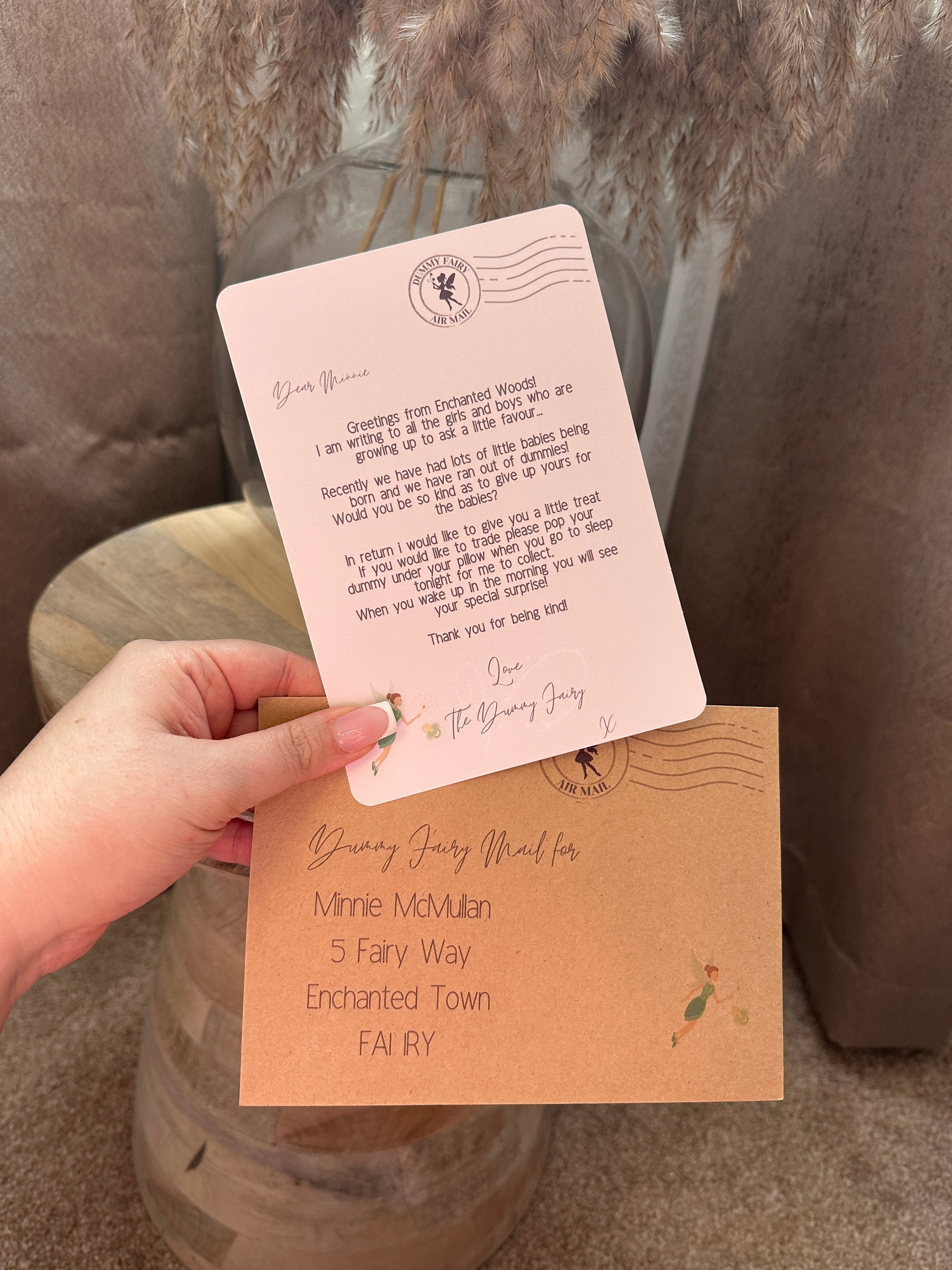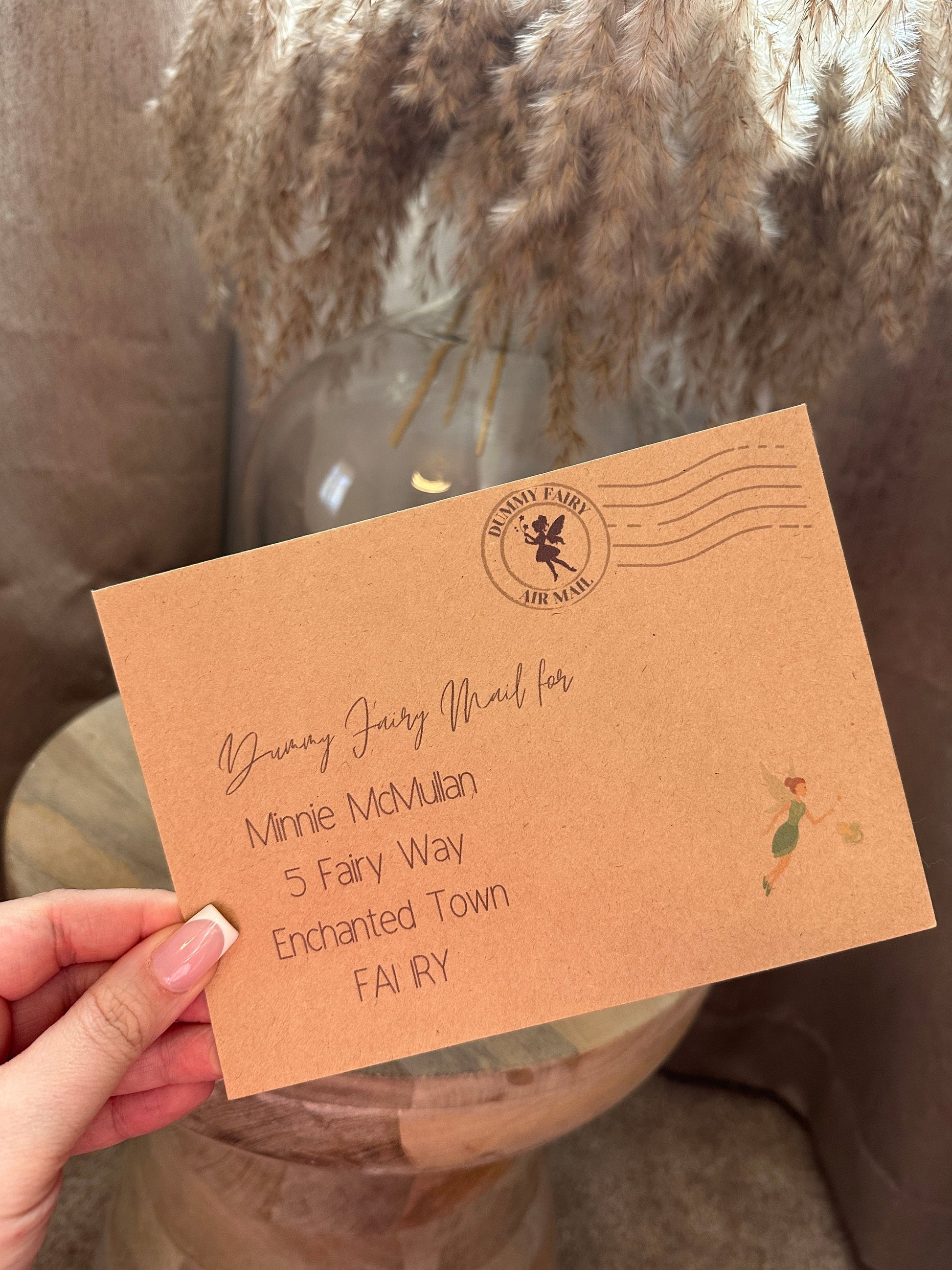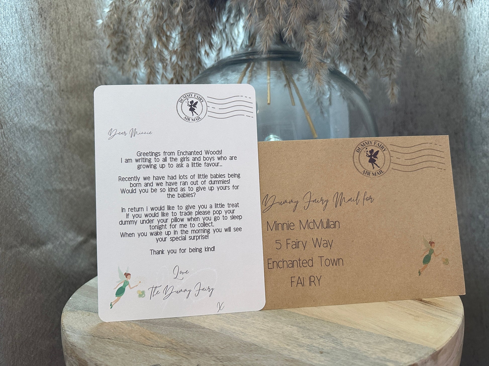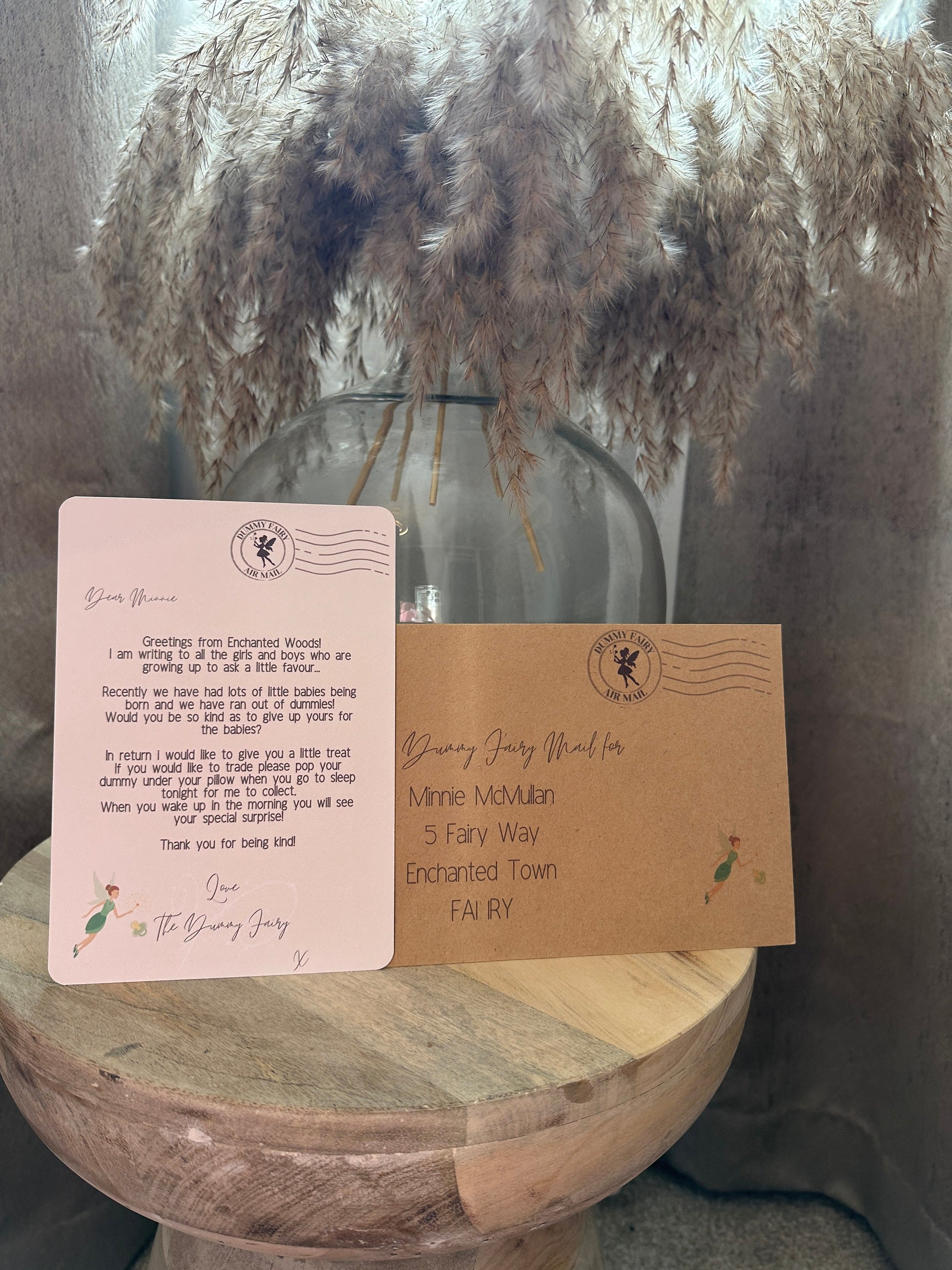 Personalised with the Childs name and address on the envelope so it looks like its come from the Dummy Fairy.