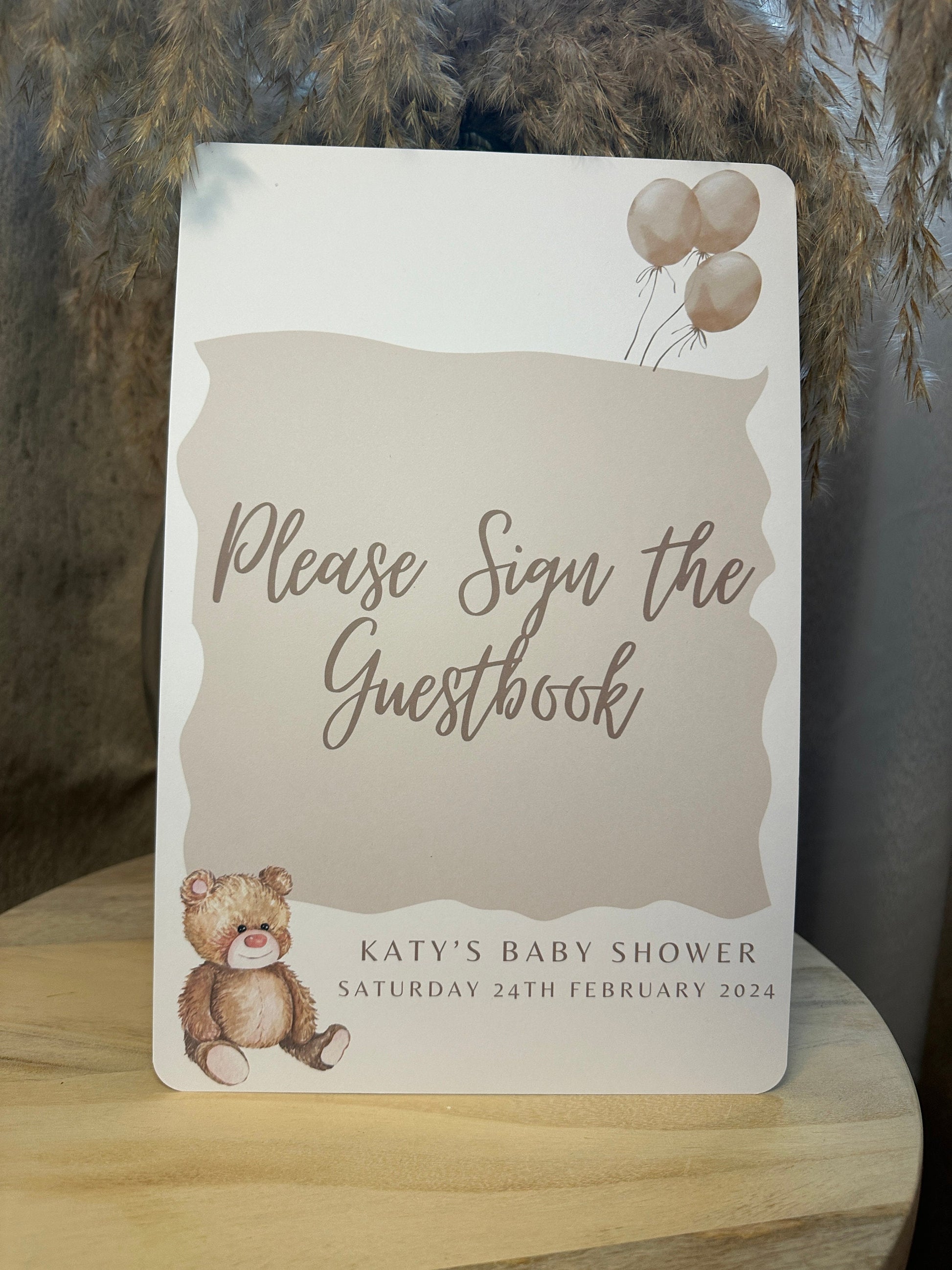 Teddy Bear Guest Book Sign- A4 or 5x7 Size