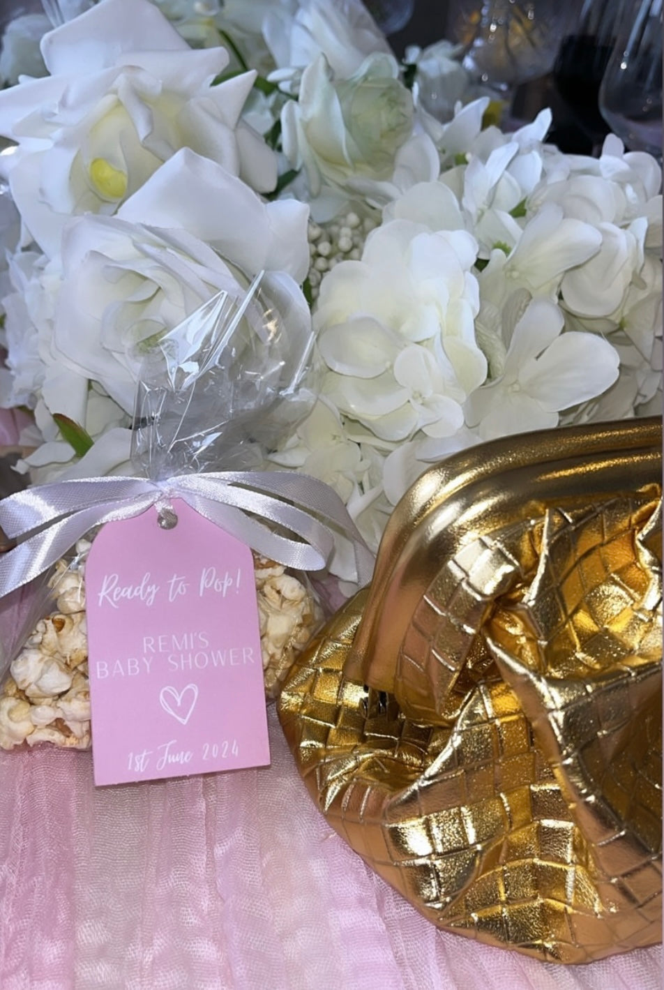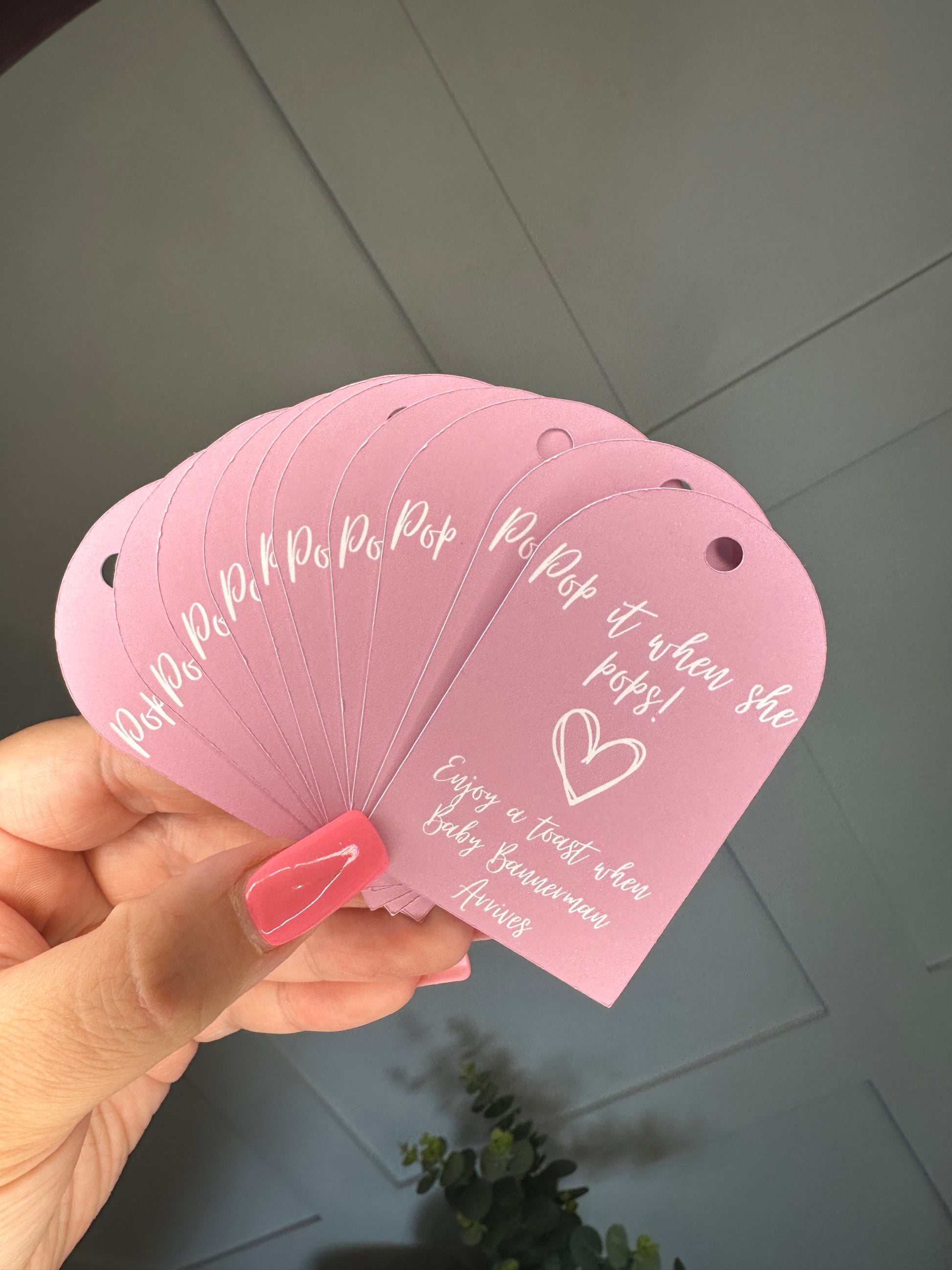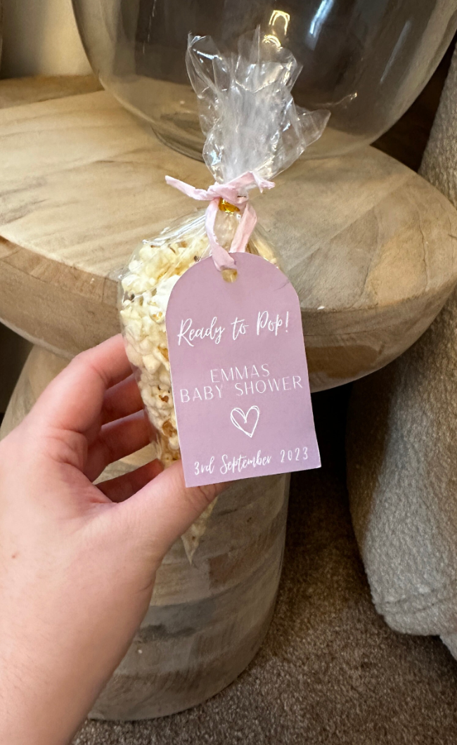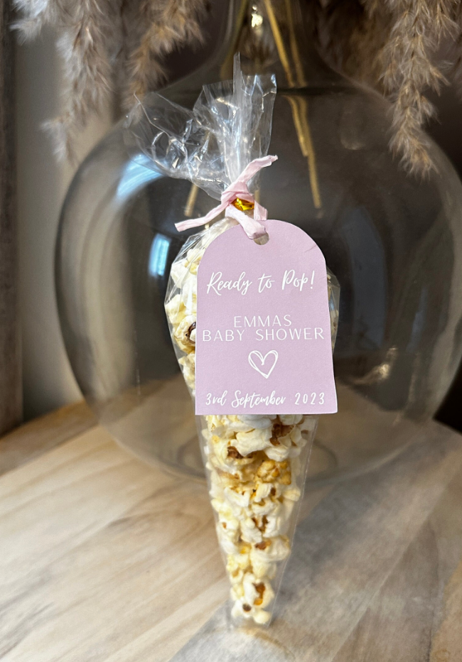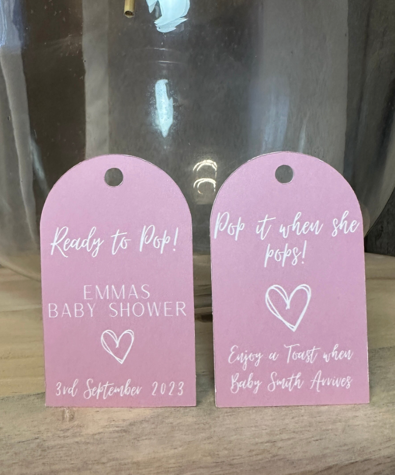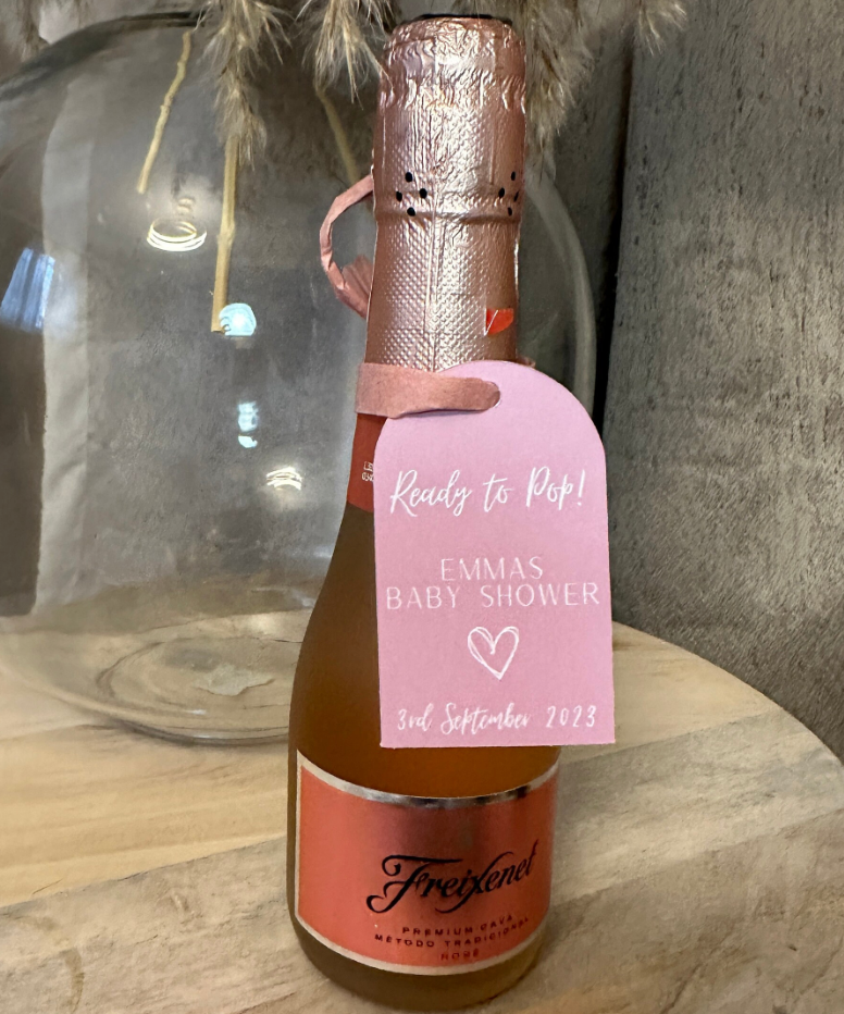 Add a personalised touch to your celebrations with our 'Ready To Pop' tags. This set of 10 customisable tags is perfect for adding a special flourish to small Prosecco or Champagne bottles, or even popcorn cones, making them ideal for baby showers, parties, and other special events.