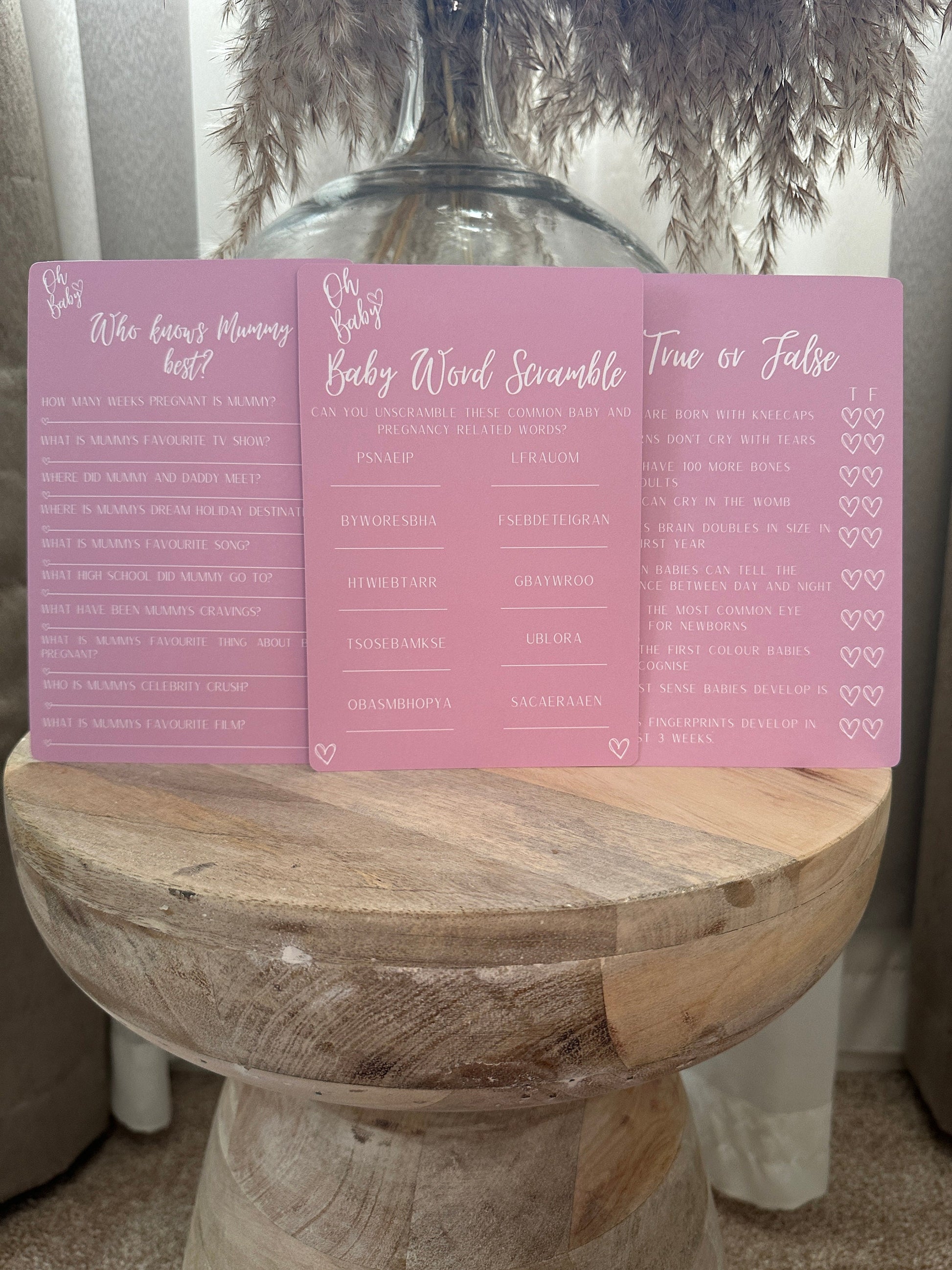 Pink Baby Shower Bundle: Includes 3 games, Prediction Cards, Advice For Mum Cards and Baby Bucket List cards.