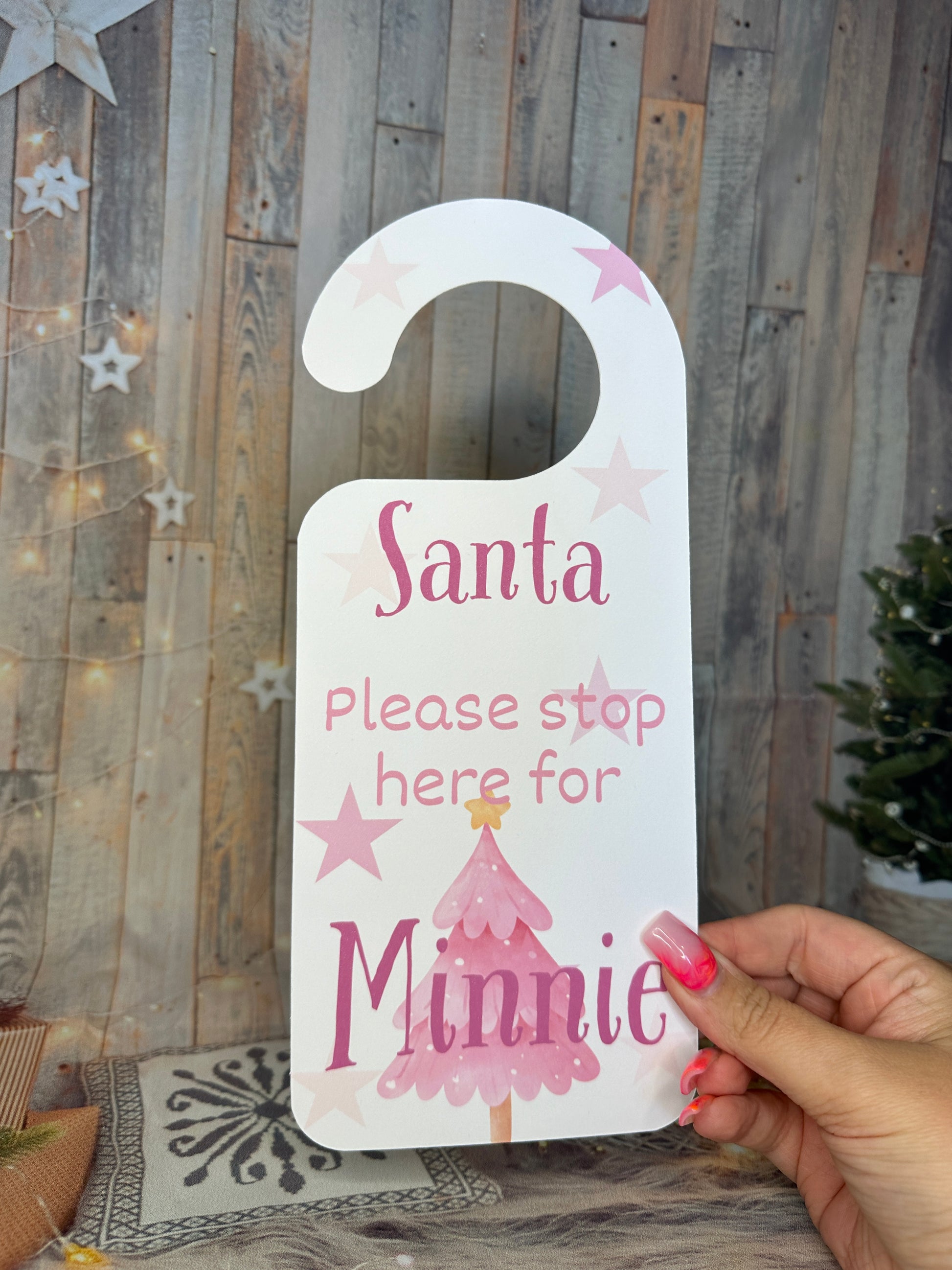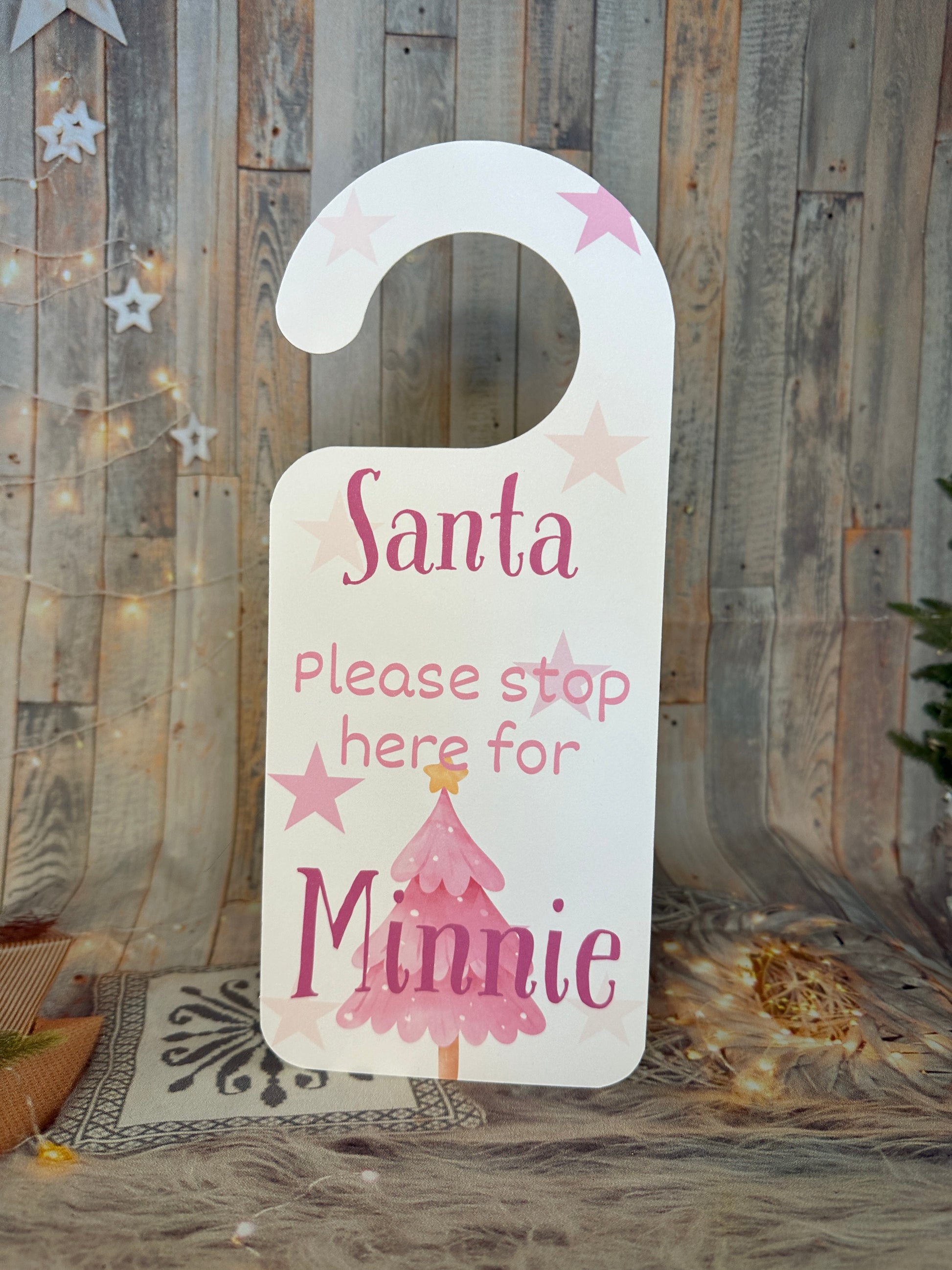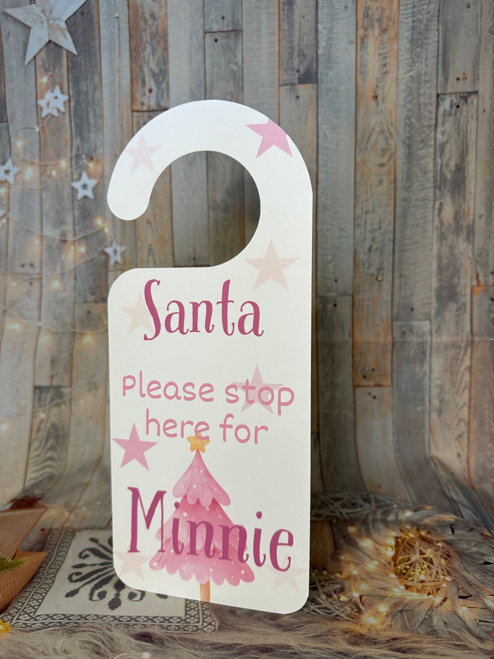 Pink Christmas "Santa Stop Here' Door Hanger- Personalised