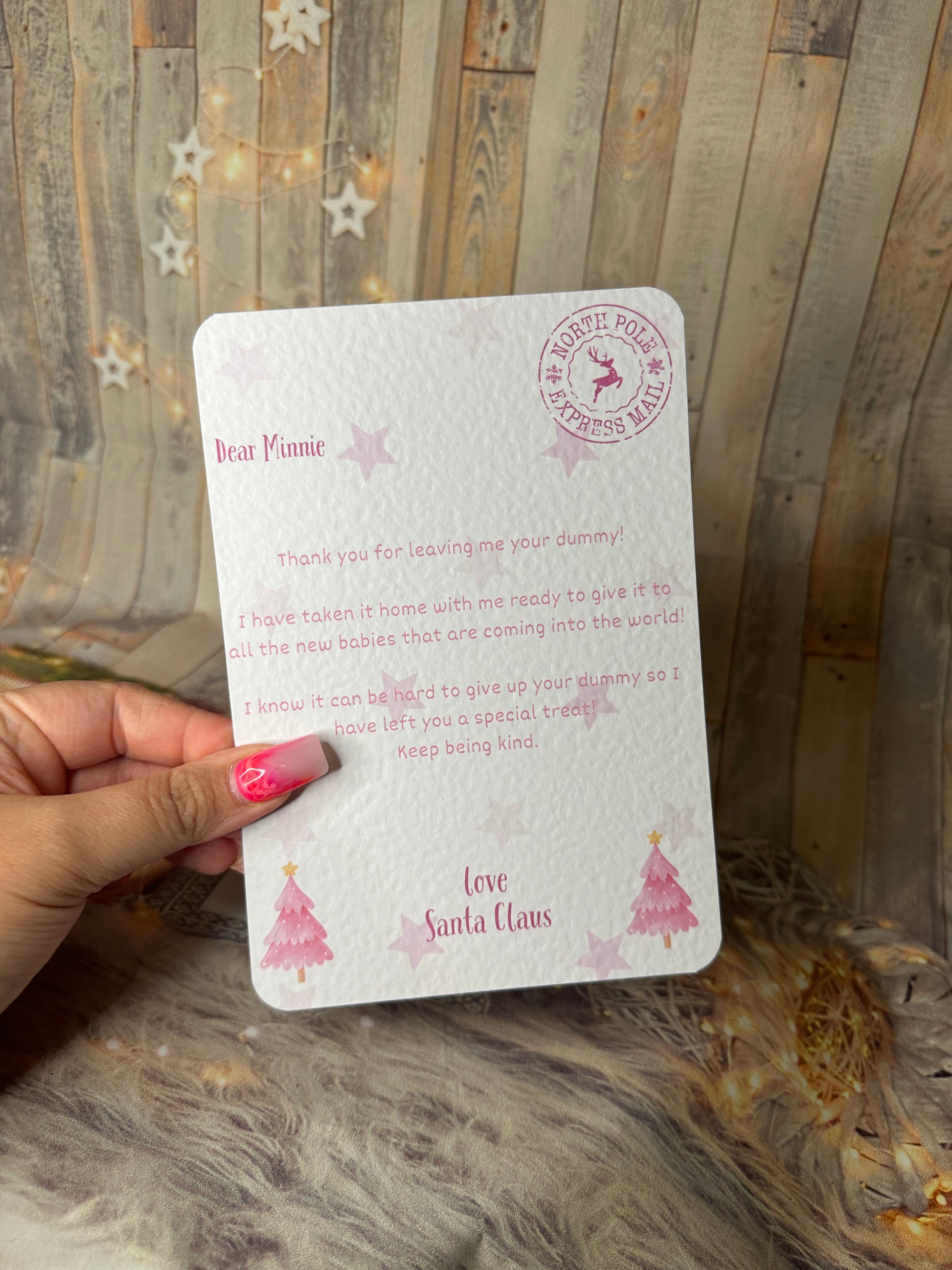 Pink Letter from Santa Thanking The Child For Their Dummy- 5x7, Personalised