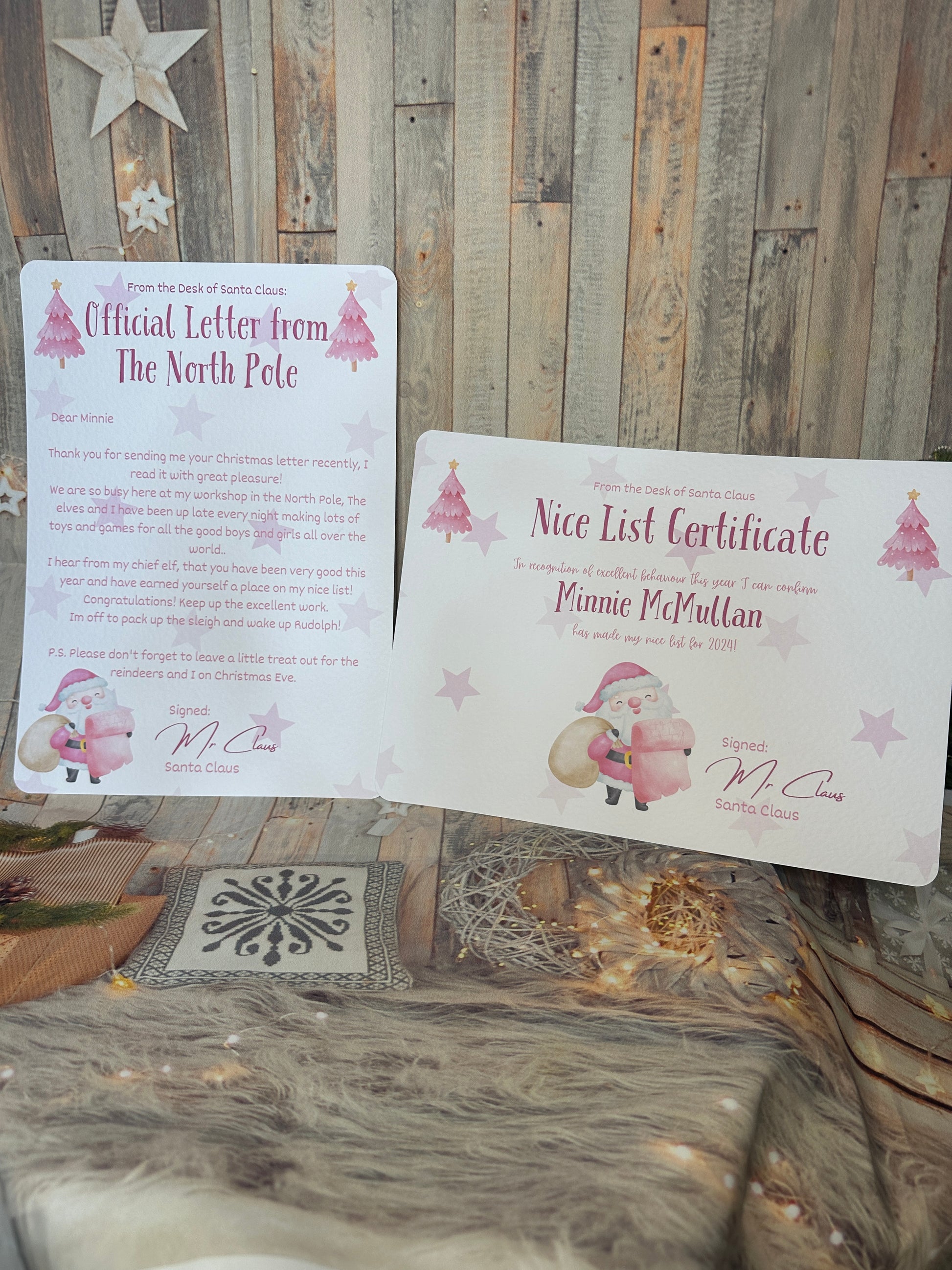 Pink A4 Nice List Certificate and North Pole Letter.