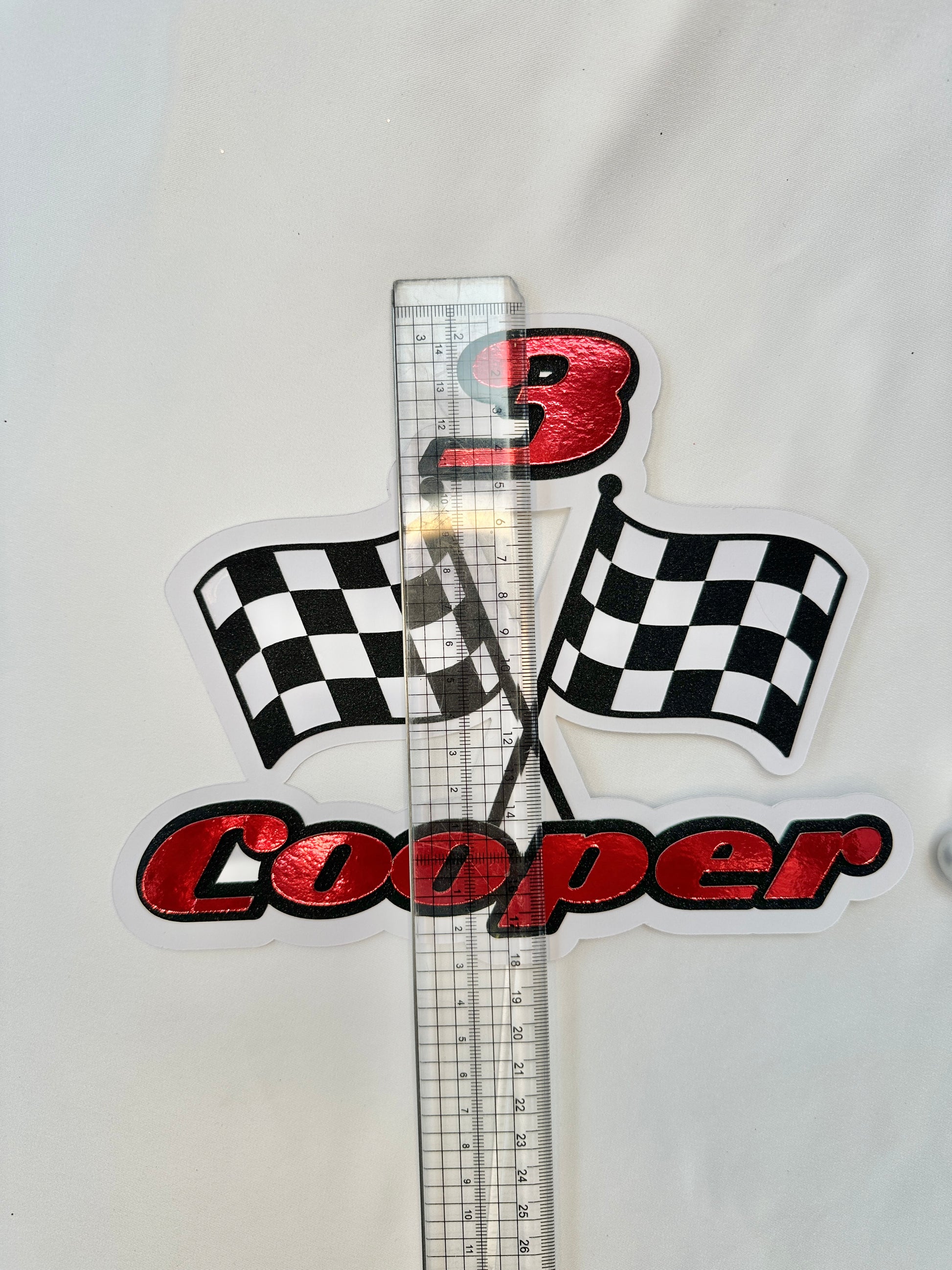 The topper measures 22x18cm but this can also be altered- please message us with your requirements.