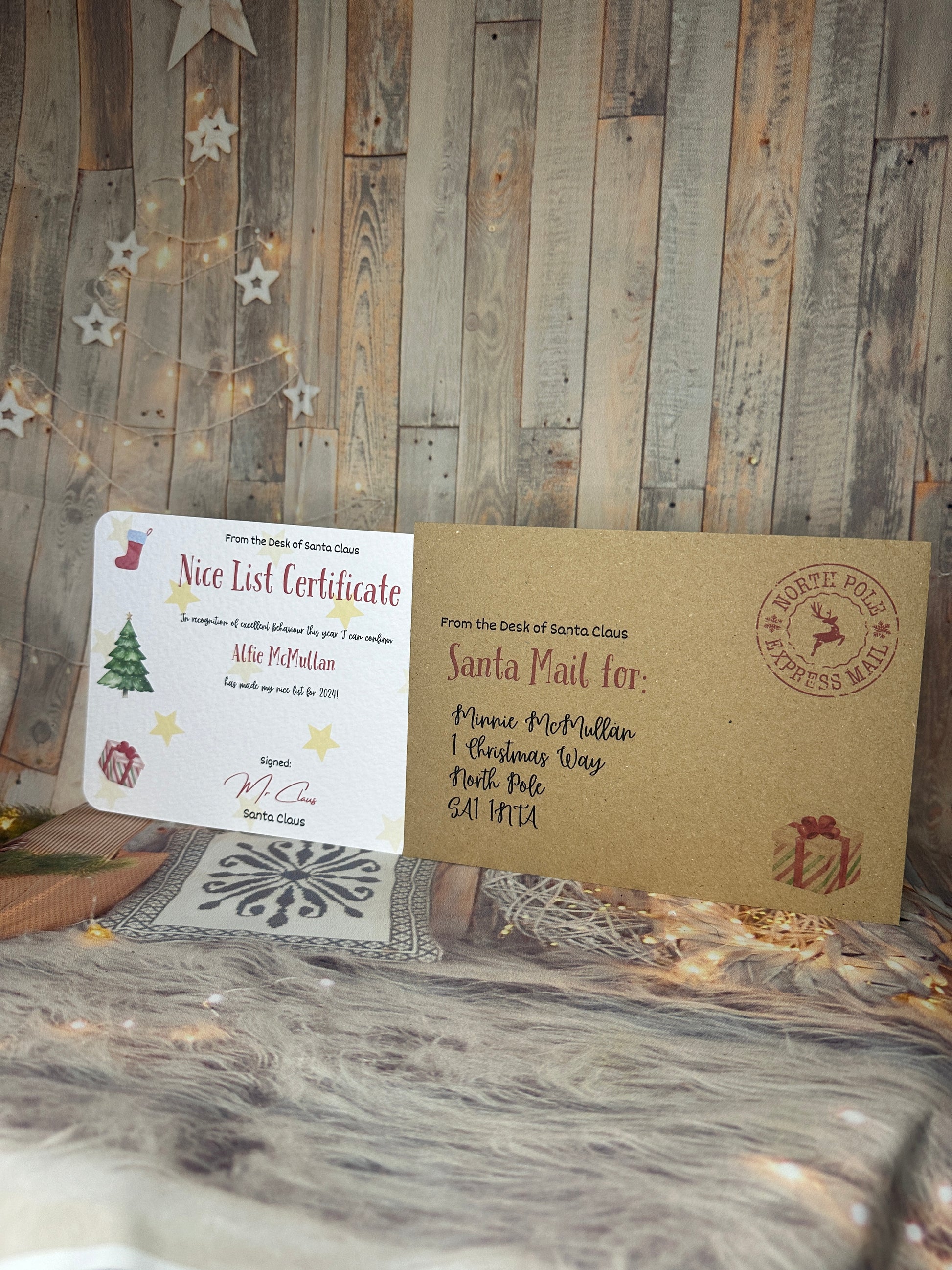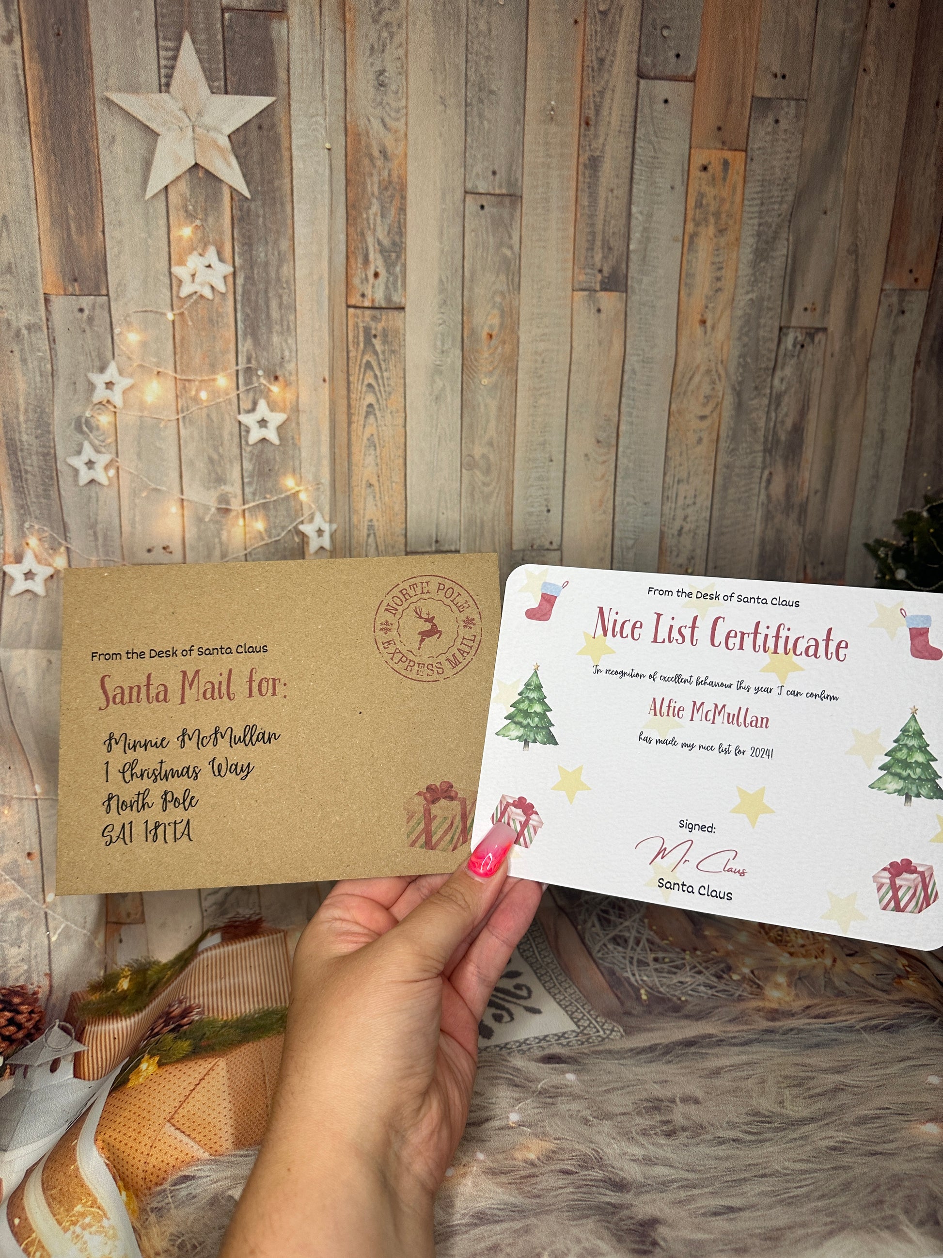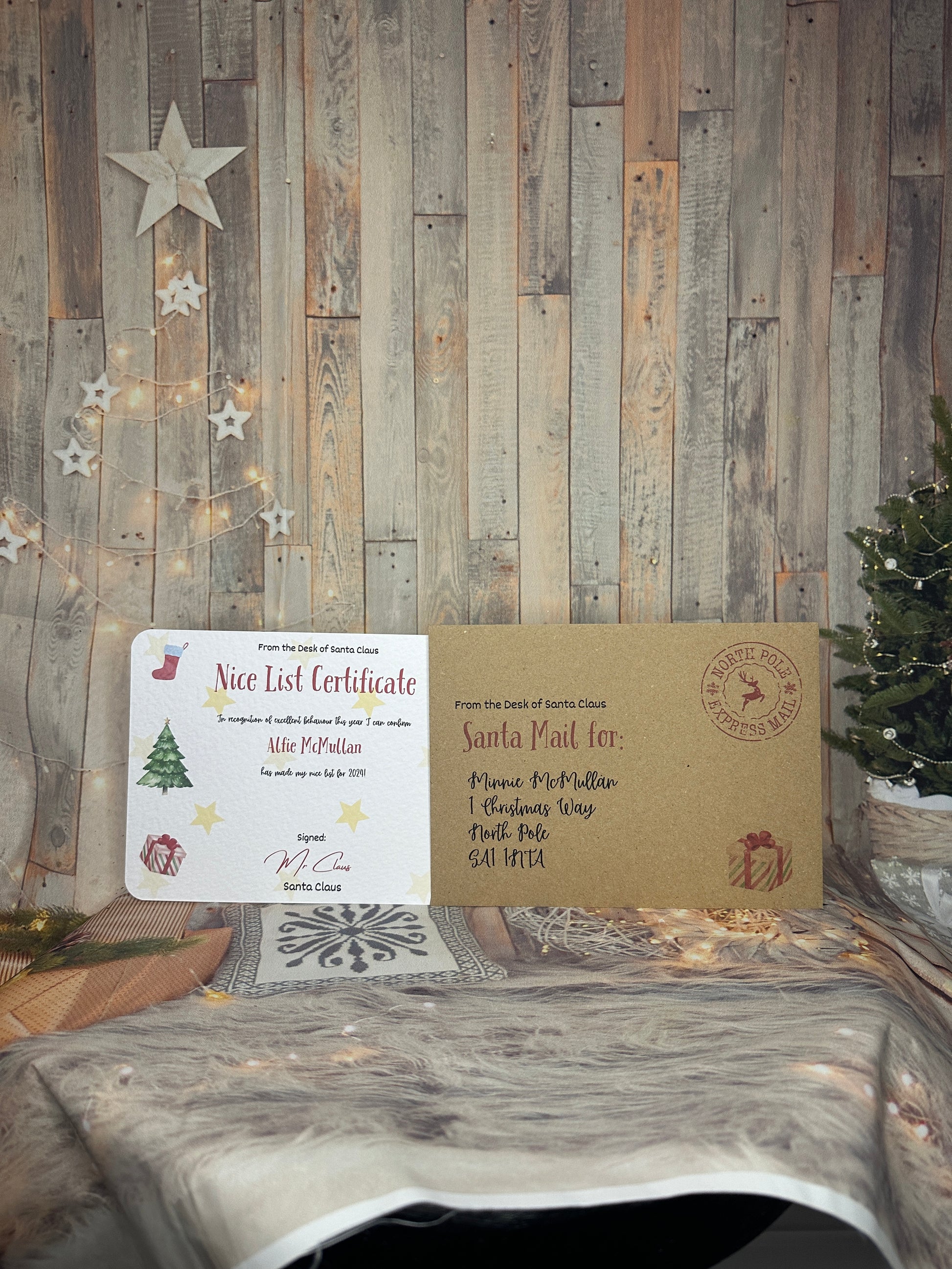 Red Nice List Certificate and Kraft Envelope- 5x7 Size