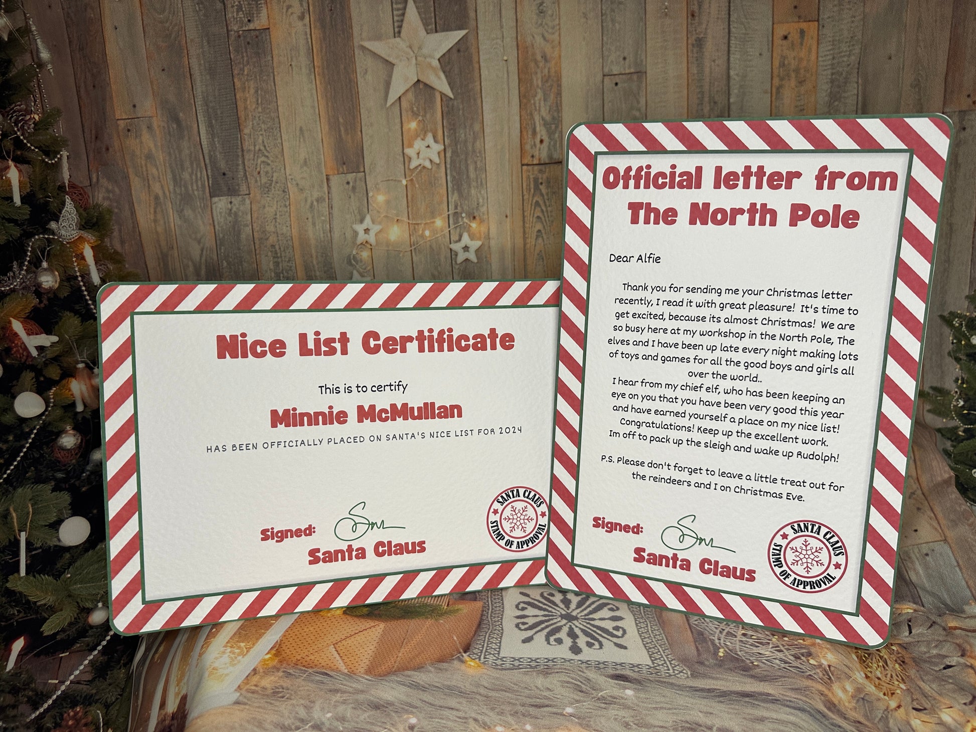 Red Stripe Personalised Nice List Certificate and Letter From The North Pole.