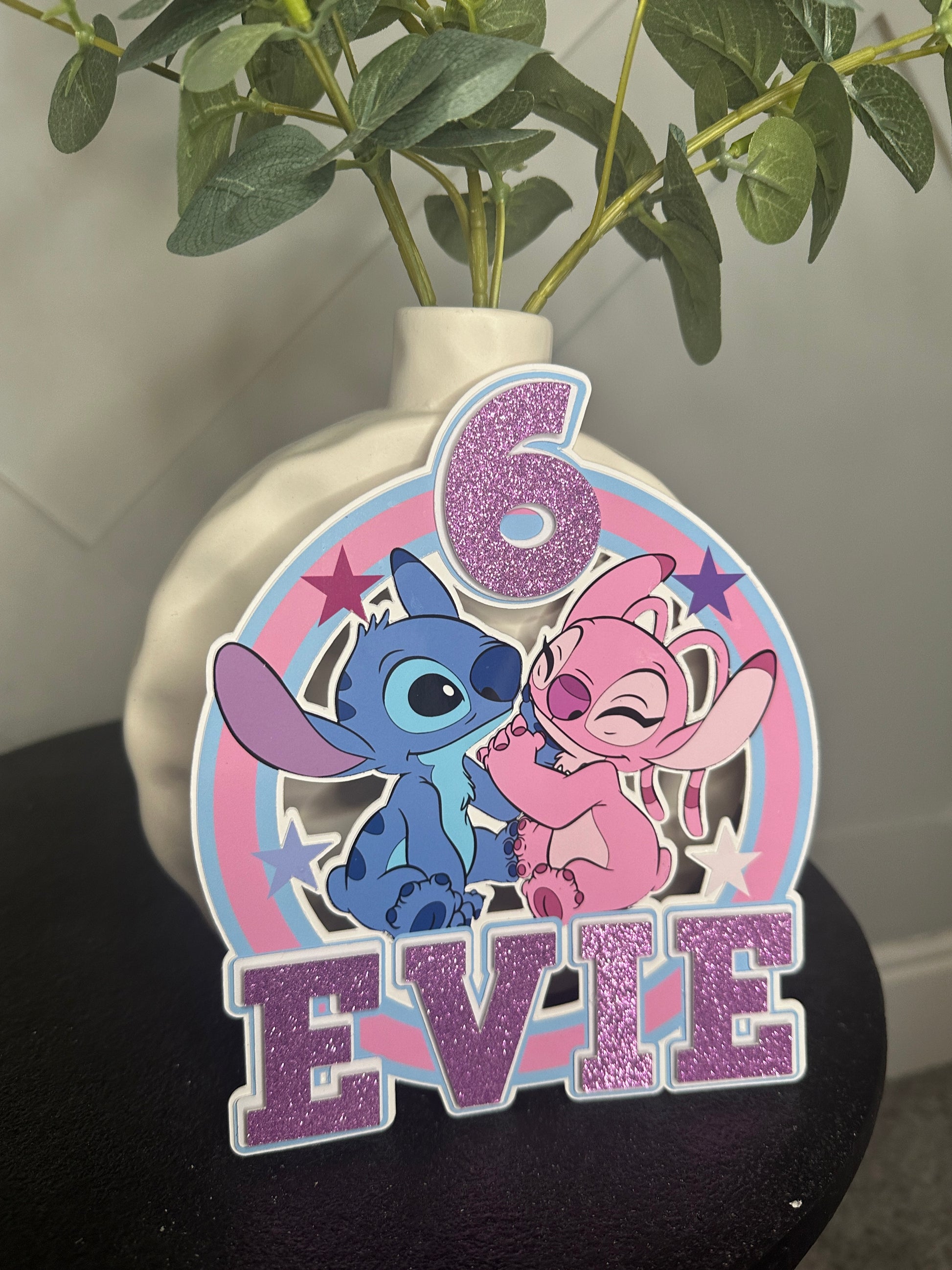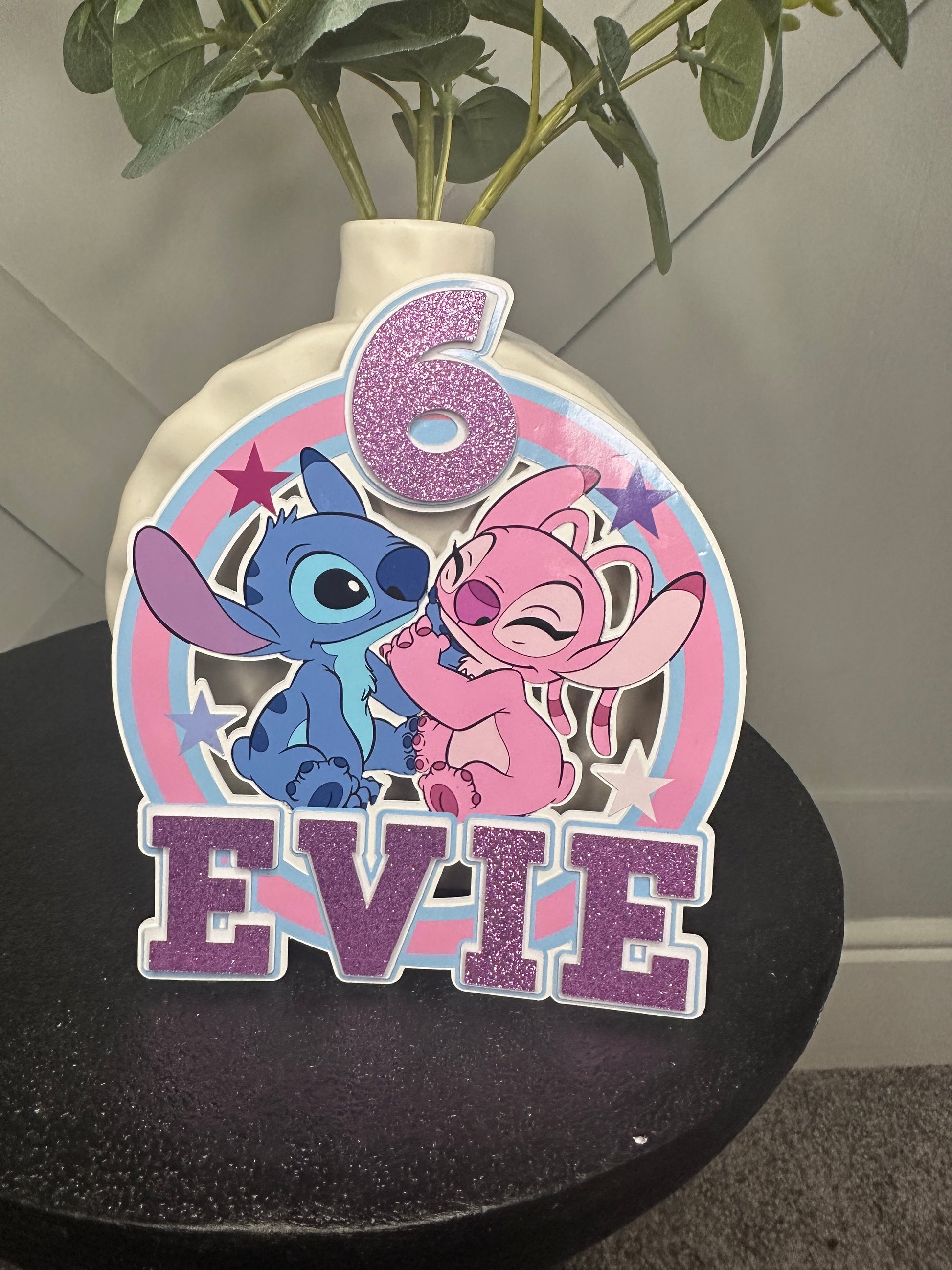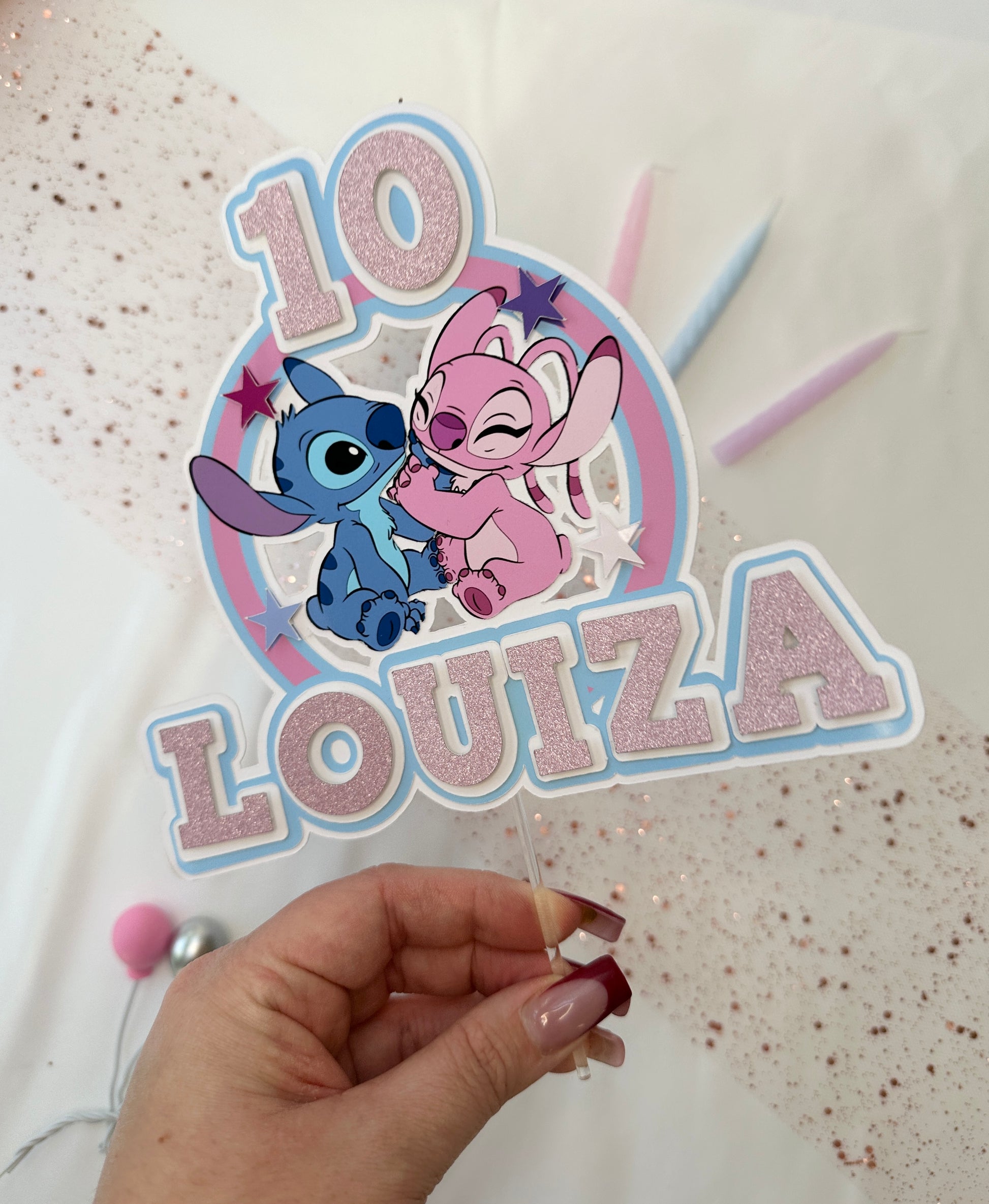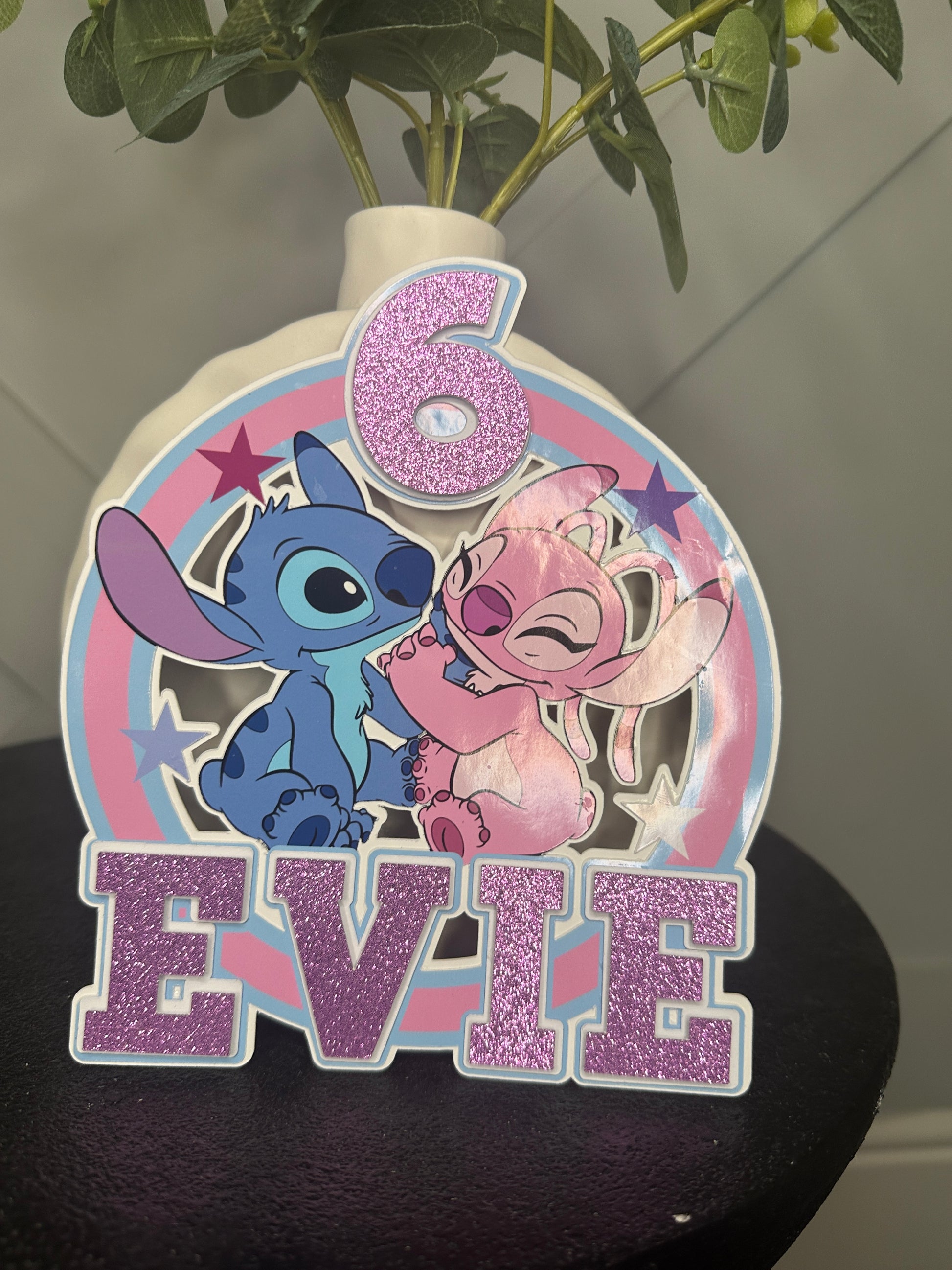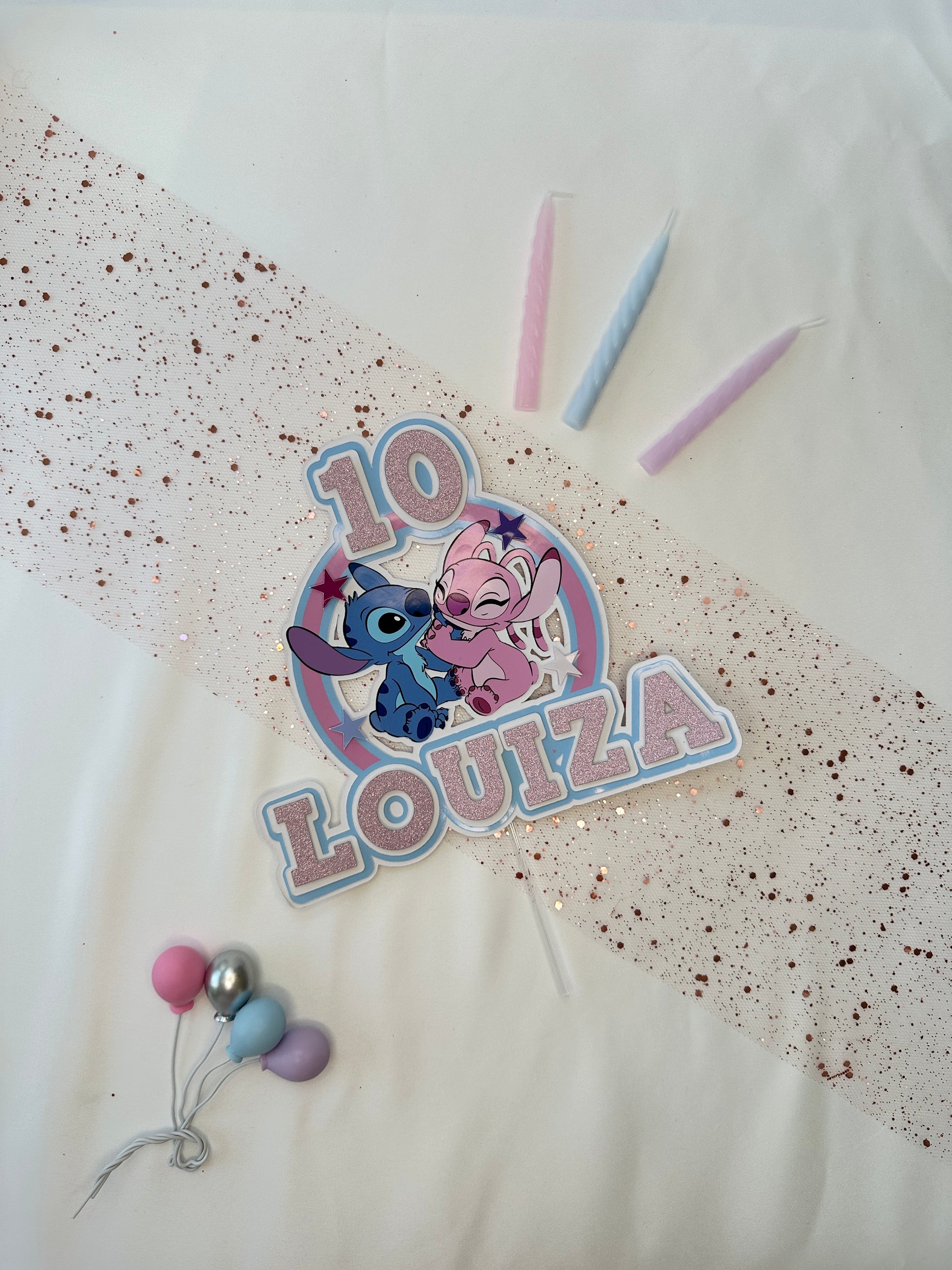 Stitch and Angel Cake Topper, Personalised with Name and Age