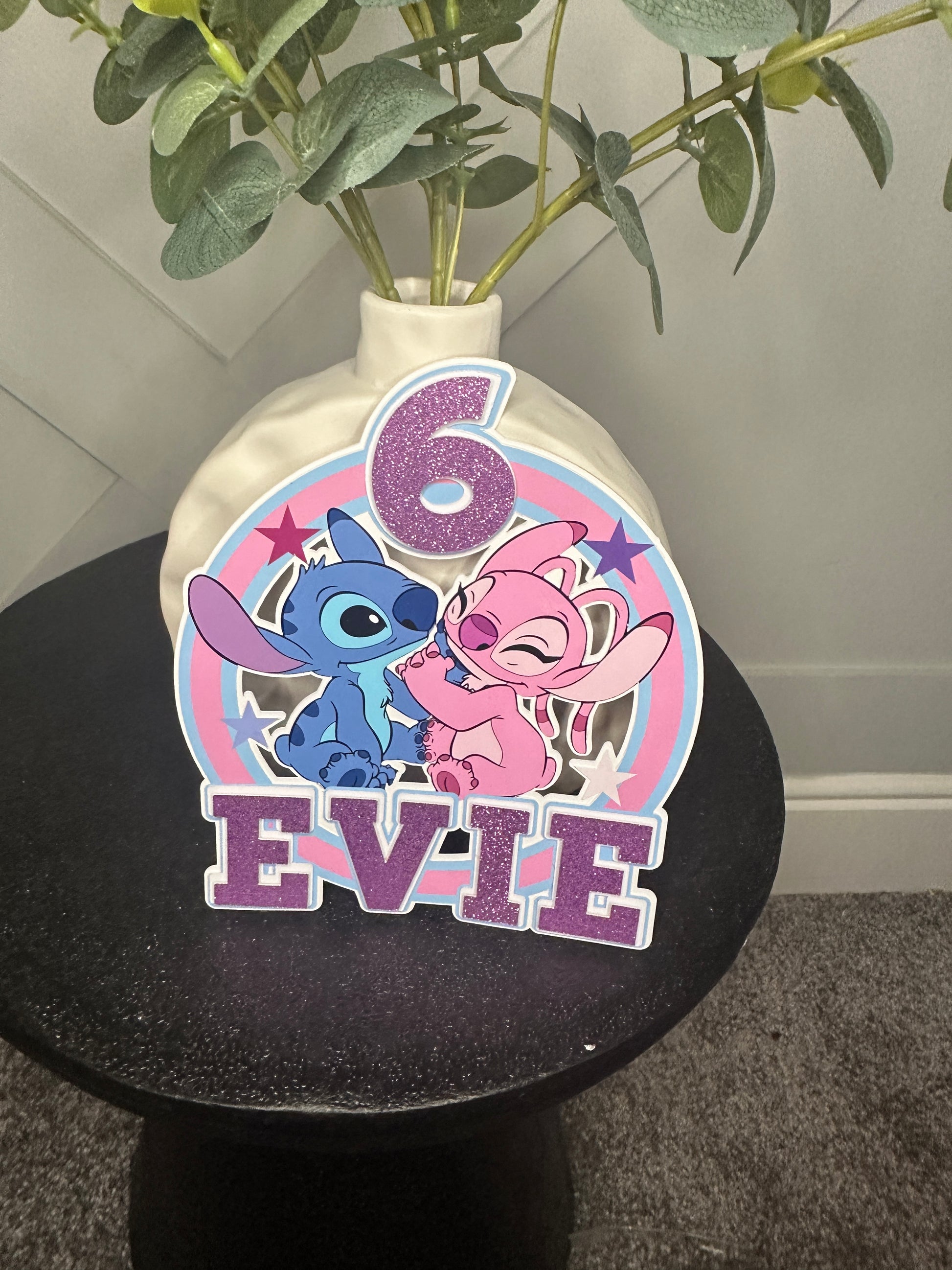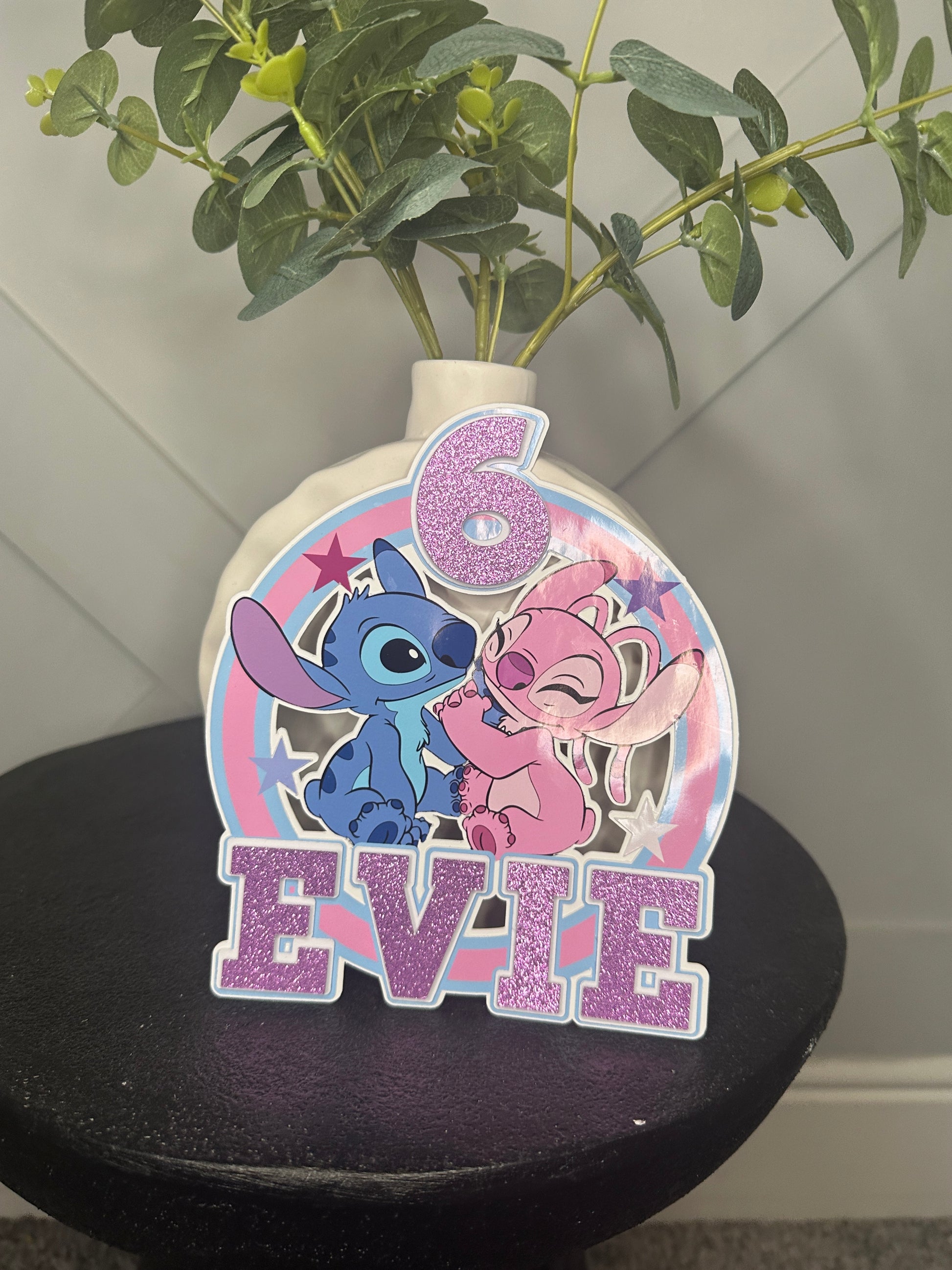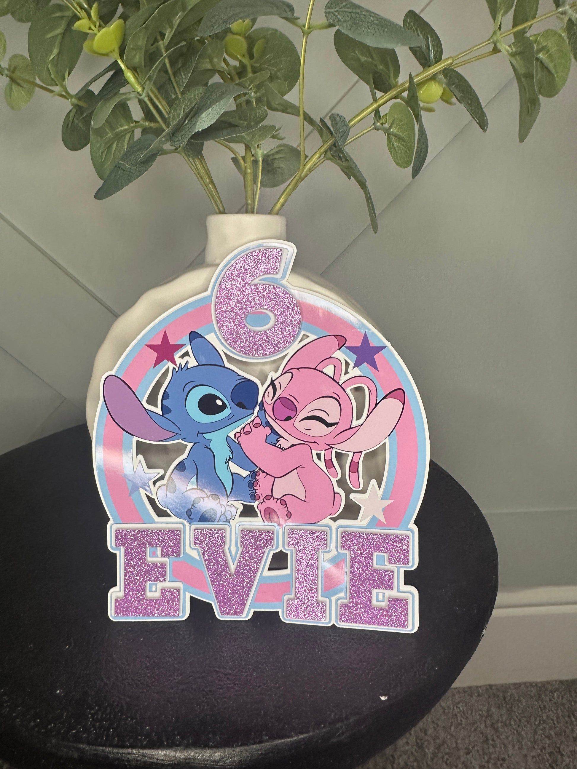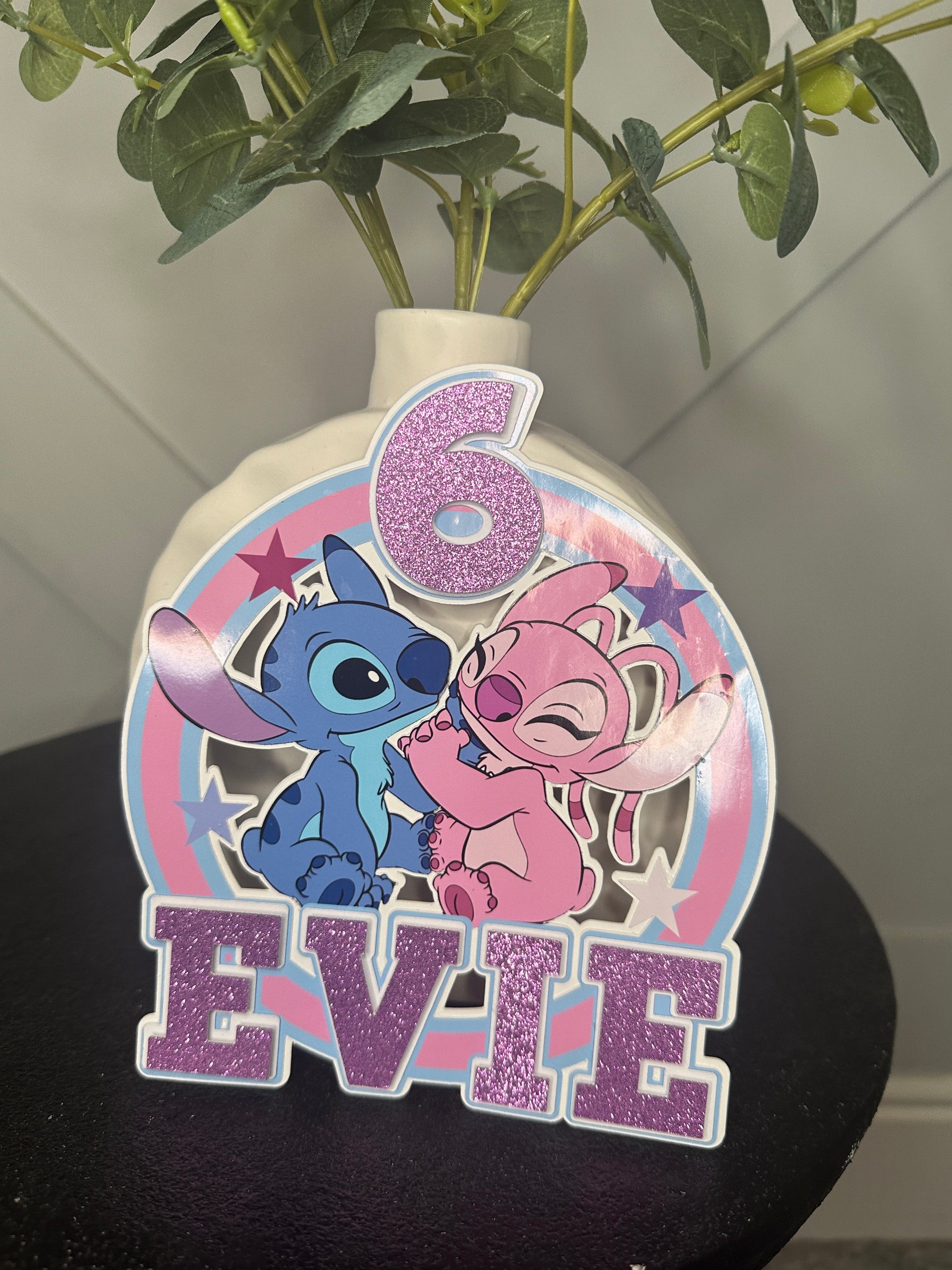 Stitch and Angel Cake Topper, Personalised with Name and Age