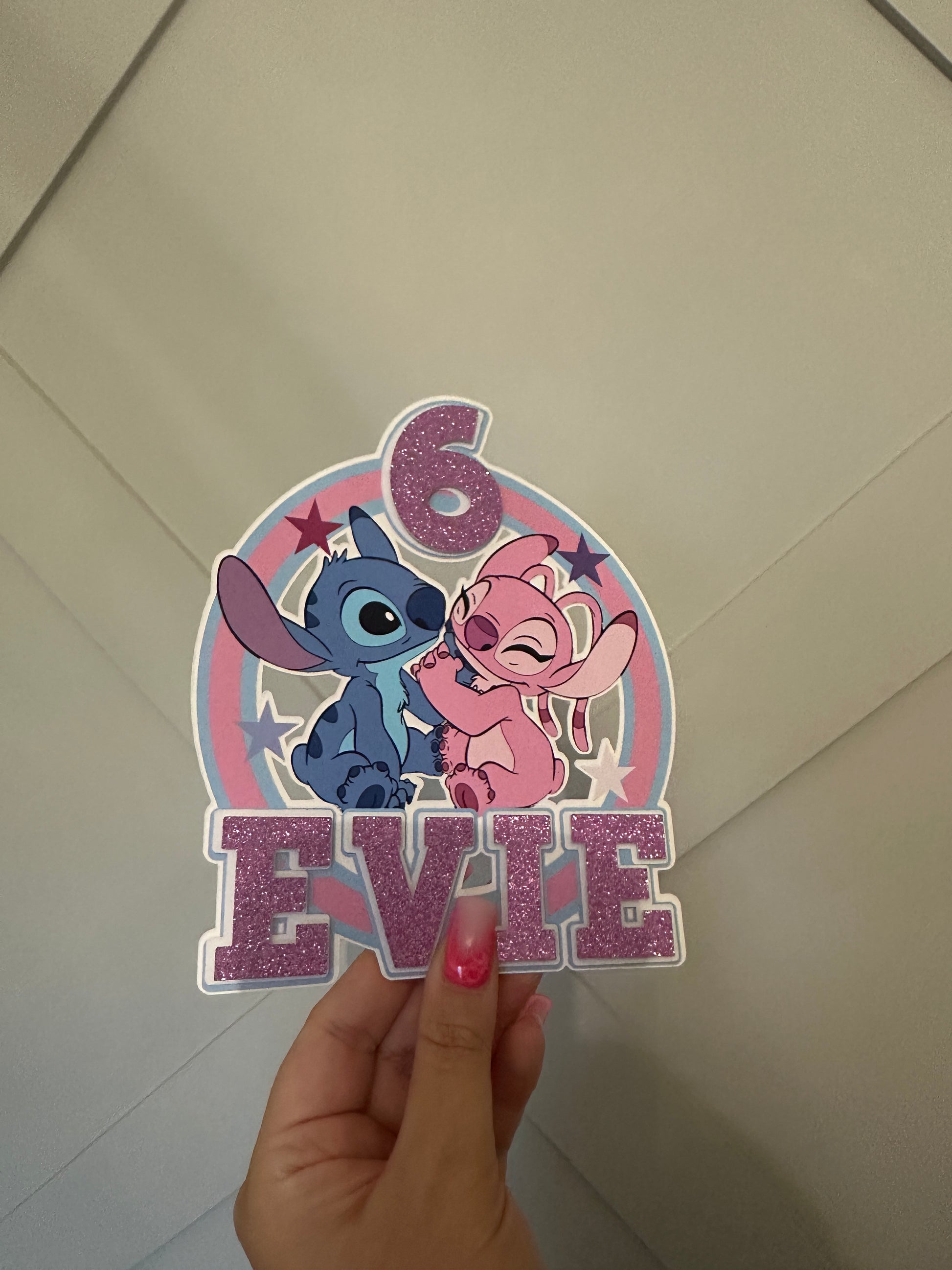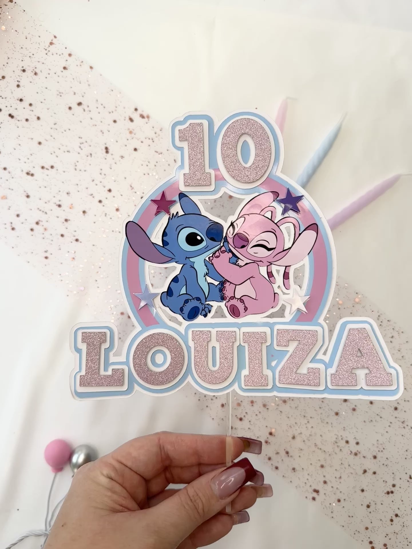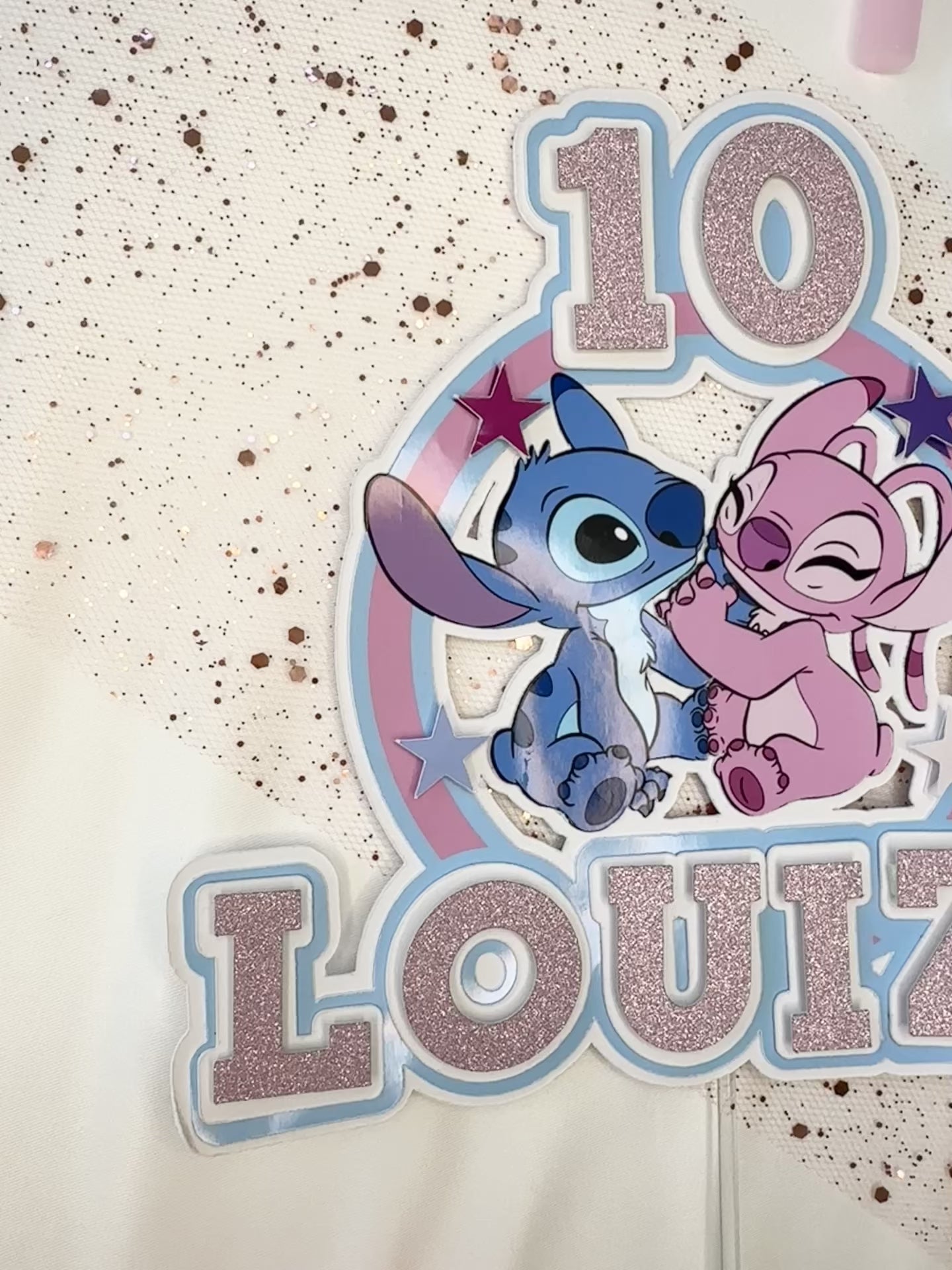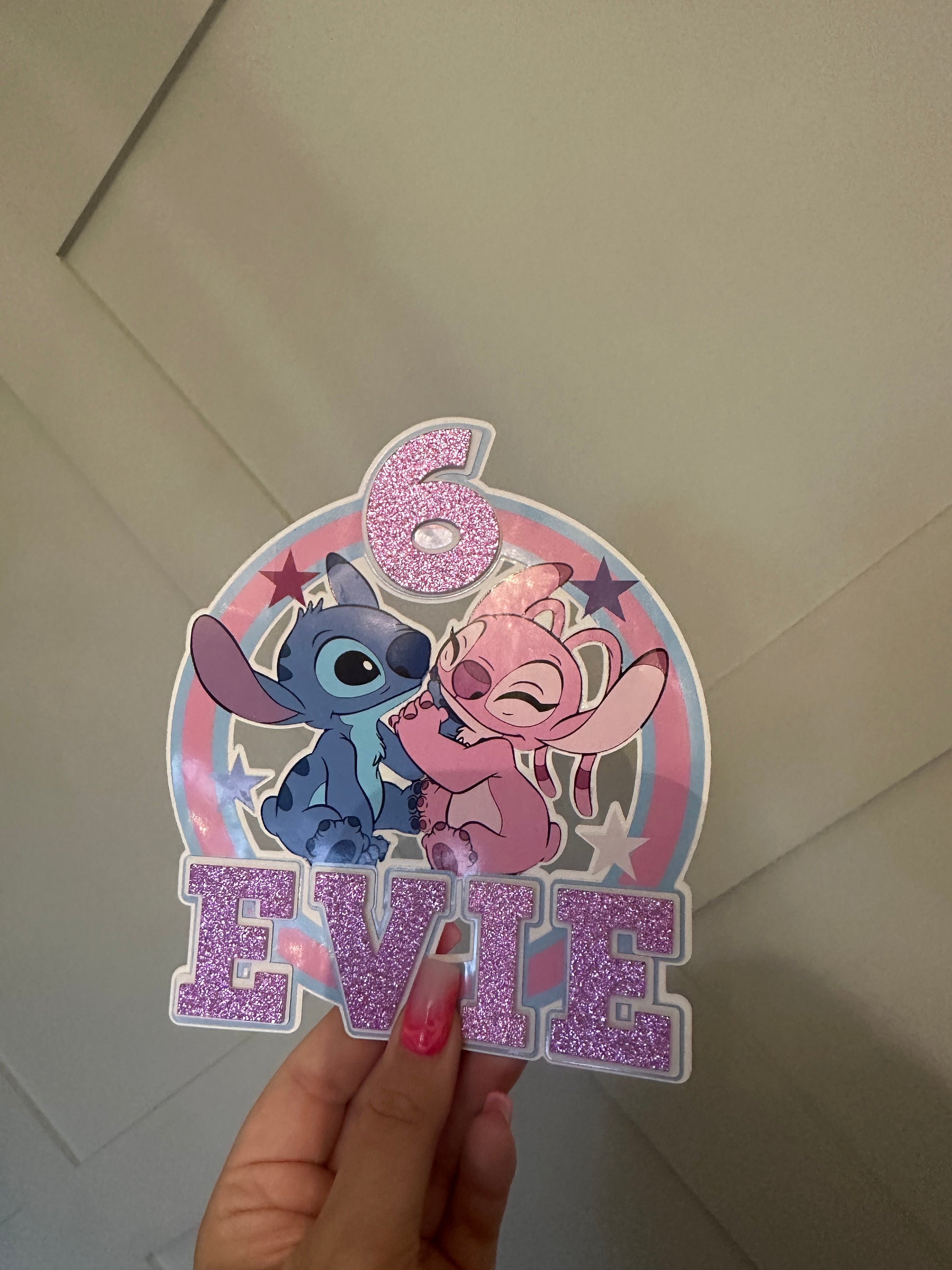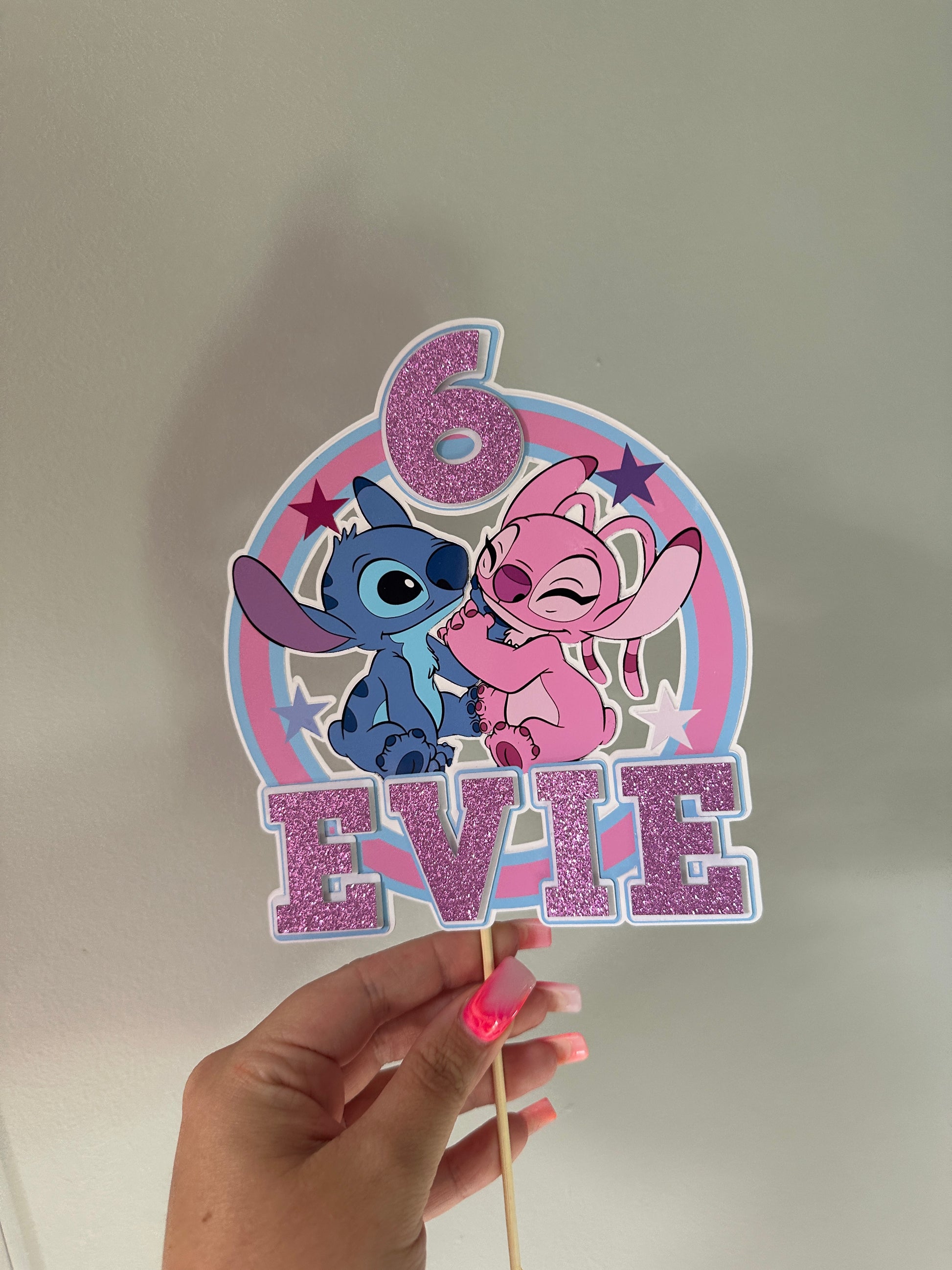Stitch and Angel Cake Topper, Personalised with Name and Age