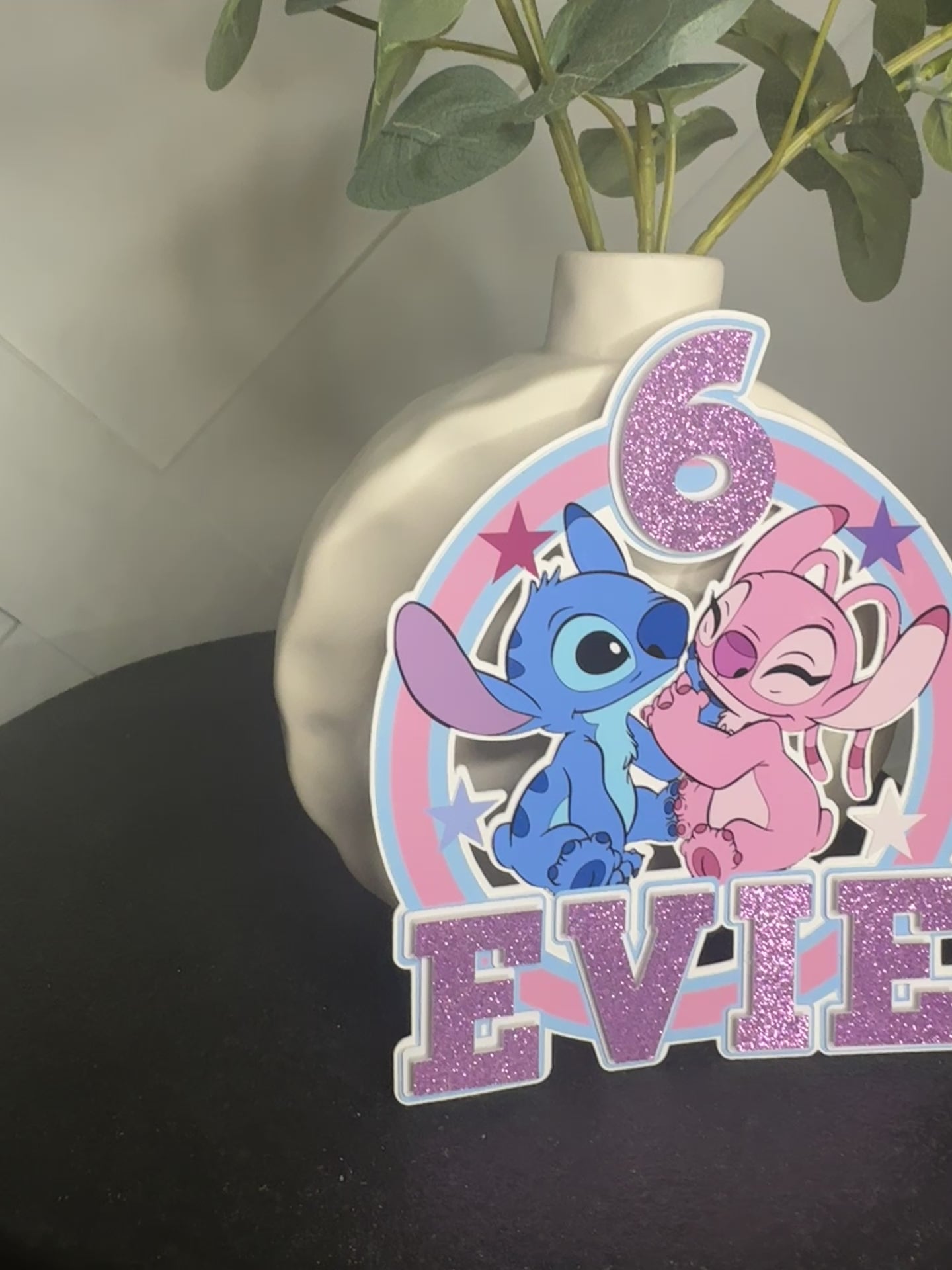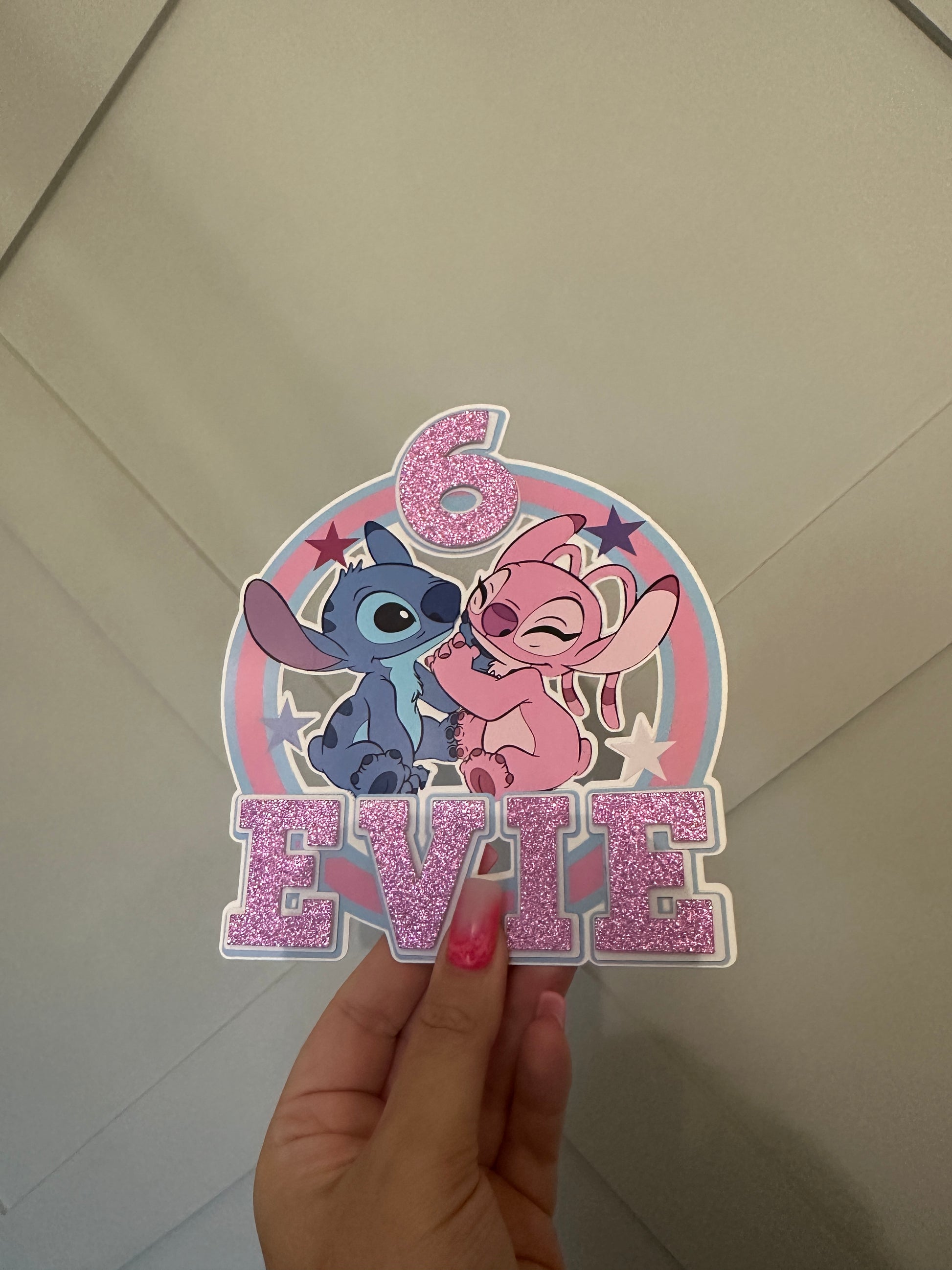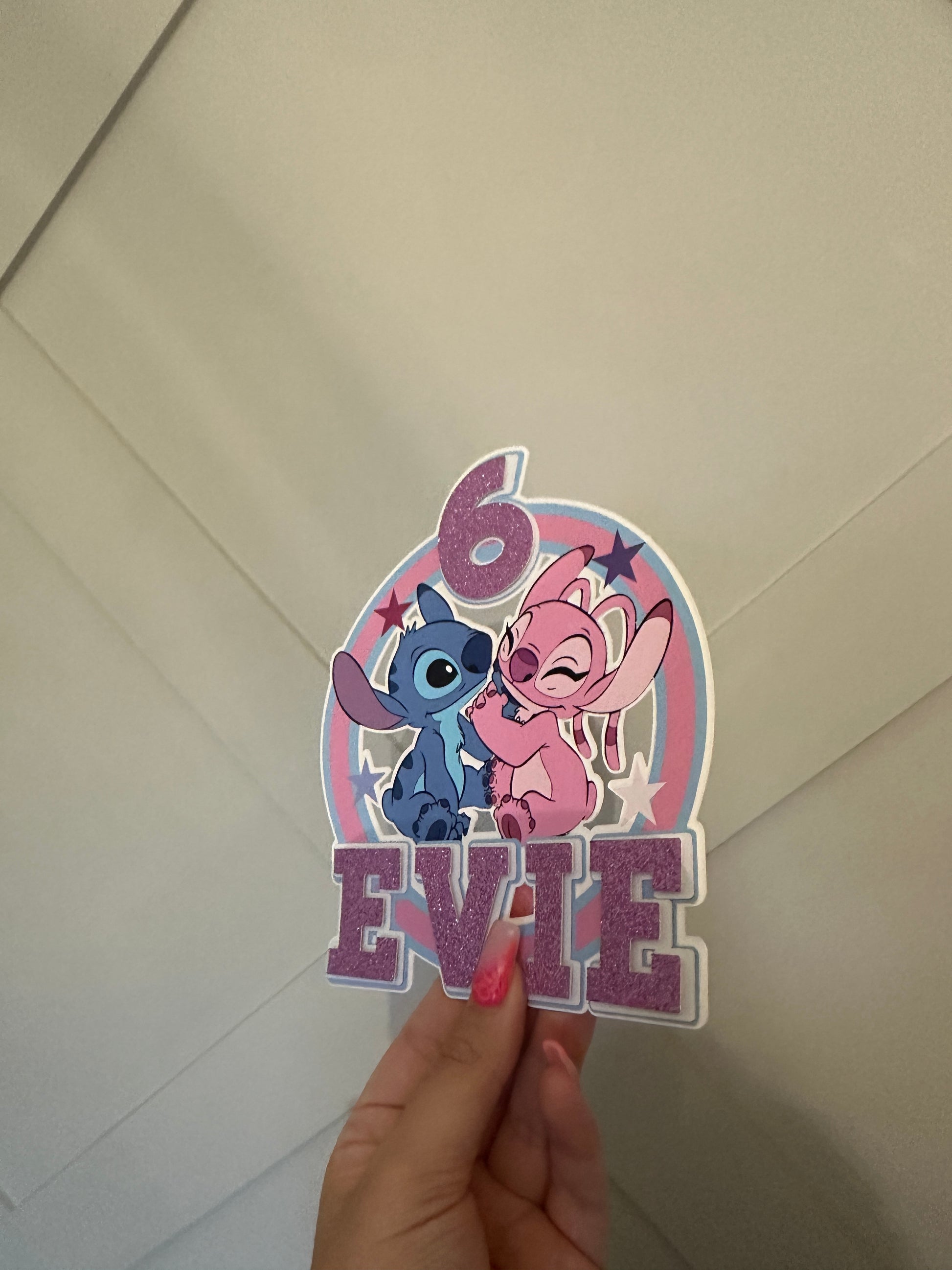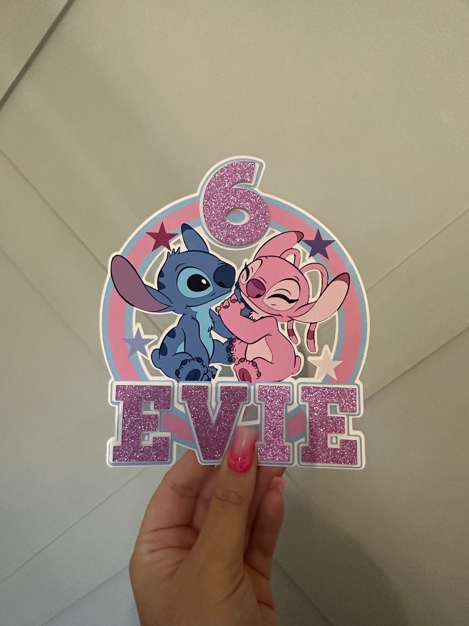 Stitch and Angel Cake Topper, Personalised with Name and Age
