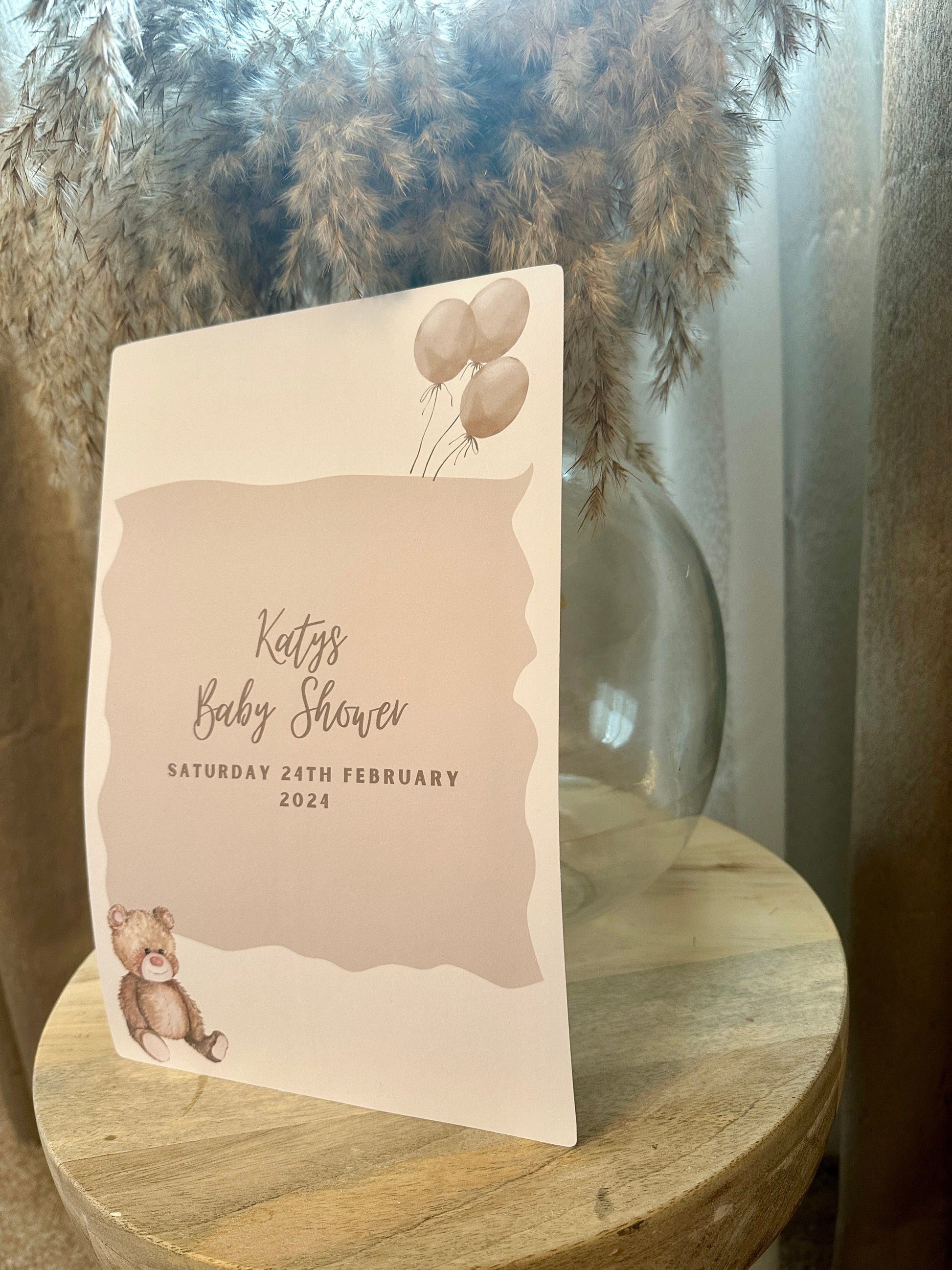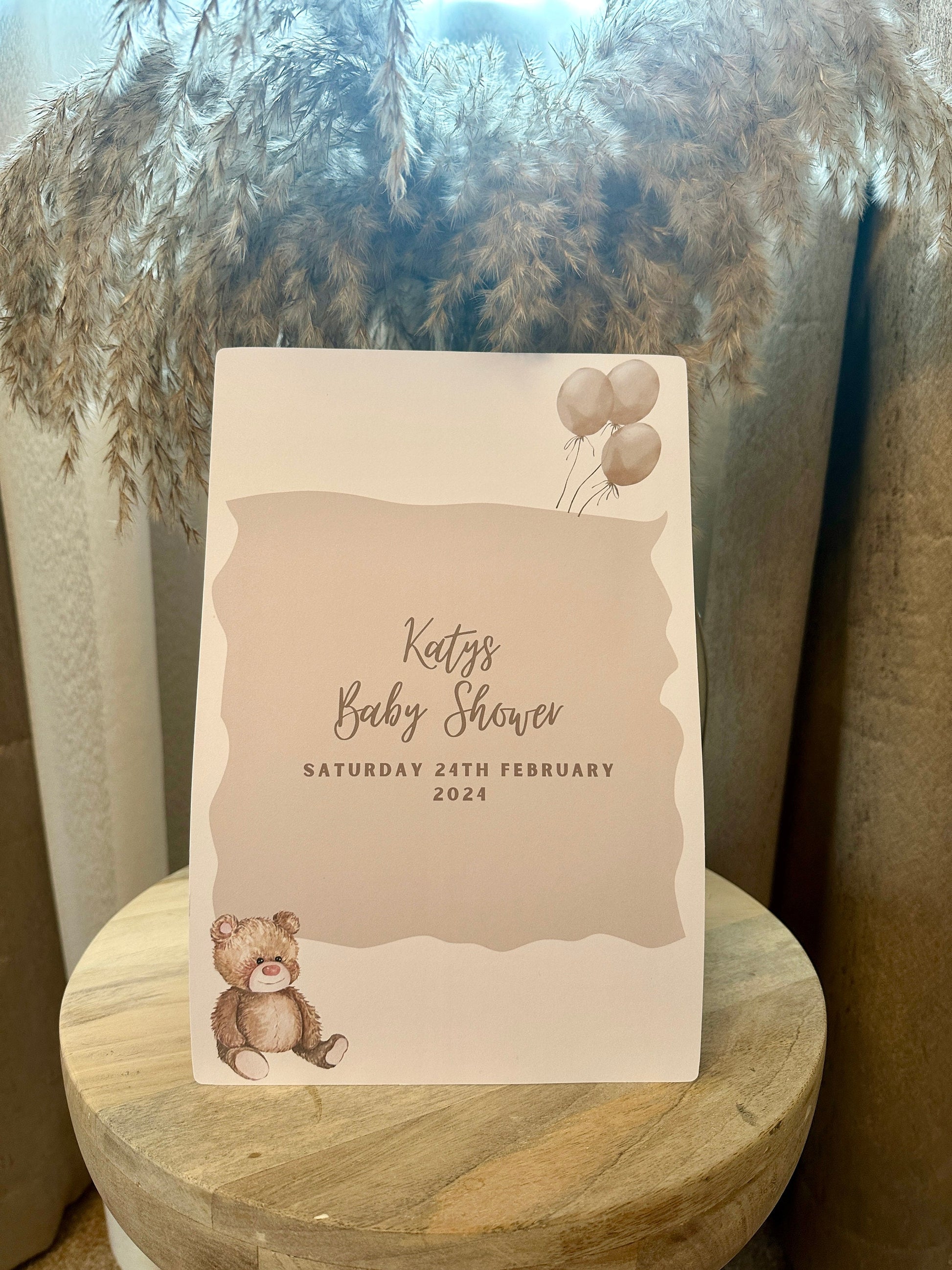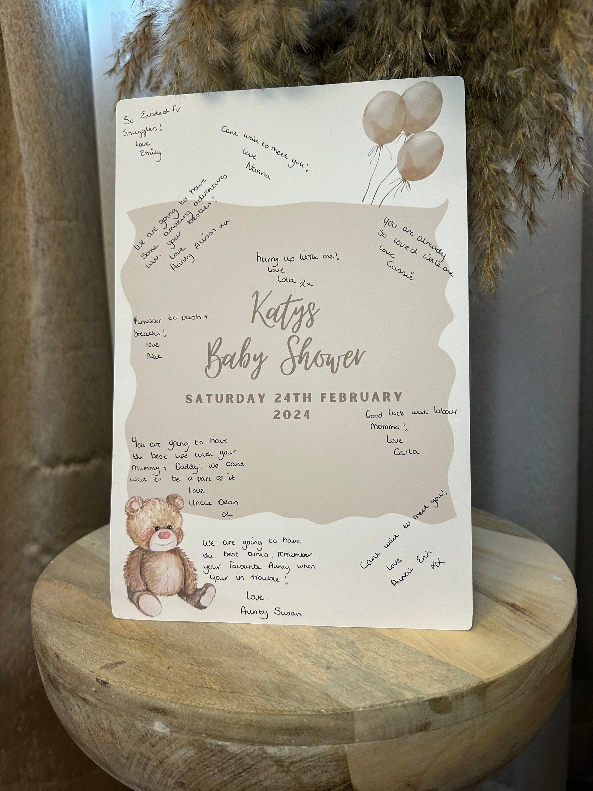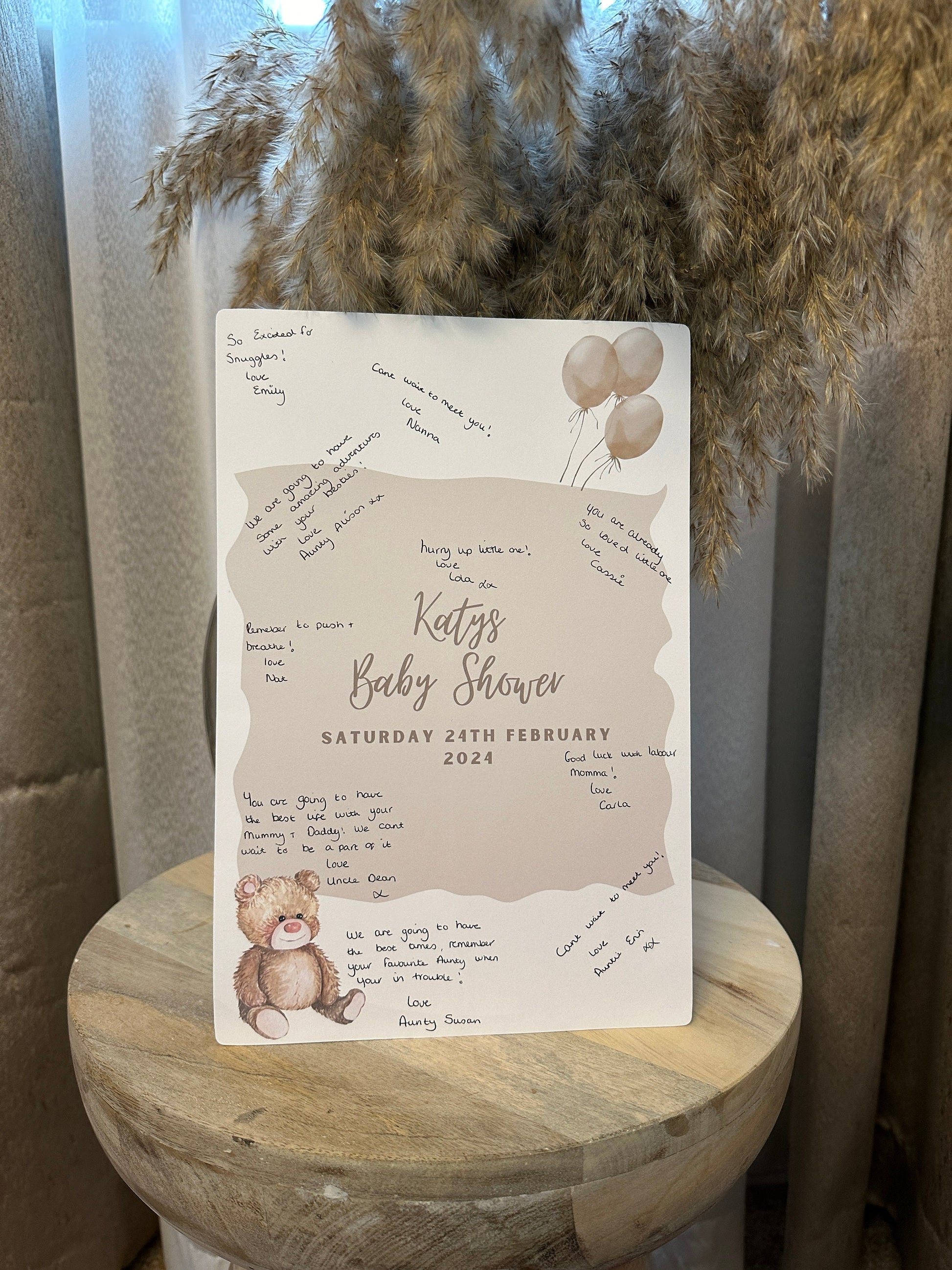 Personalised with the mum or dad to-be's name and the date of the shower there is plenty of space around for guests to sign their name or write a short message.