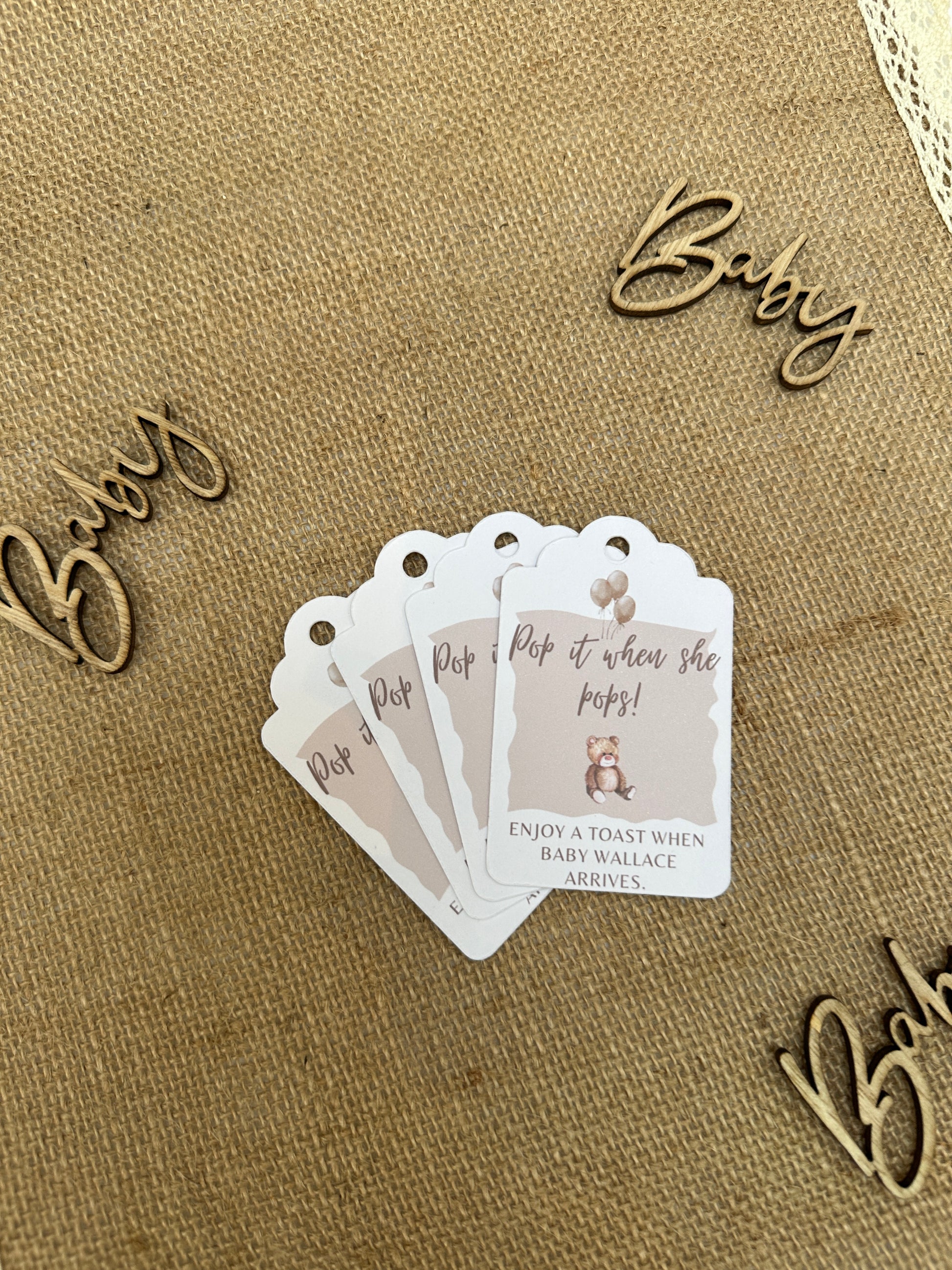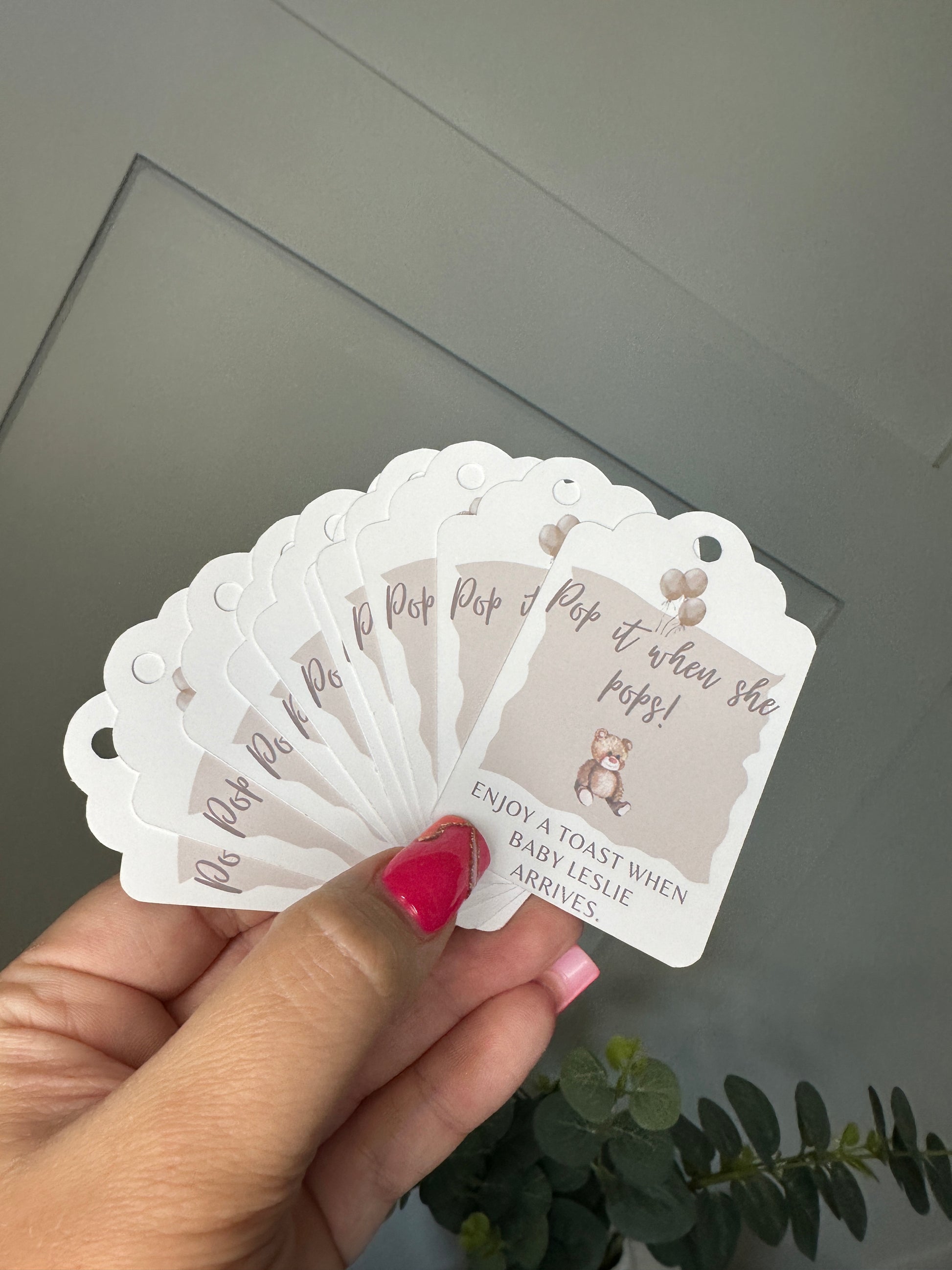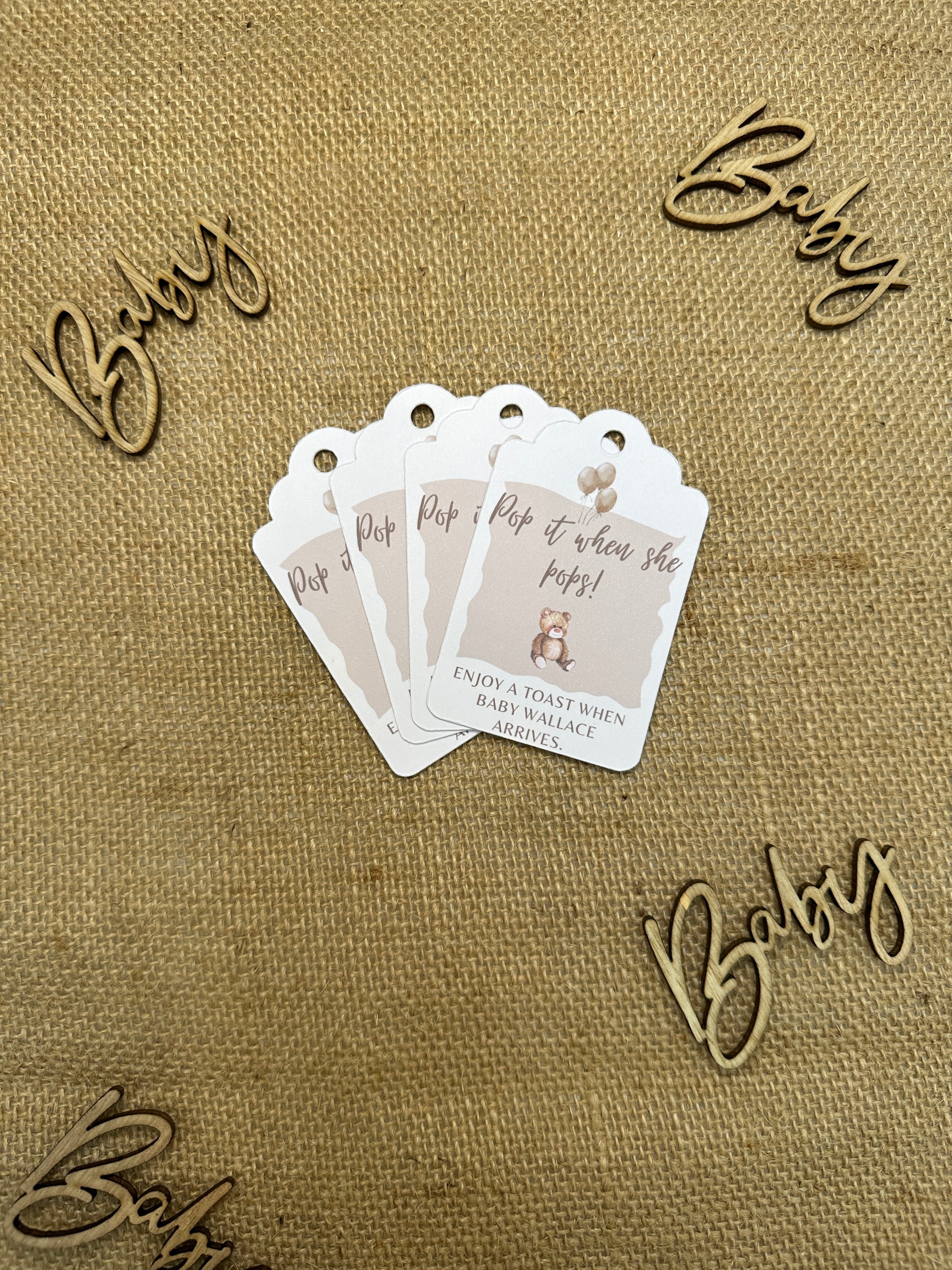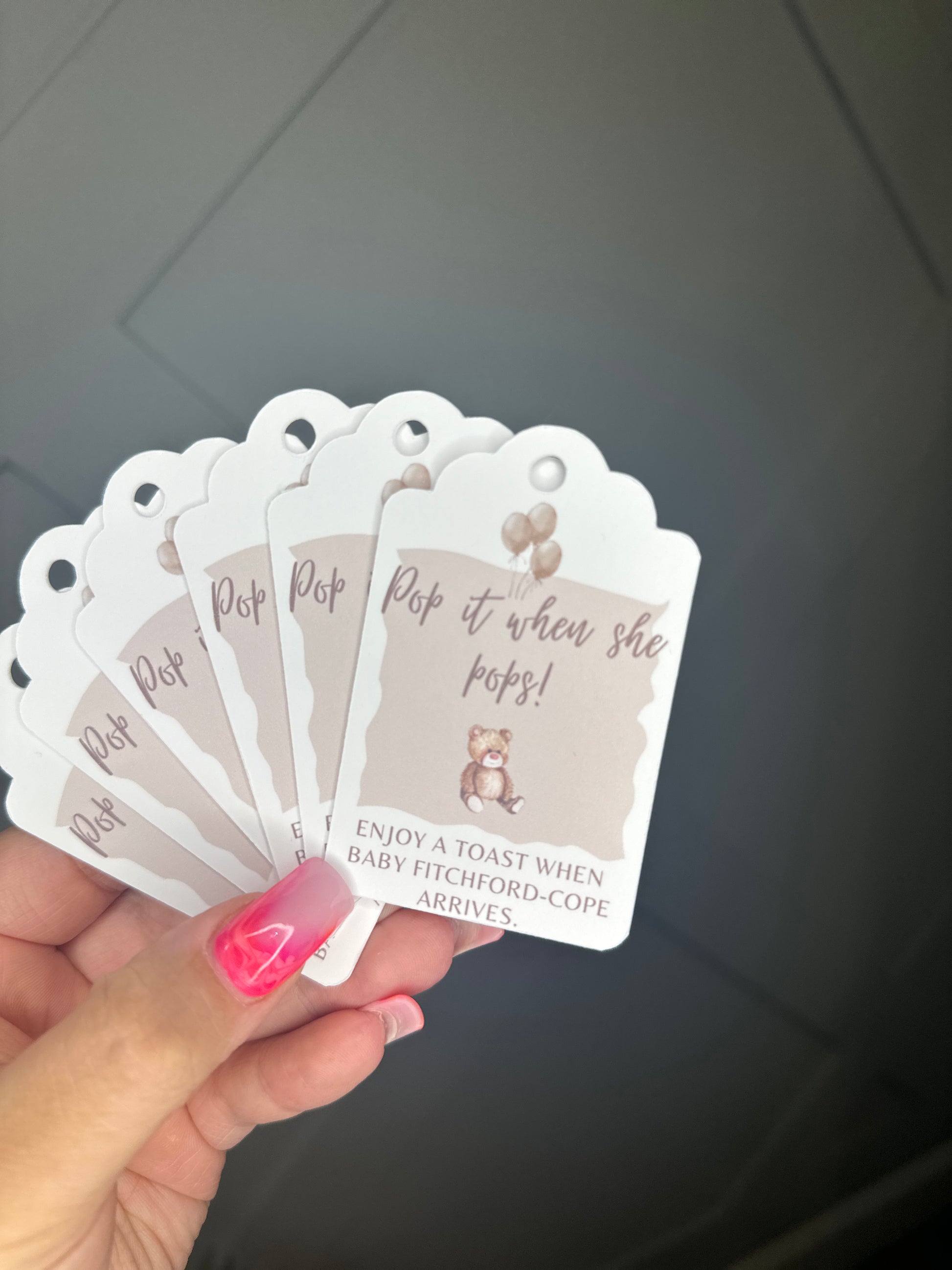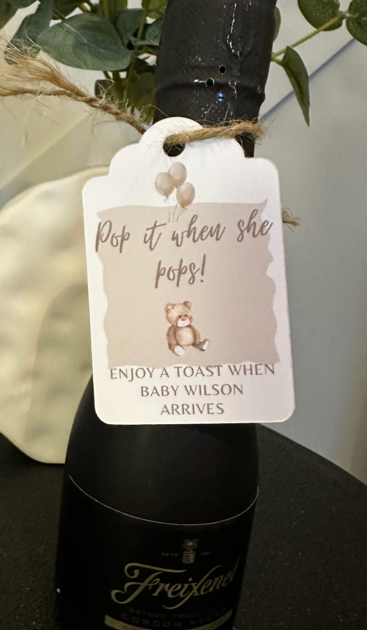 Teddy Bear 'Pop It When She Pops' Personalised Bottle & Gift Tags- Pack of 10