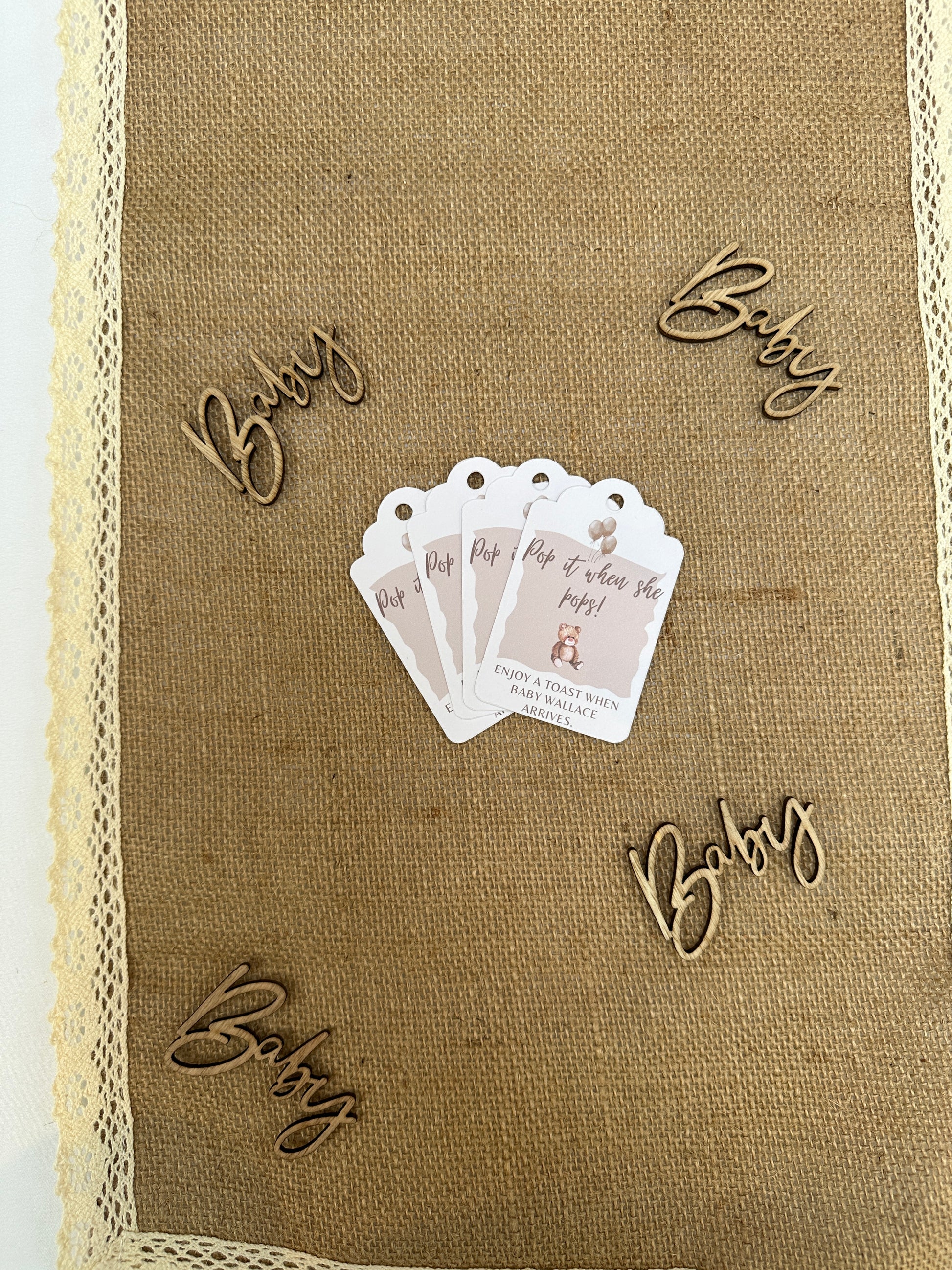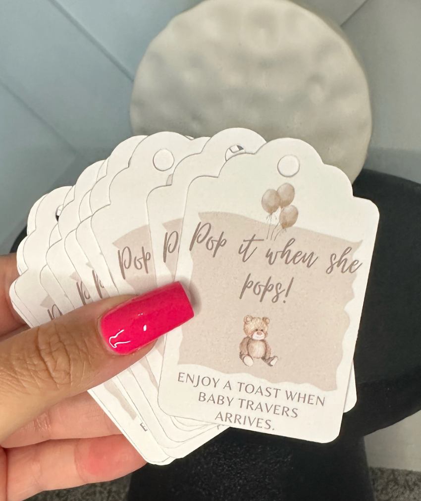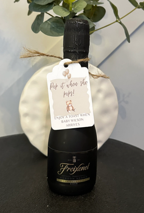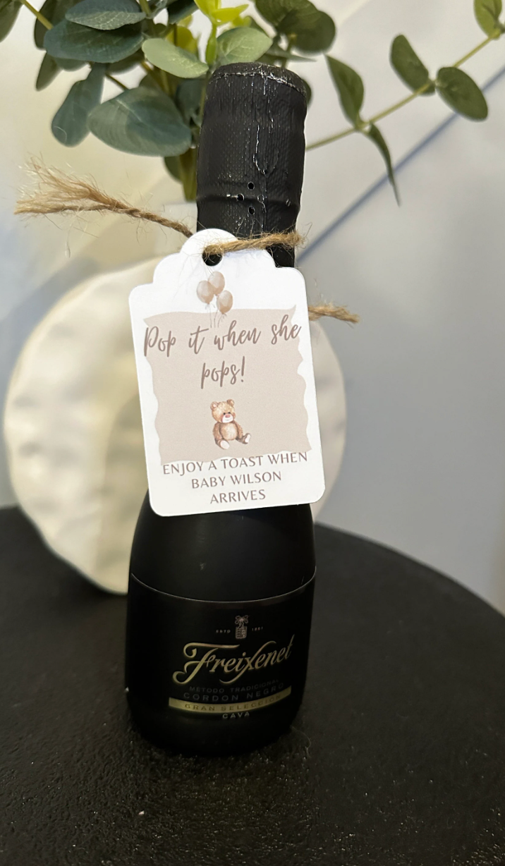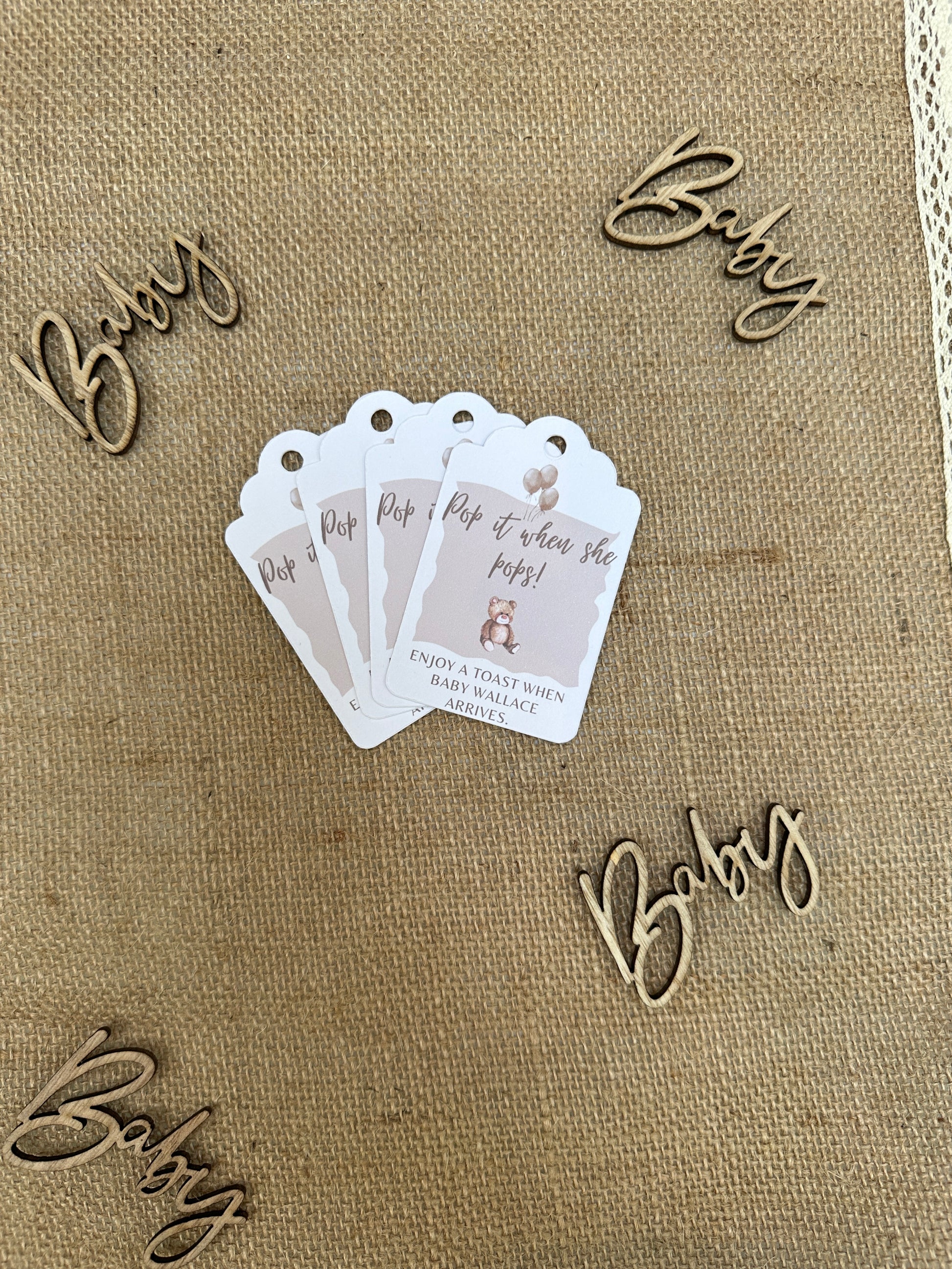 Teddy Bear 'Pop It When She Pops' Personalised Bottle & Gift Tags- Pack of 10