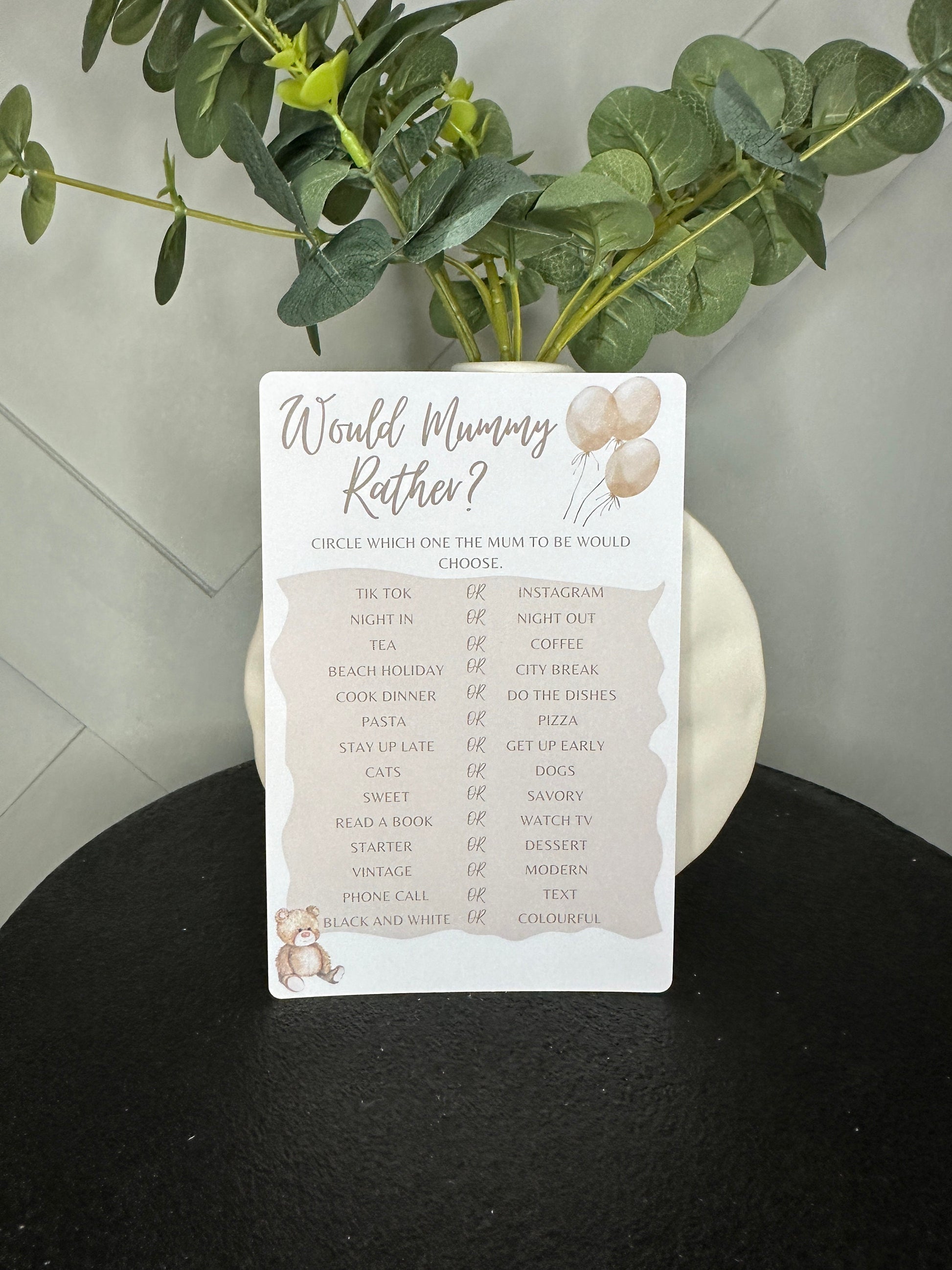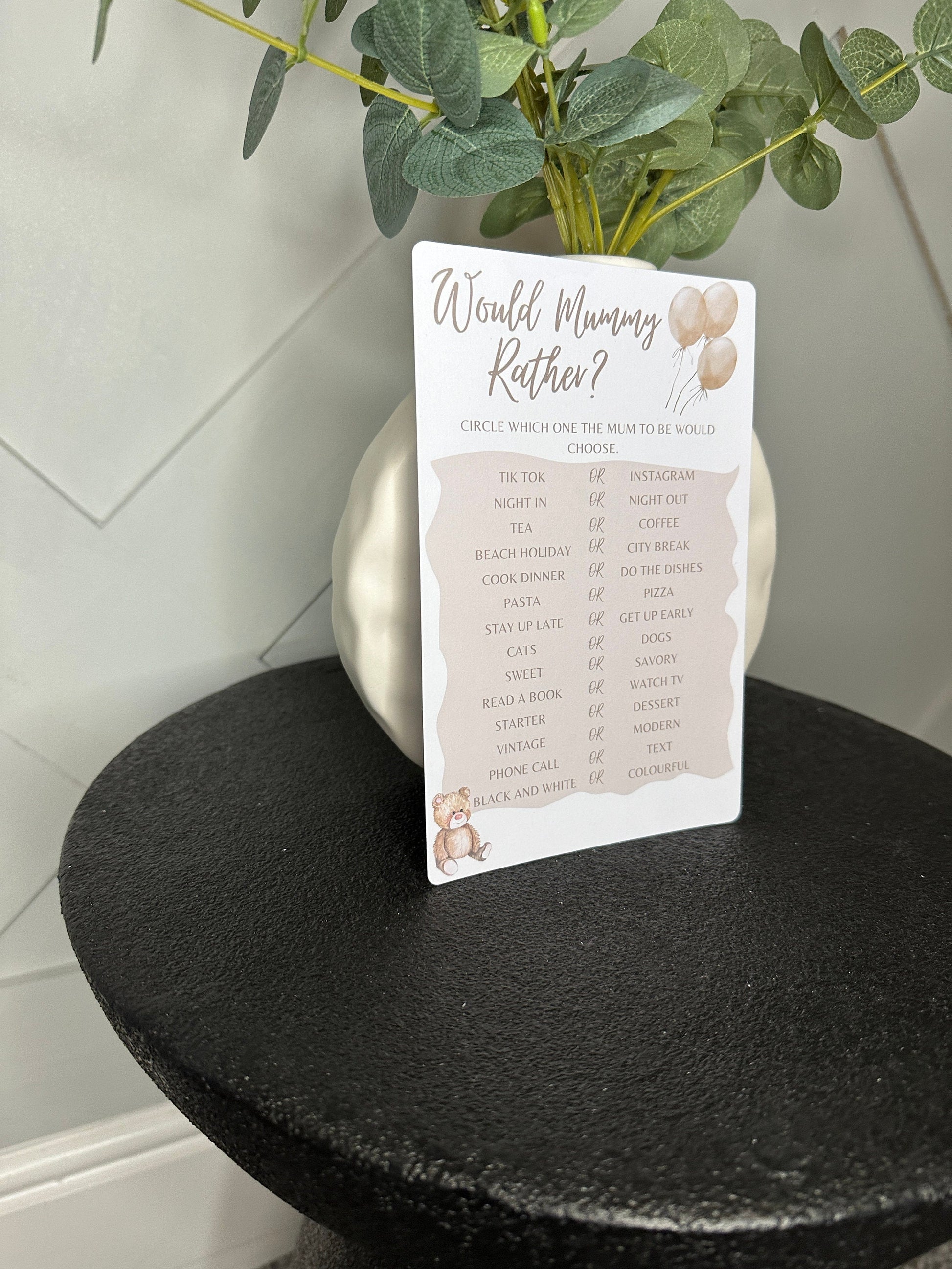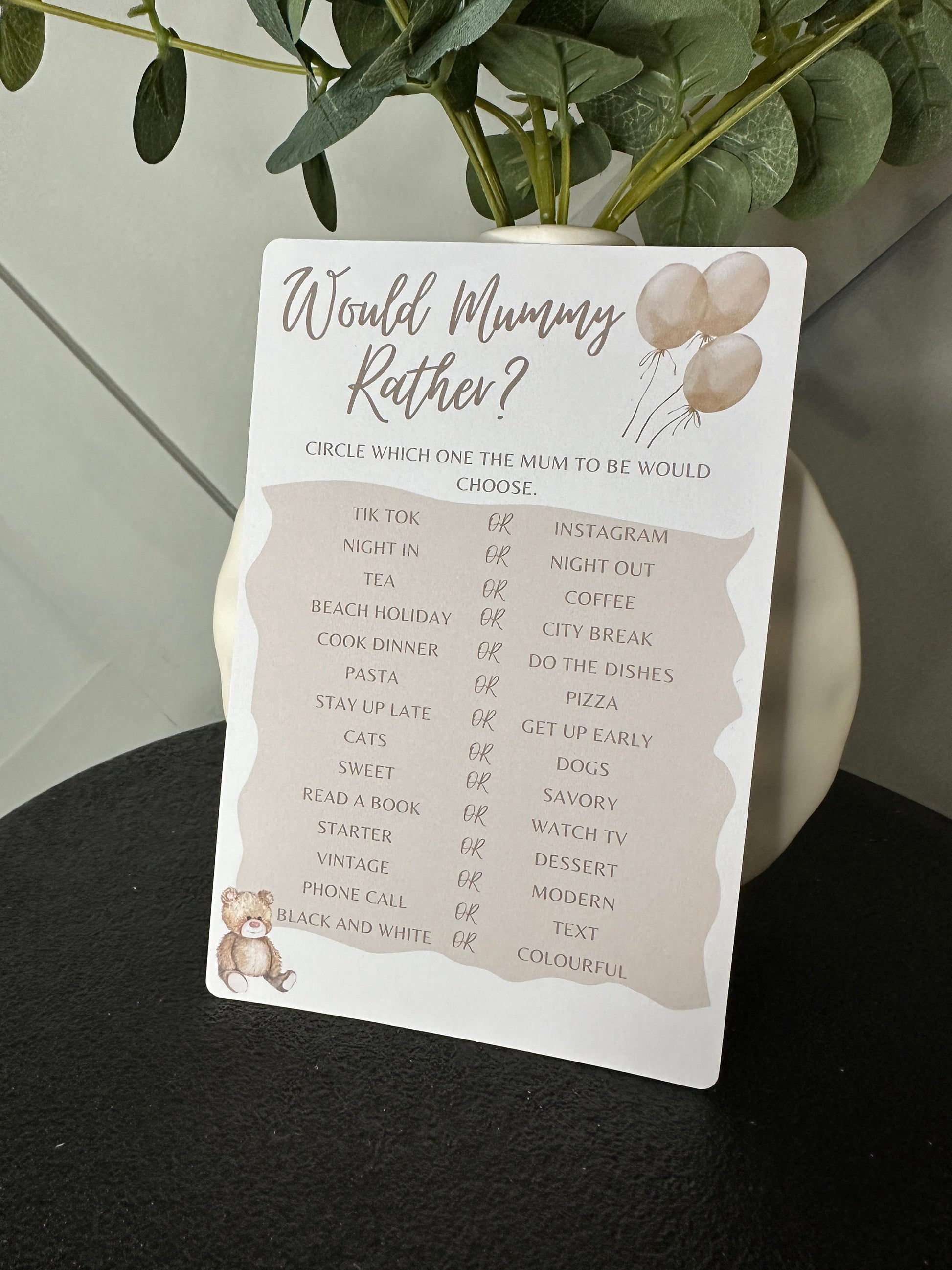 Test your guests knowledge of the mum to be with this fun this or that quiz!