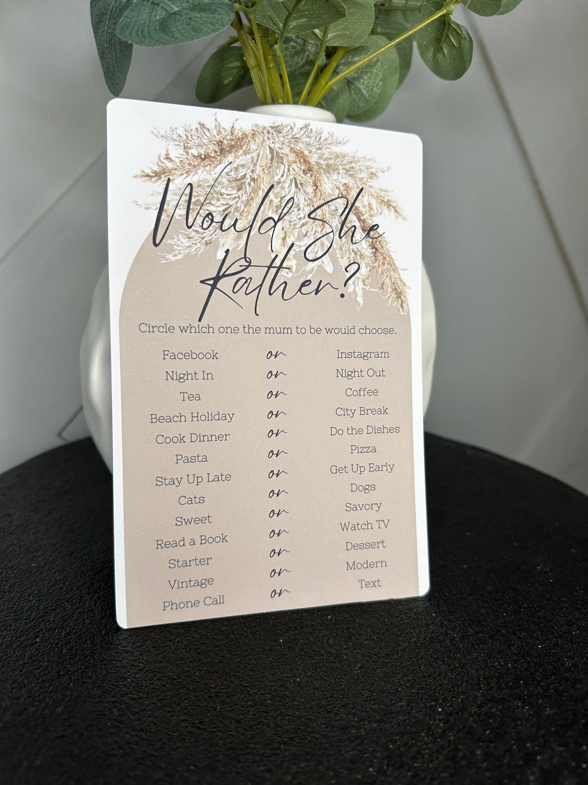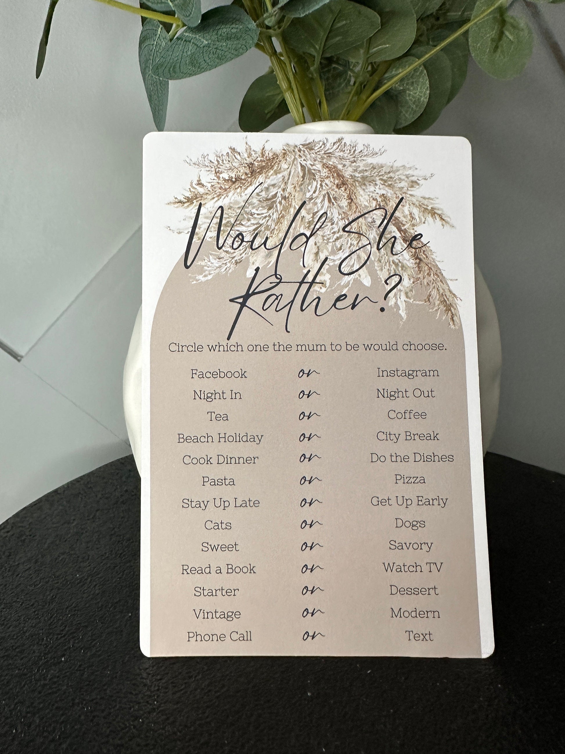 Guests need to circle which one out of the two options they think the mum to be prefers.